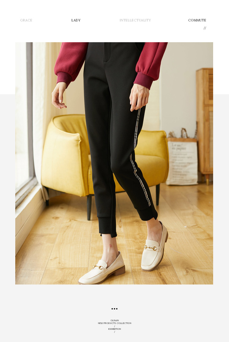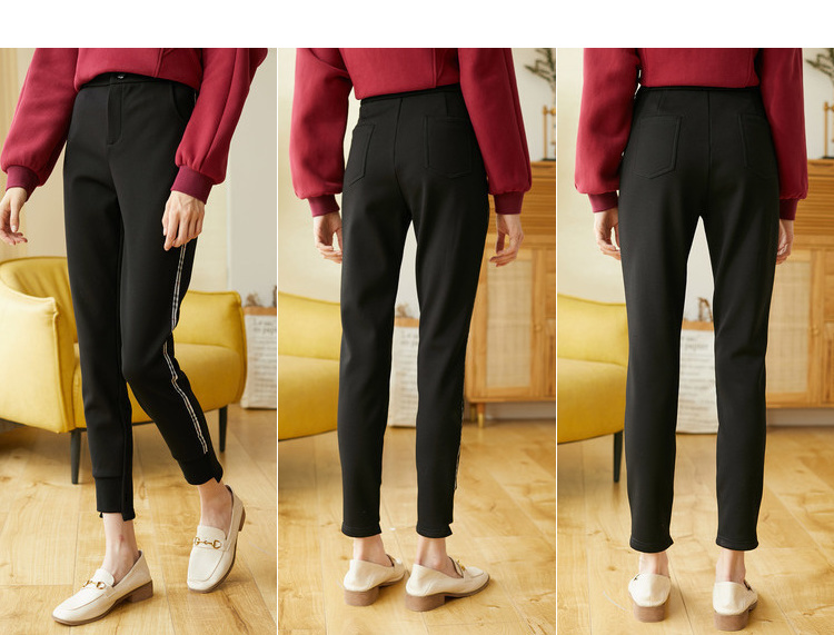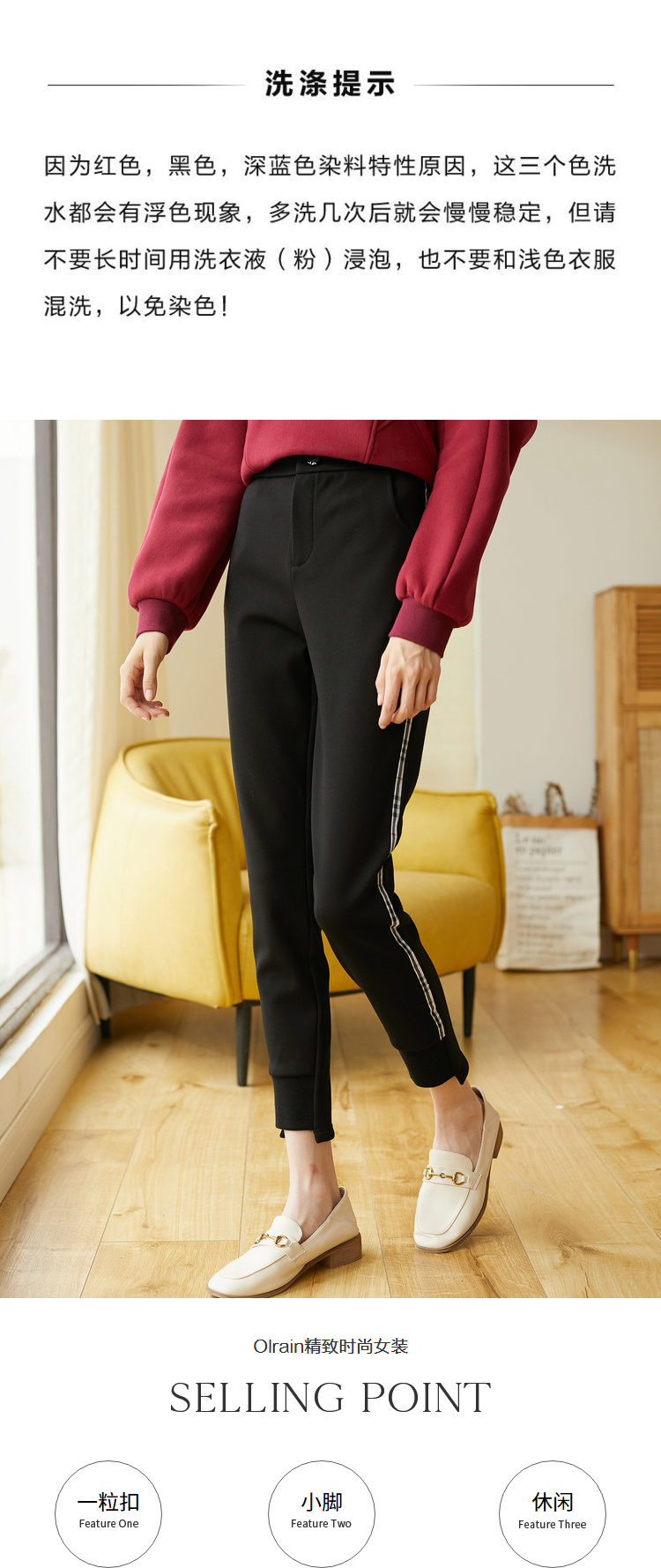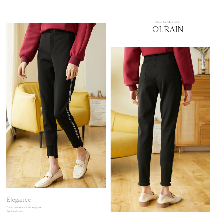 欧芮儿2020春装新品高腰显瘦黑色加绒休闲裤百搭哈伦不规则束脚裤
