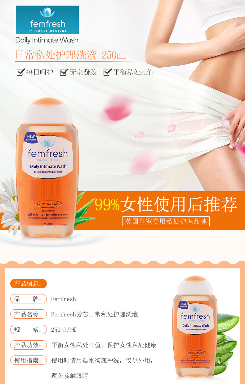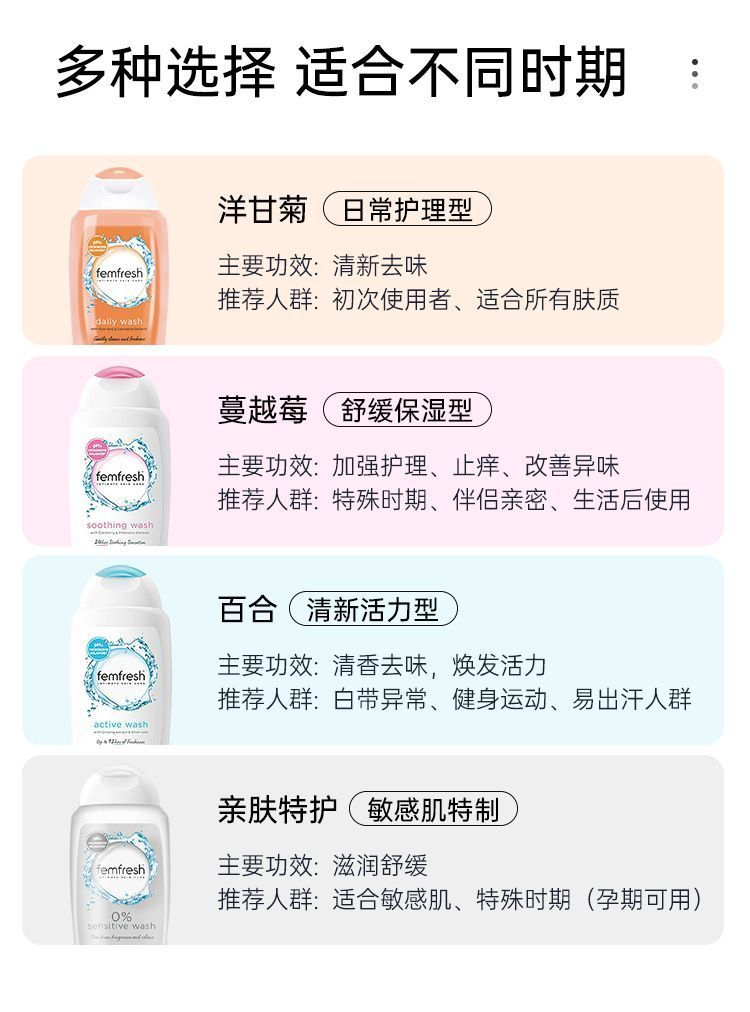 FEMFRESH芳芯私处洗液 四款全系列 洋甘菊/蔓越莓/百合/0度亲肤 250ml