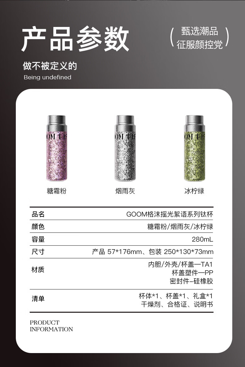 纯钛迷你保温杯女高颜值小巧便携水杯GOOM格沫摇光絮语系列钛杯
