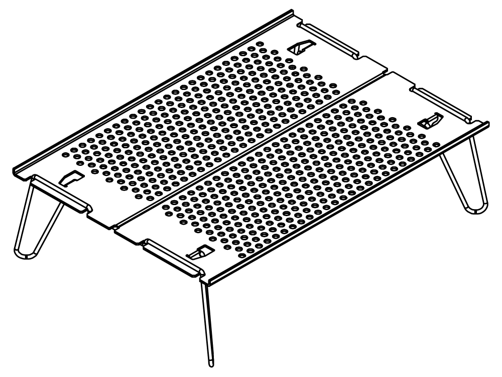 2.将两片桌板并排放置,桌板朝下,并将底脚预先插入桌板旁的凹槽内
