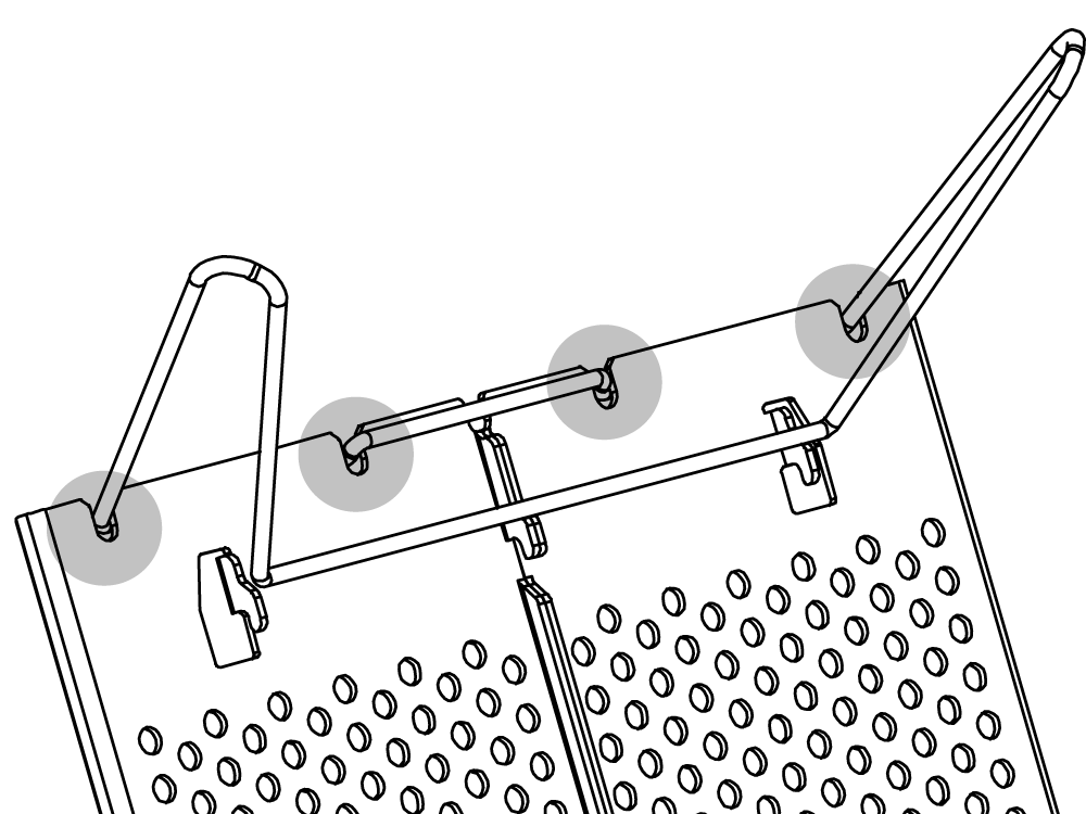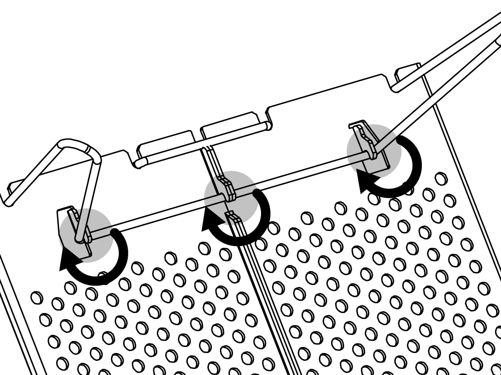 3.并将底脚勾入桌板背面的三个勾爪上。