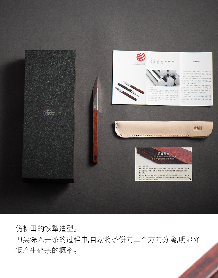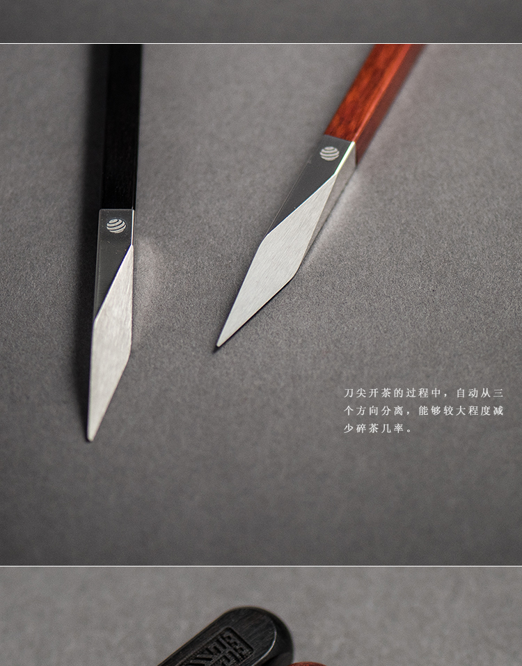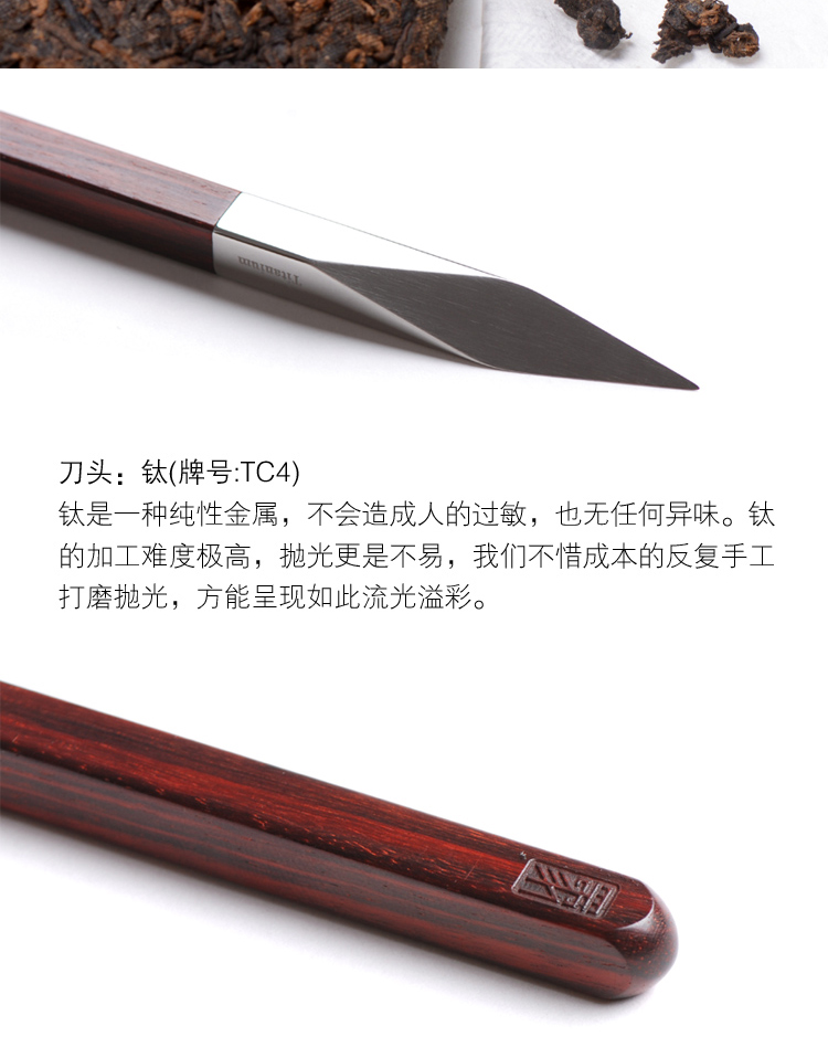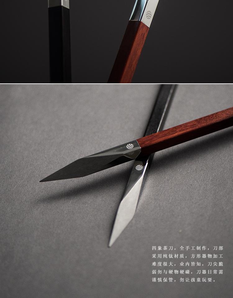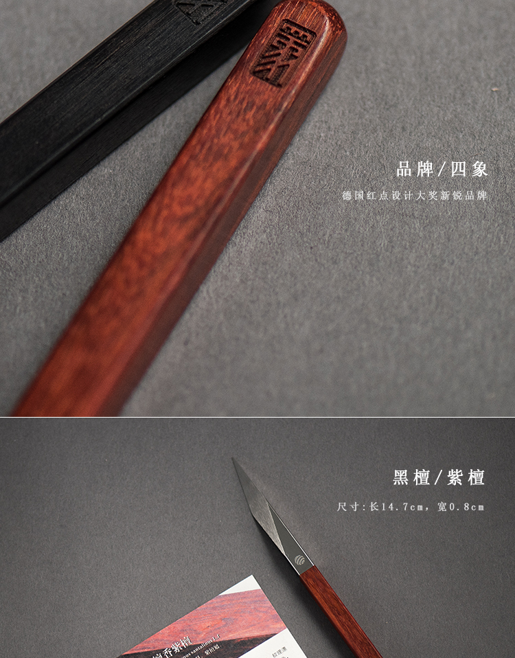 四象普洱茶刀紫檀 钛刀头 德国红点设计奖黑檀紫檀木柄手工高档茶刀