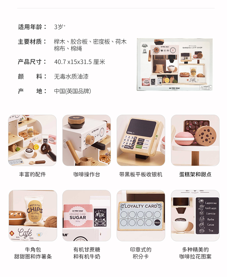 *LE TOY VAN 角色扮演木制玩具-桌面咖啡馆 TV3004