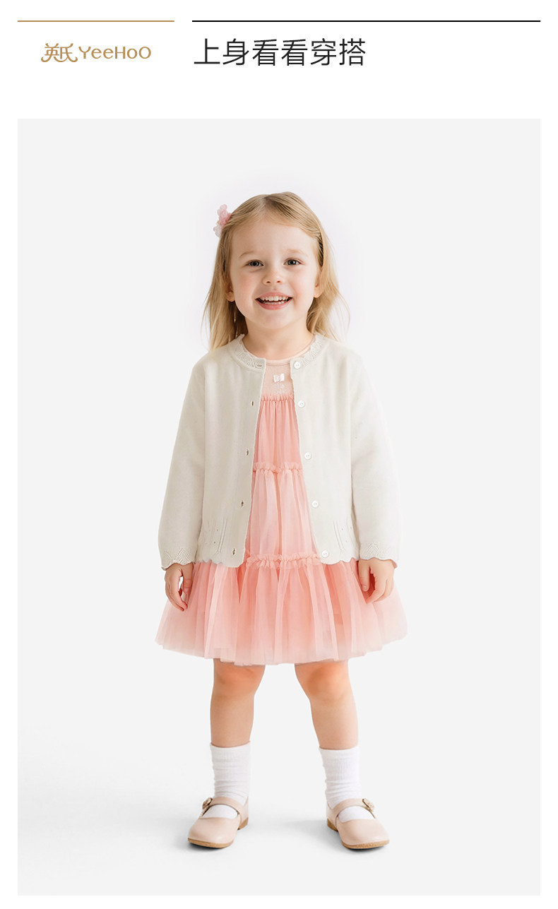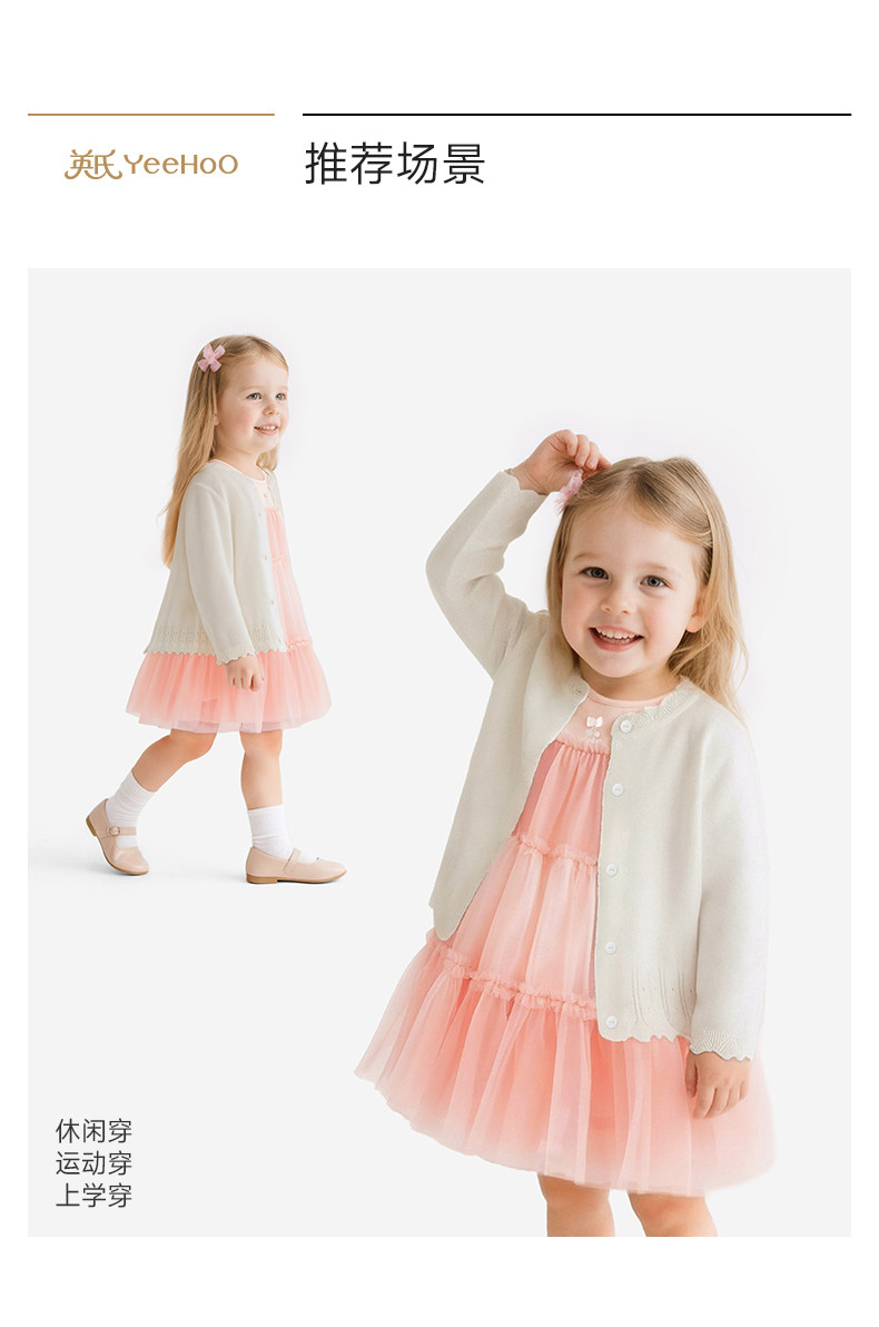 英氏儿童薄外套女童夏季新款休闲百搭空调房针织开衫YRWWJ2S036A
