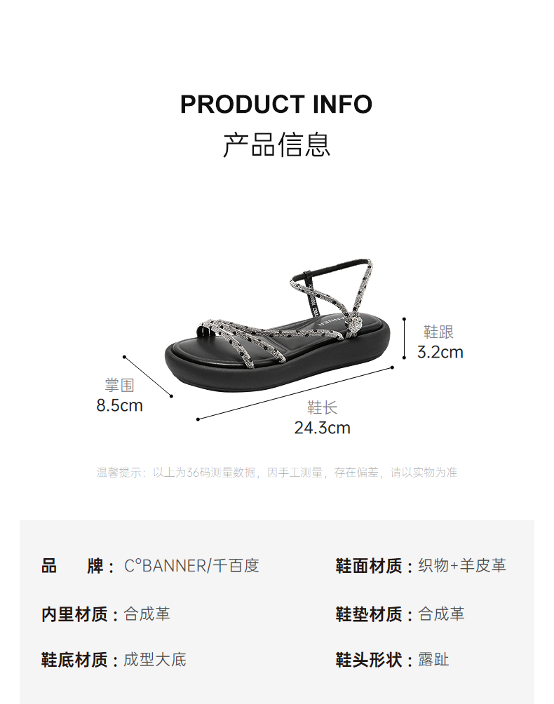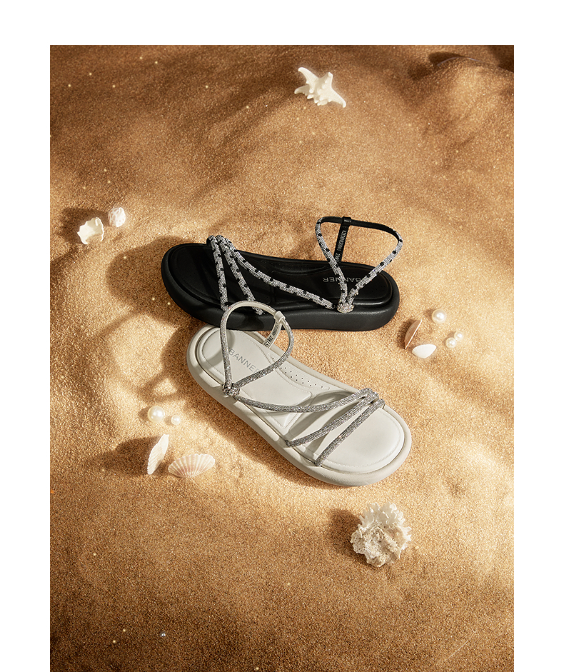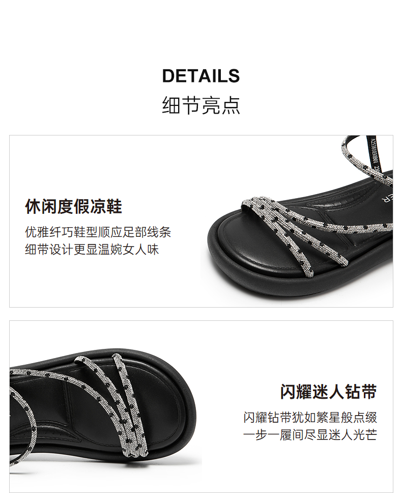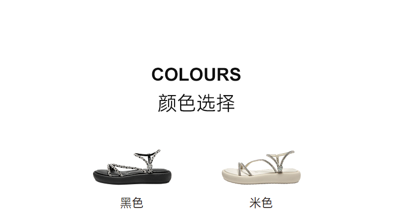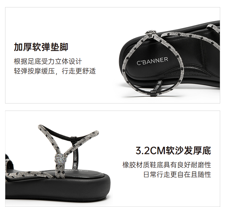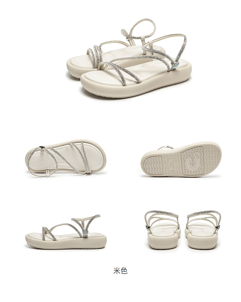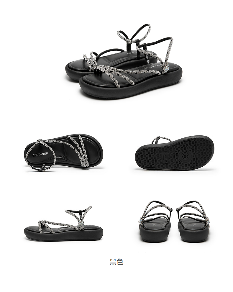 千百度条带面包休闲凉鞋女踩屎感平底外穿配裙子凉鞋A25381030