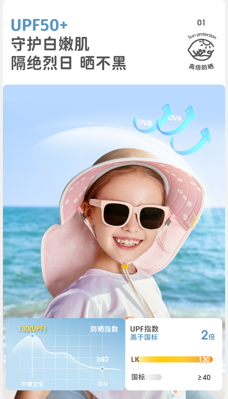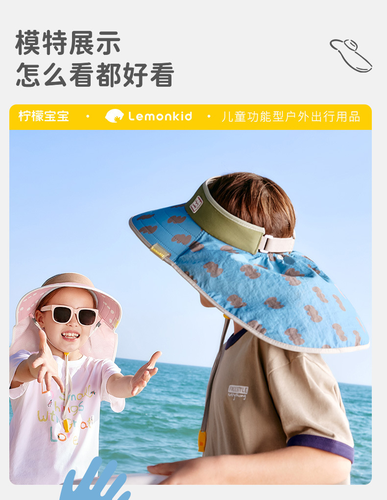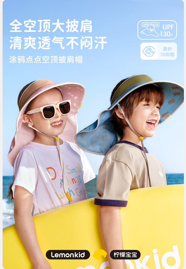 柠檬宝宝儿童防晒帽男女童全空顶大披肩夏季遮阳太阳帽26新款帽子聚★为爱严选