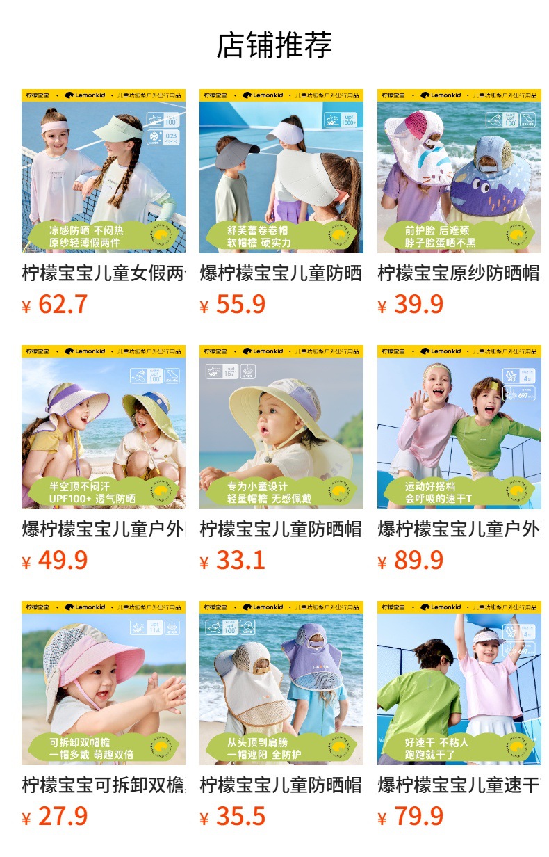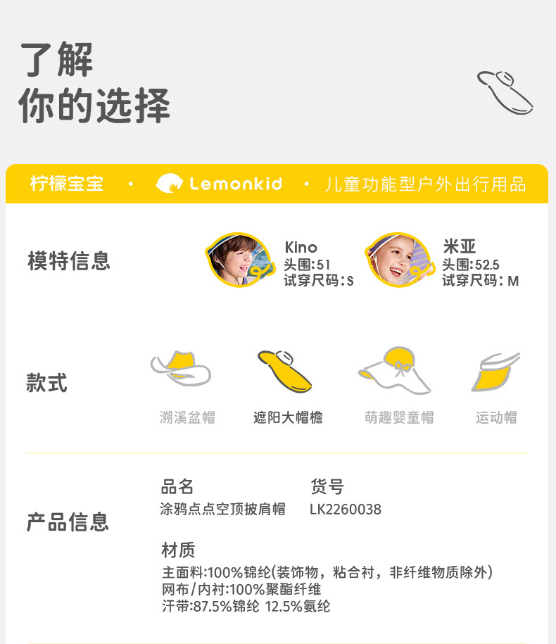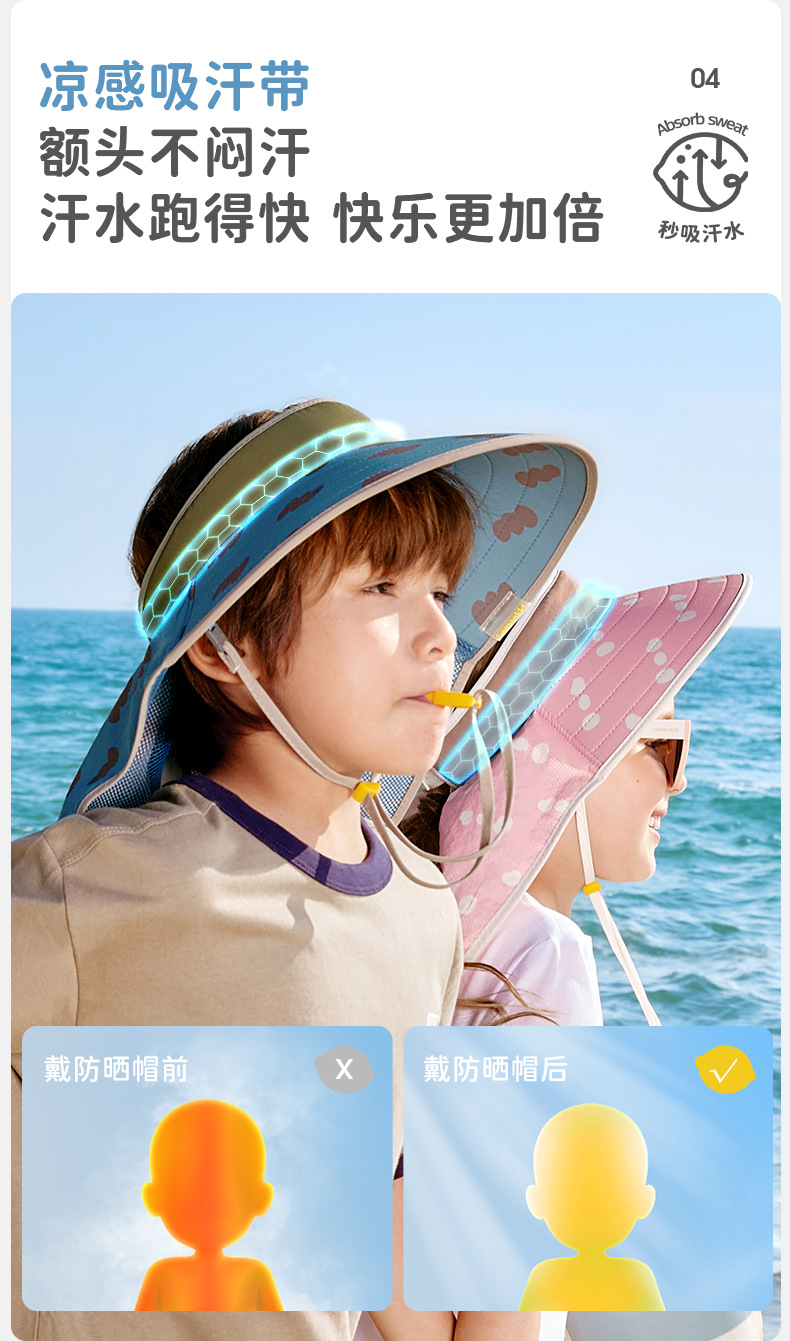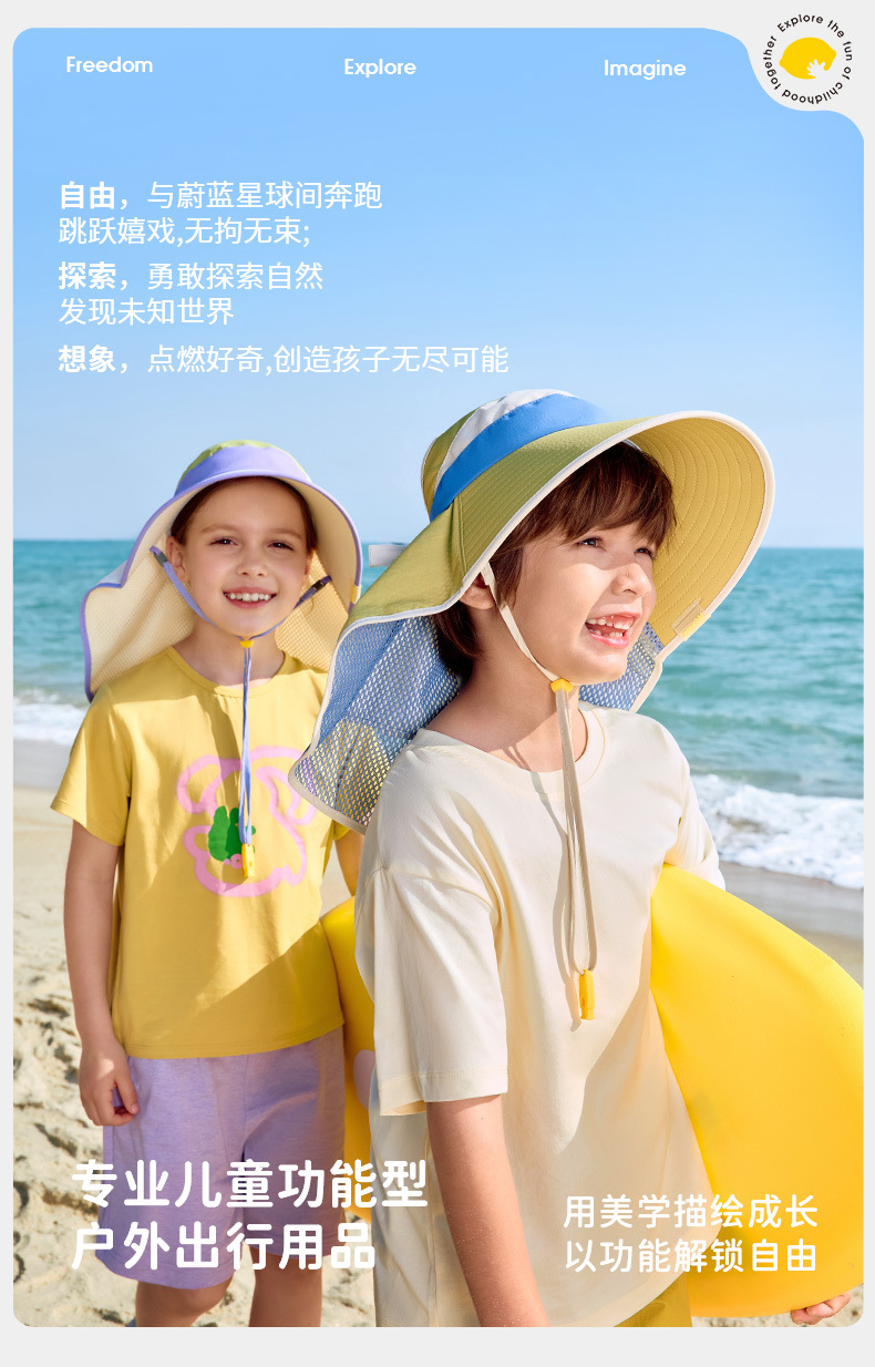 柠檬宝宝儿童防晒帽男女童全空顶大披肩夏季遮阳太阳帽26新款帽子聚★为爱严选