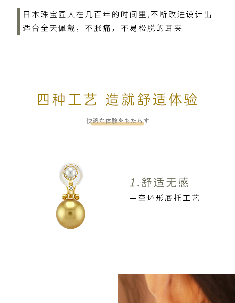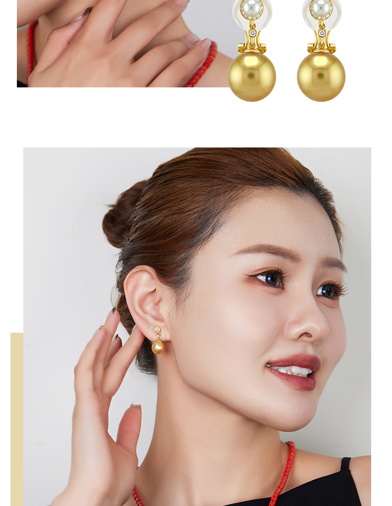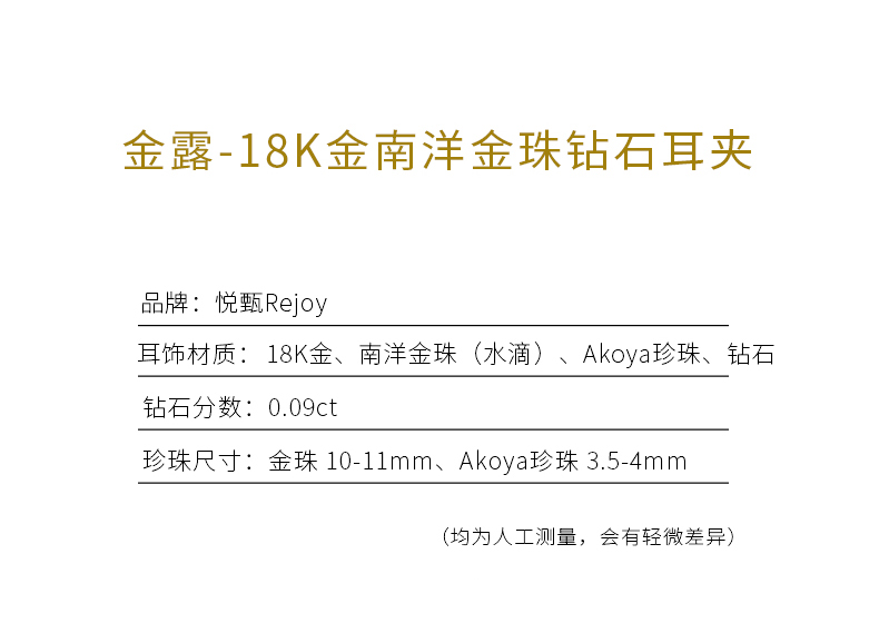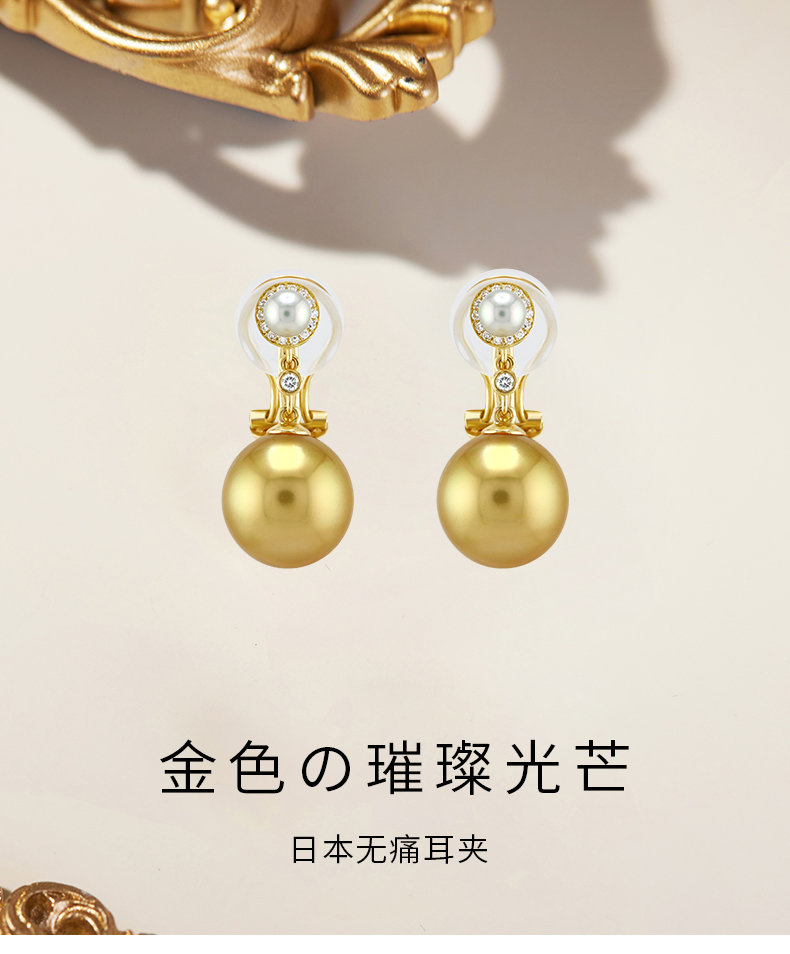【天猫同款】悦甄 18K金南洋金珠钻石耳夹 金露