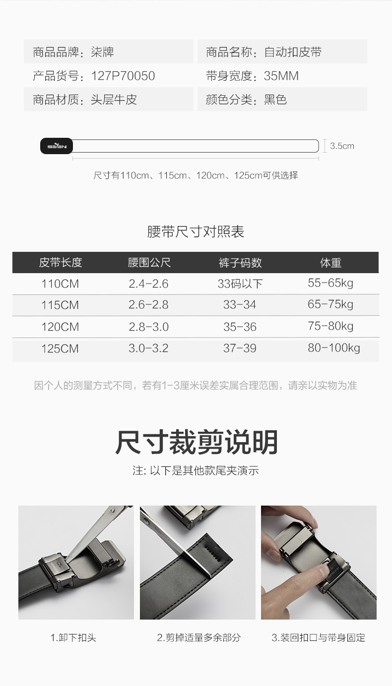 【婚礼季】柒牌男士皮带真皮腰带2025秋季新品商务休闲自动扣男款牛皮革裤带127P70050
