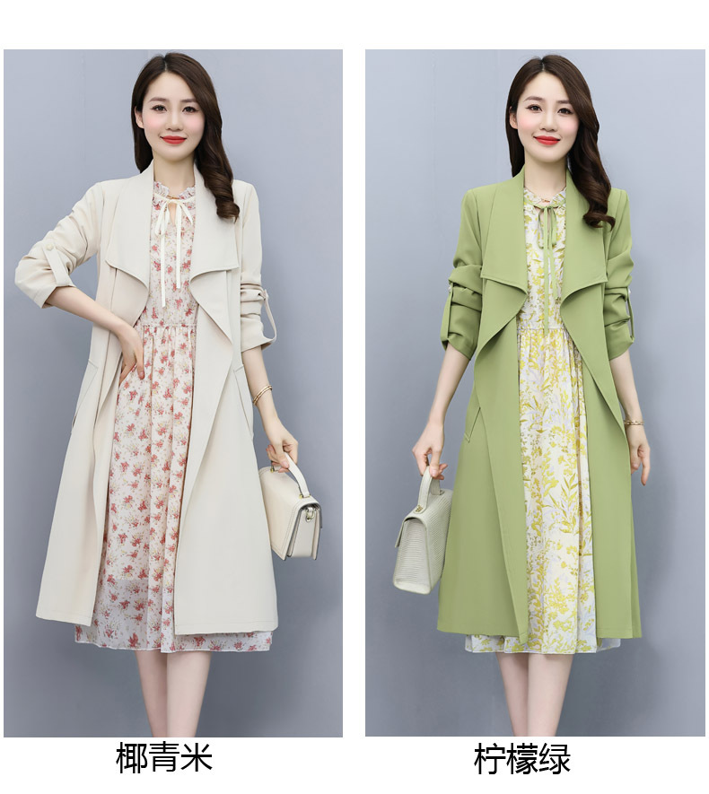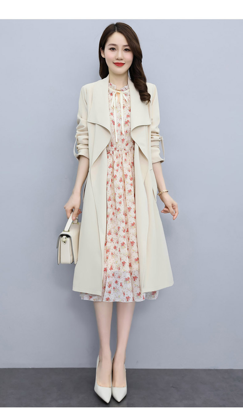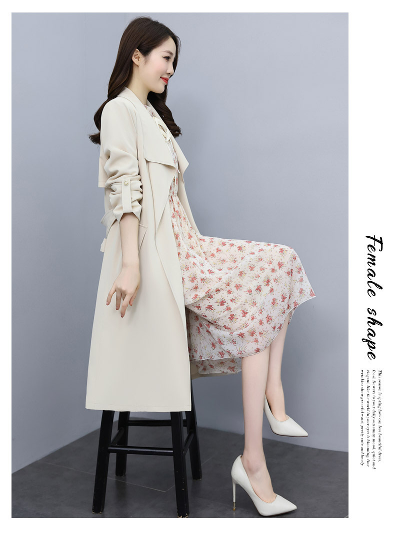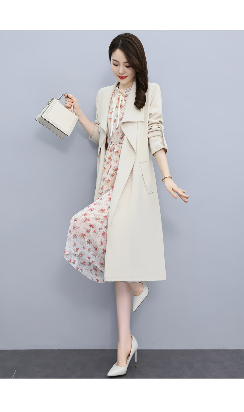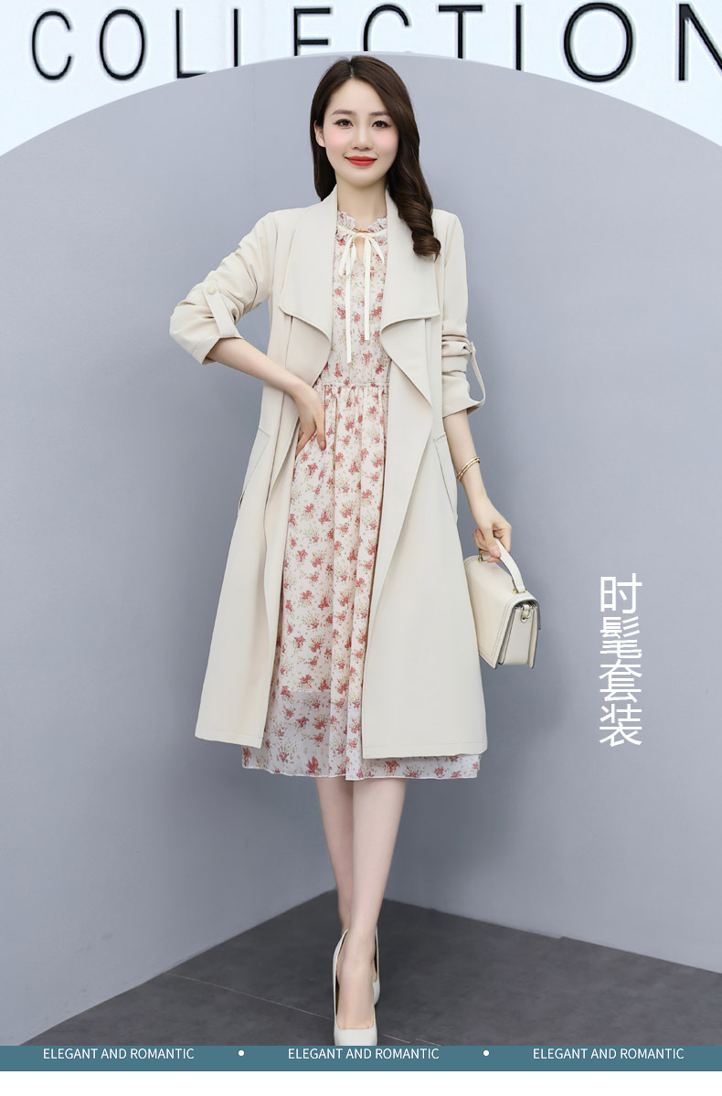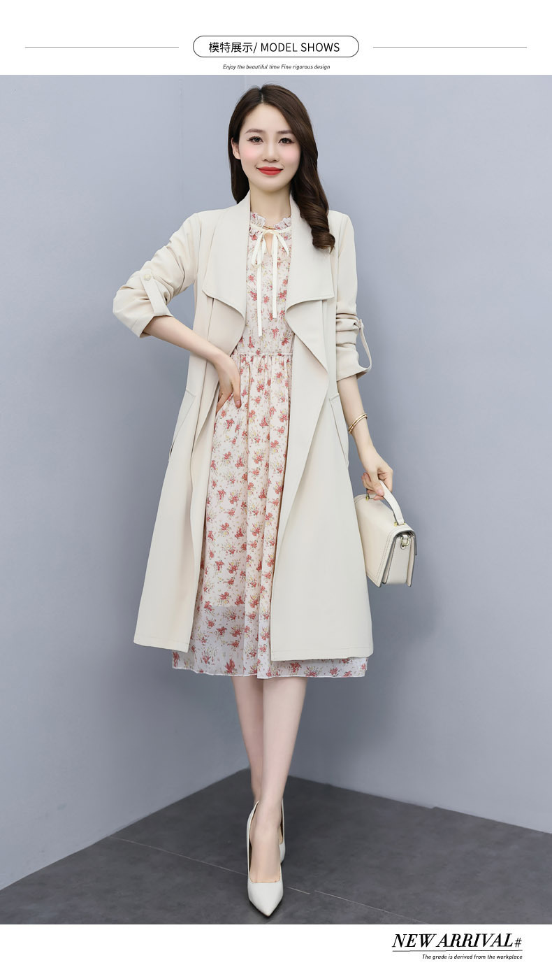 韩版修身系带女式风衣 配连衣裙HR-XPH1395