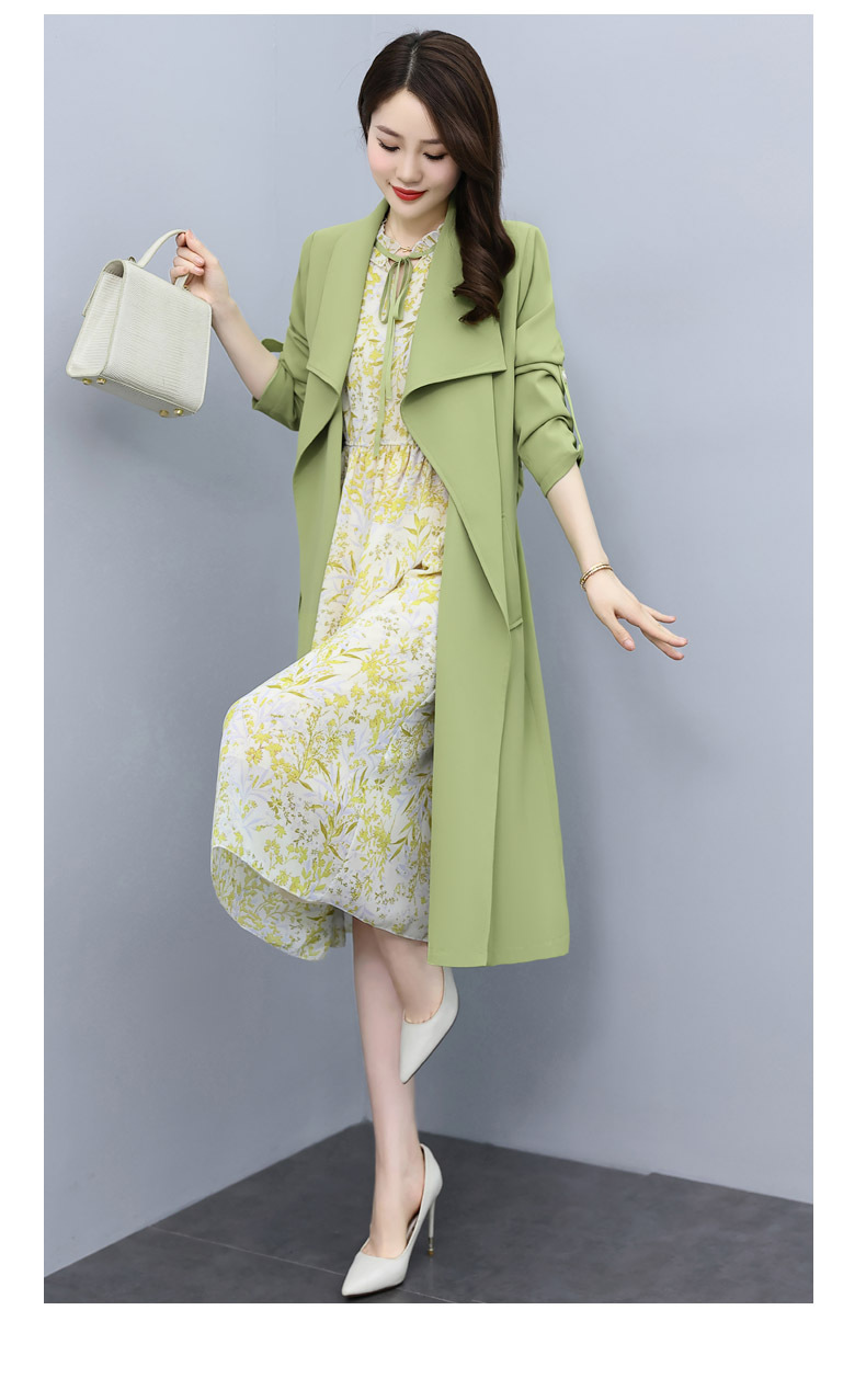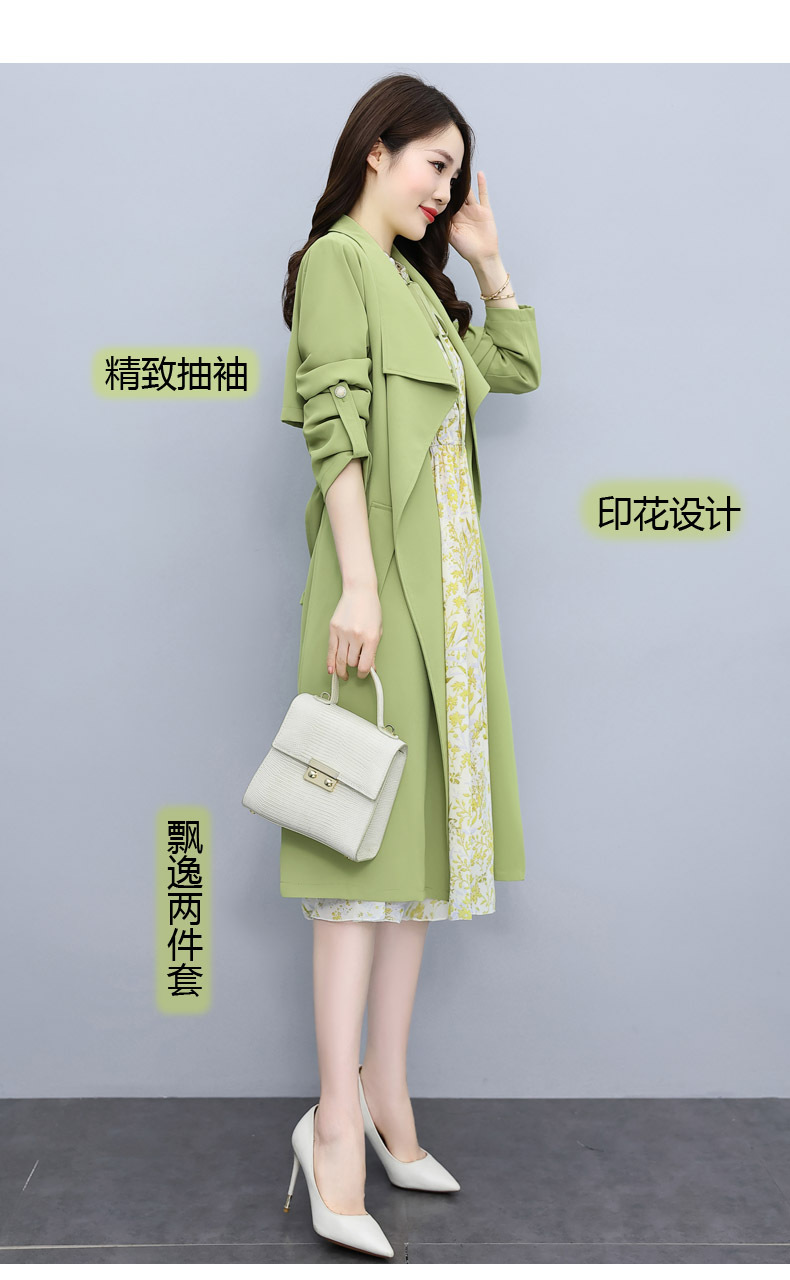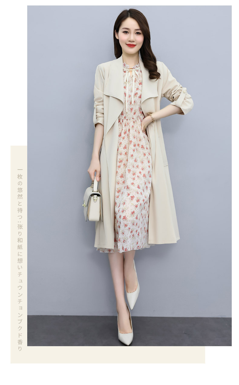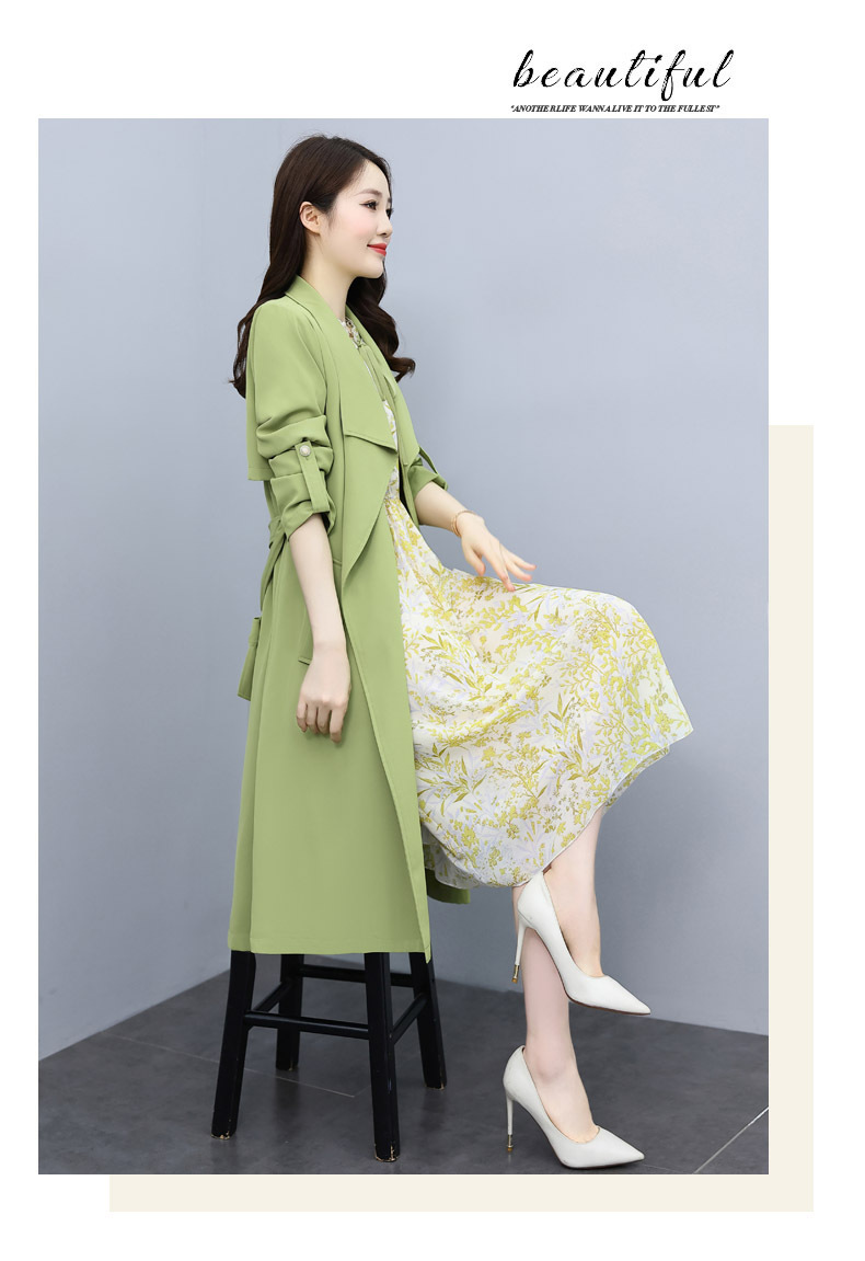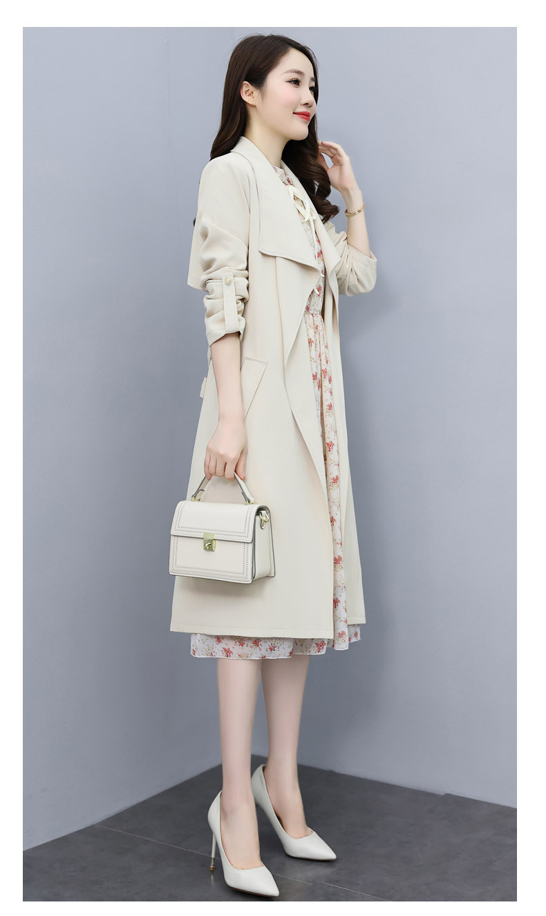 韩版修身系带女式风衣 配连衣裙HR-XPH1395