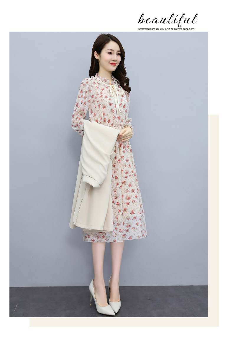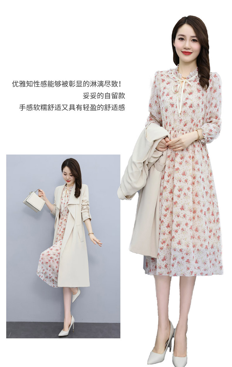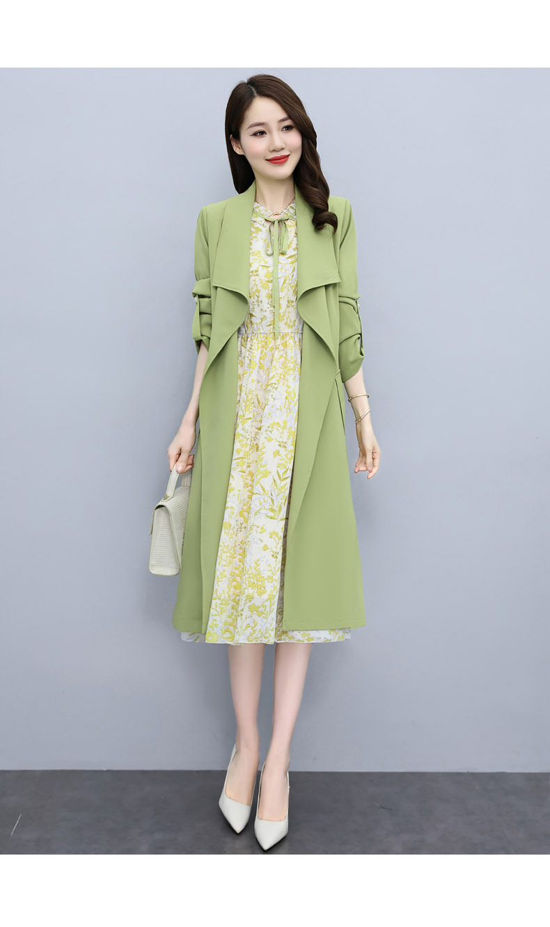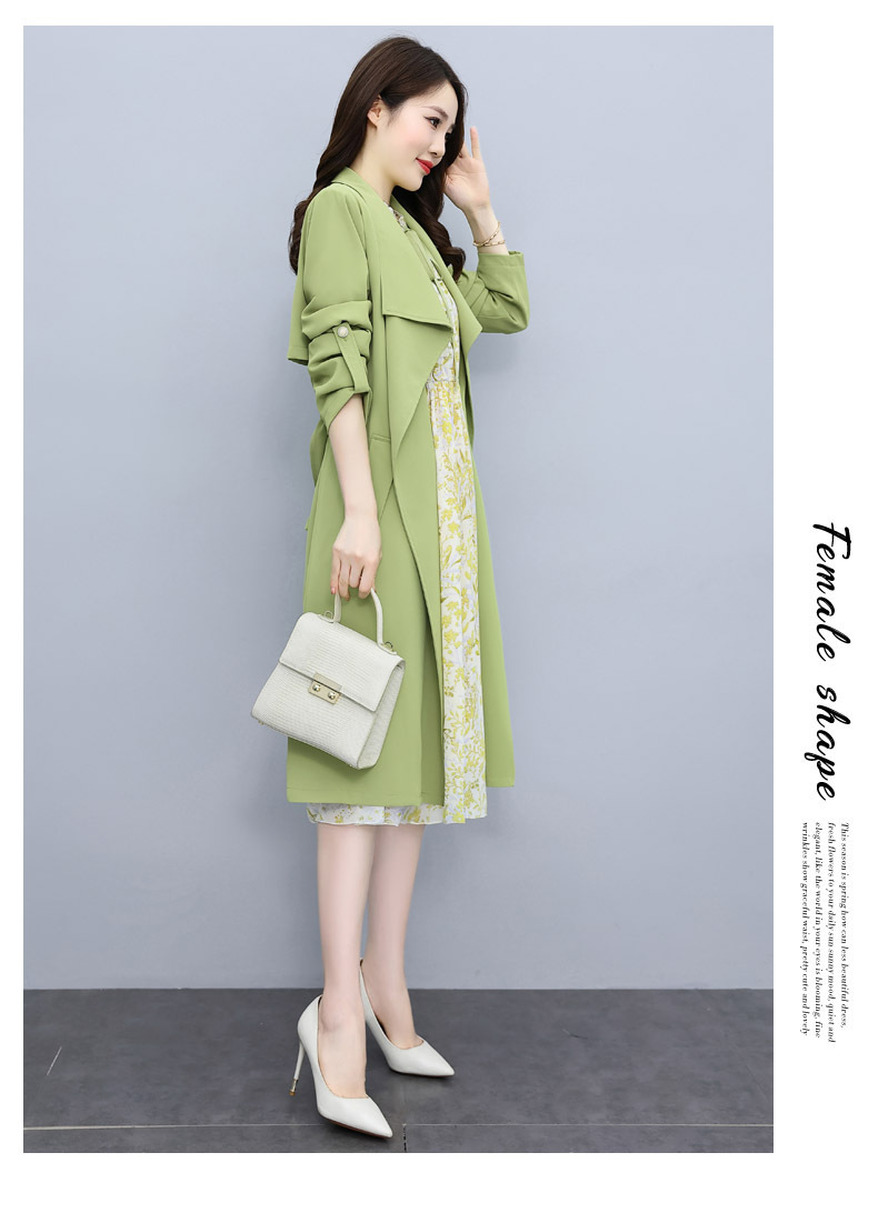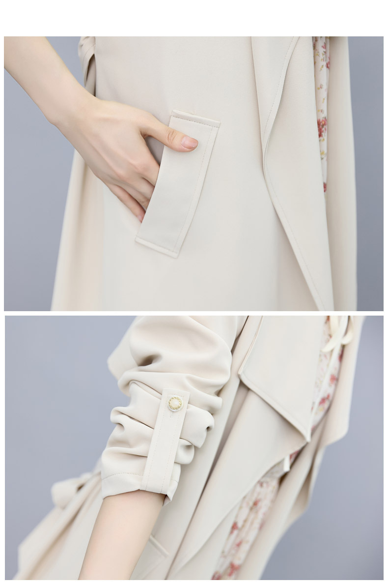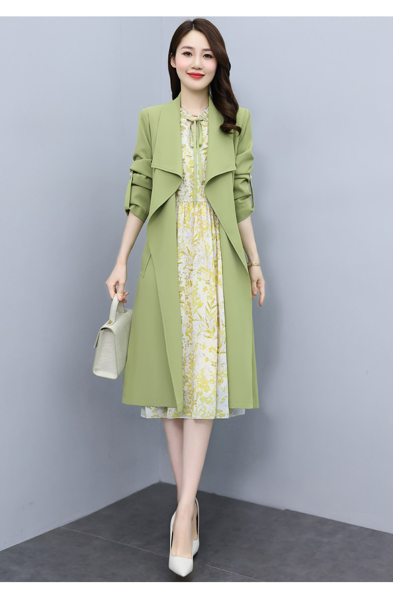 韩版修身系带女式风衣 配连衣裙HR-XPH1395