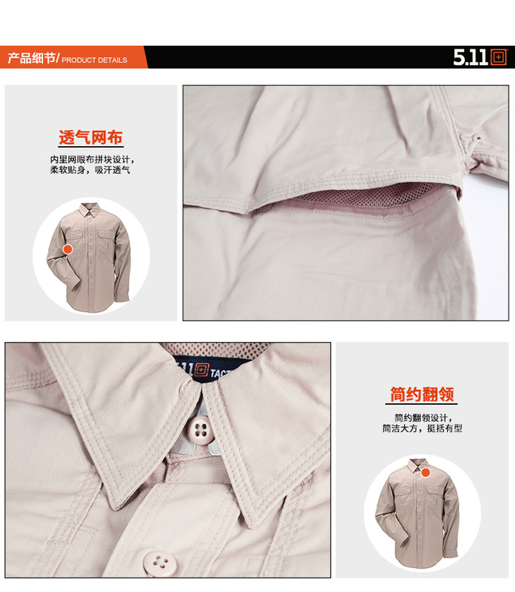 5.11军迷战术衬衫 511长袖衬衣耐磨透气战术衬衫休闲衬衫 72175