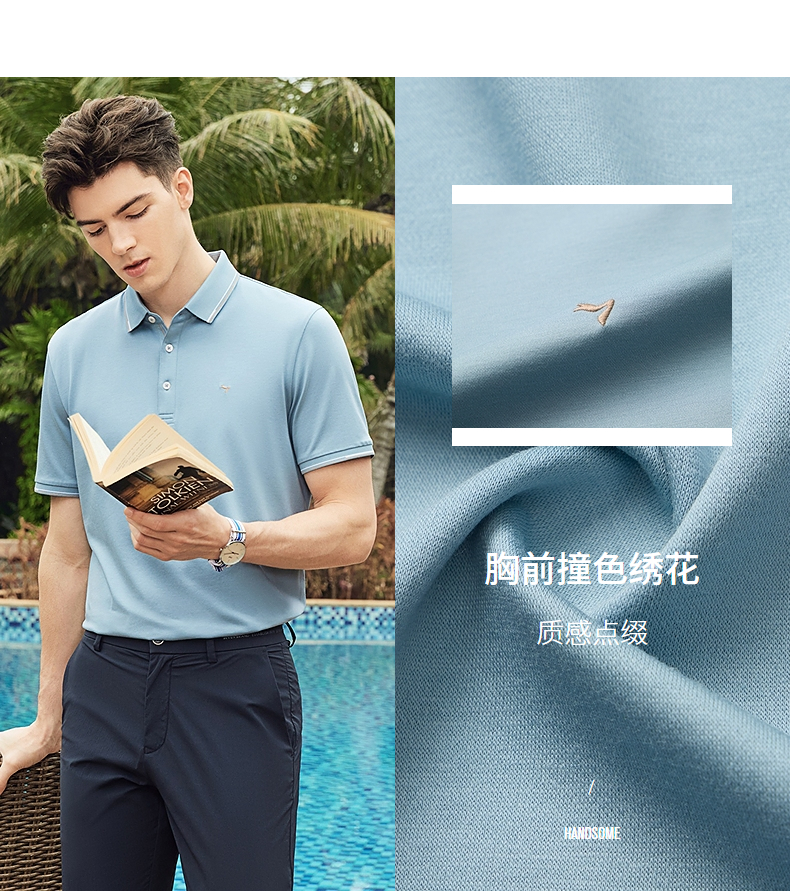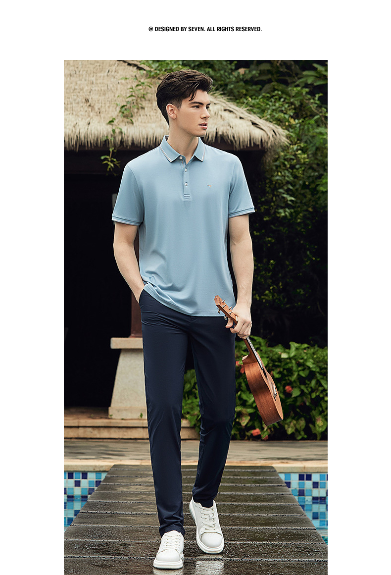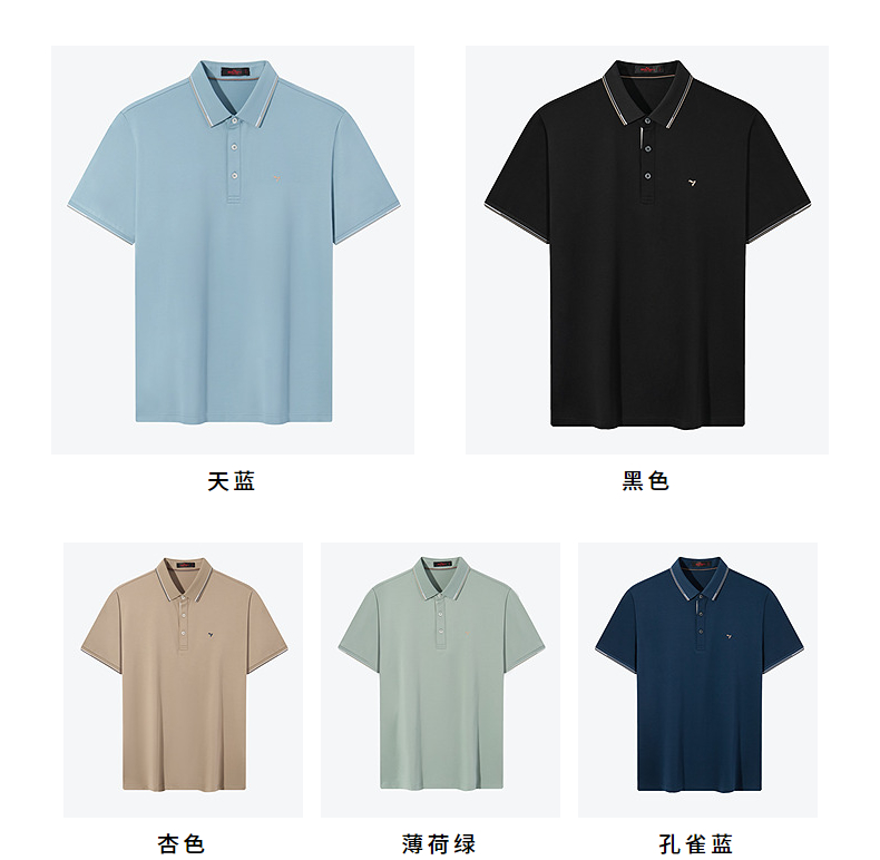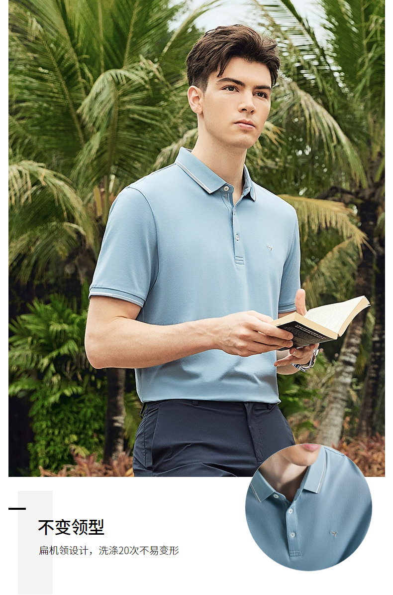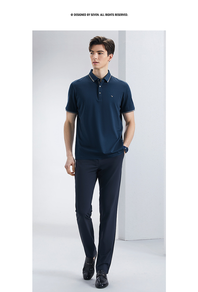 【不变形领】【5A抗菌2A防螨】柒牌polo衫短袖男2024夏季新款含桑蚕丝翻领上衣 126T73240