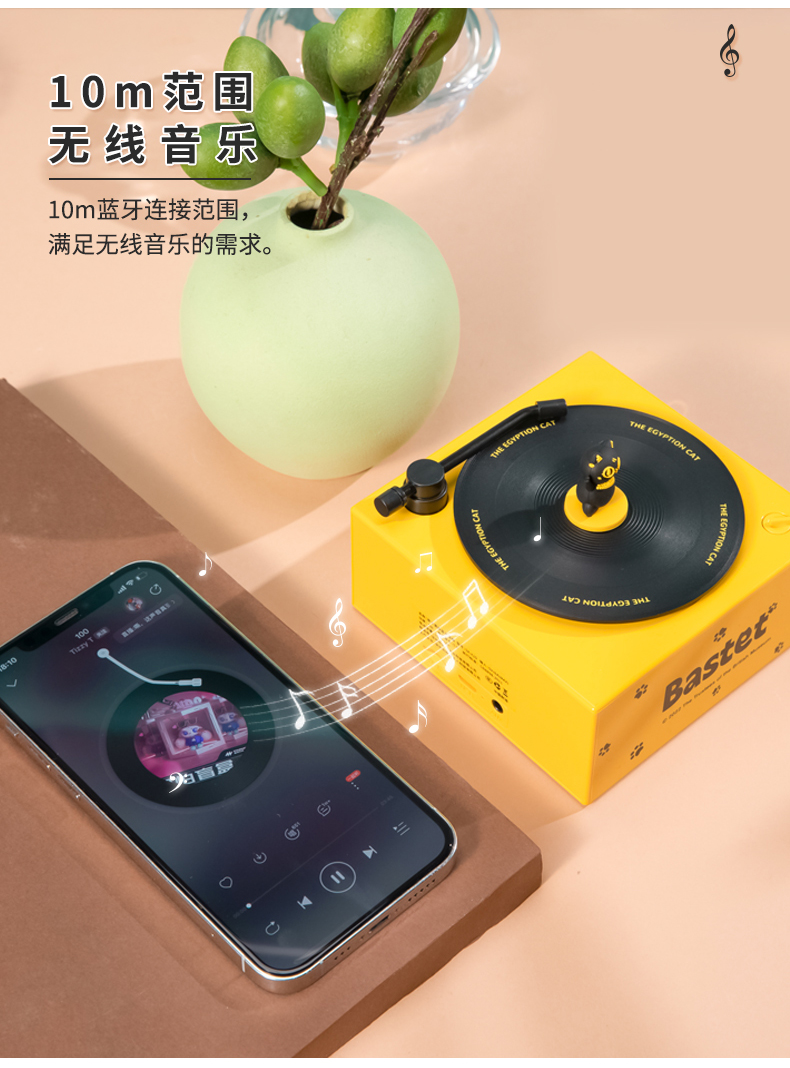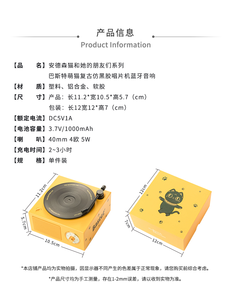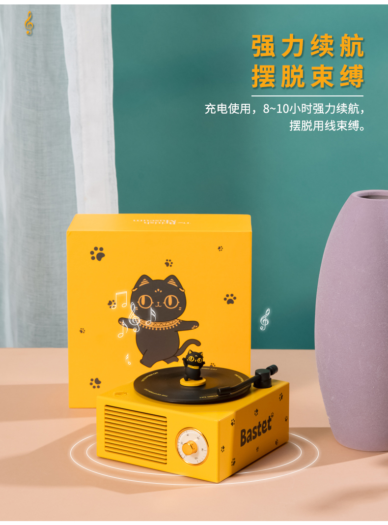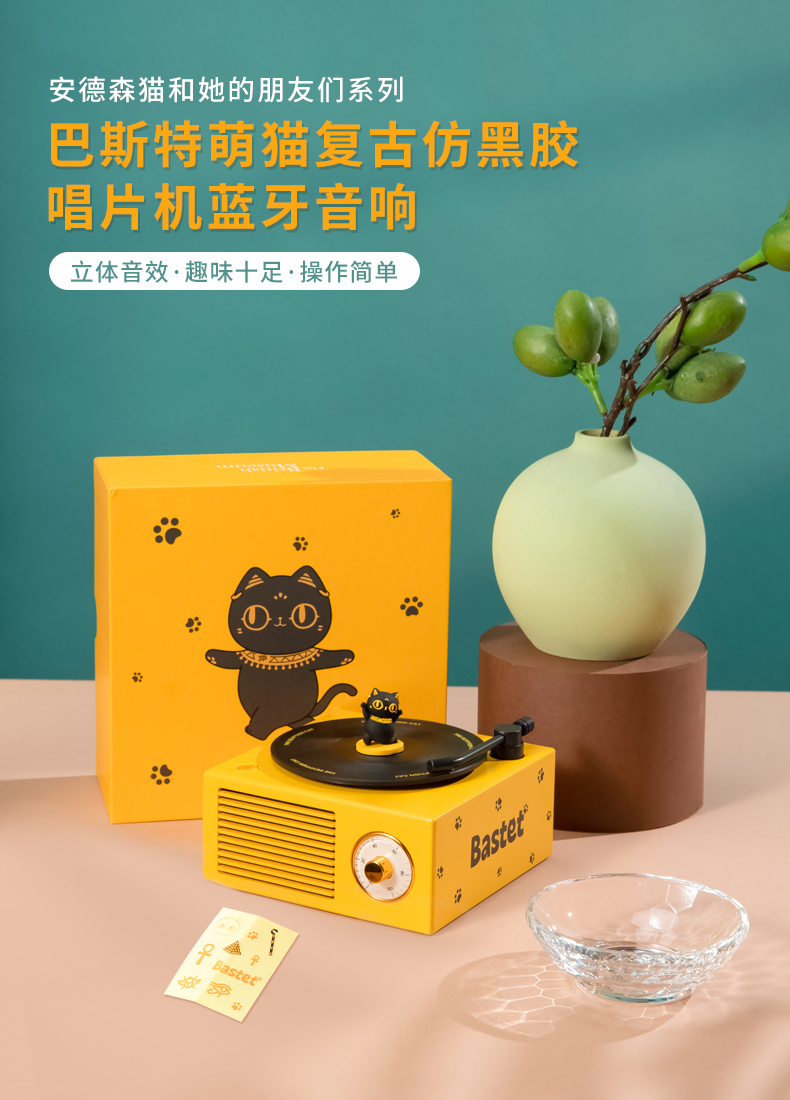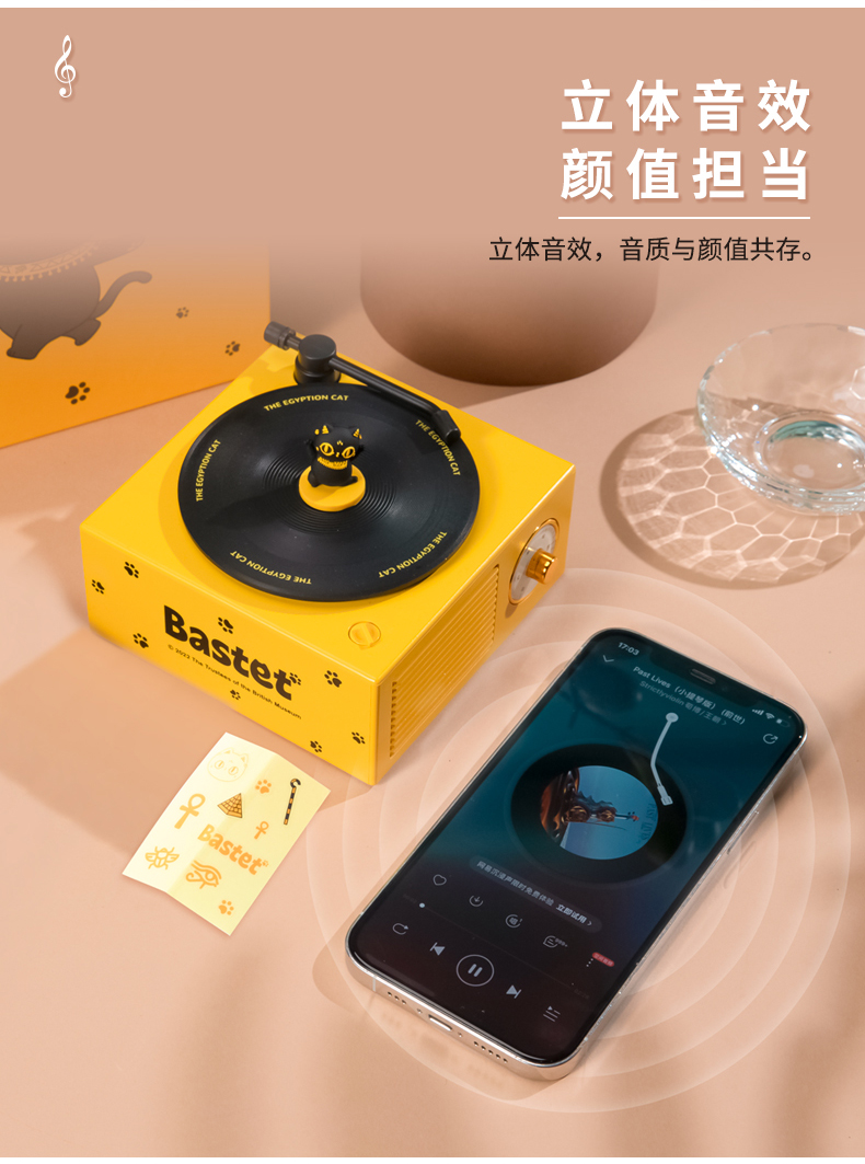 大英博物馆盖亚·安德森猫和她的朋友们系列巴斯特萌猫复古仿黑胶唱片机充电蓝牙音响