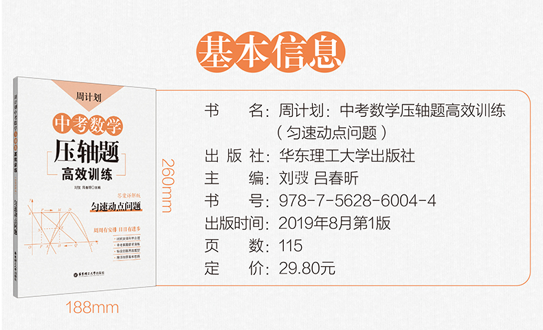 周计划中考数学压轴题高效训练 匀速动点问题 附详解答案和解题思路 初中初三中考数学初中数学知识大全 华东理工大学出版社