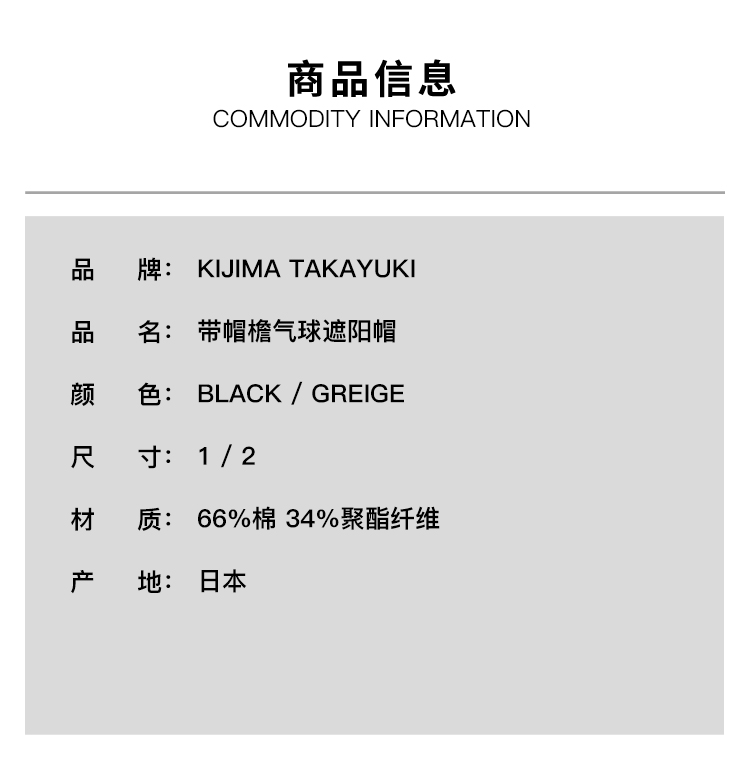 KIJIMA TAKAYUKI VISOR BALLOON HAT 男女中性款带帽檐气球遮阳帽