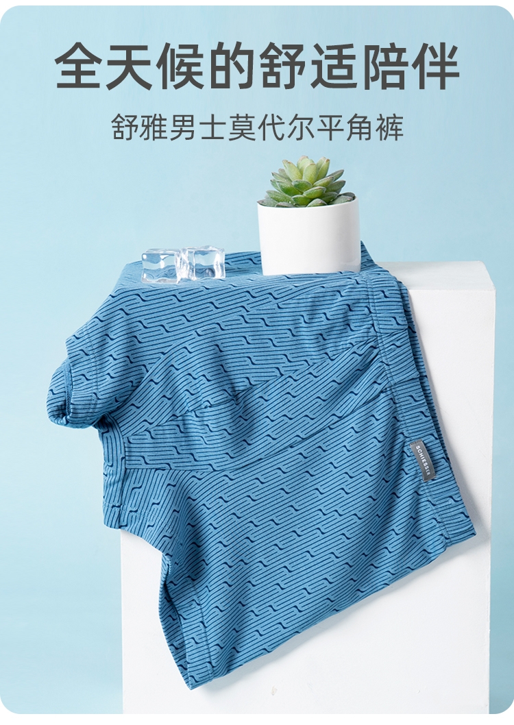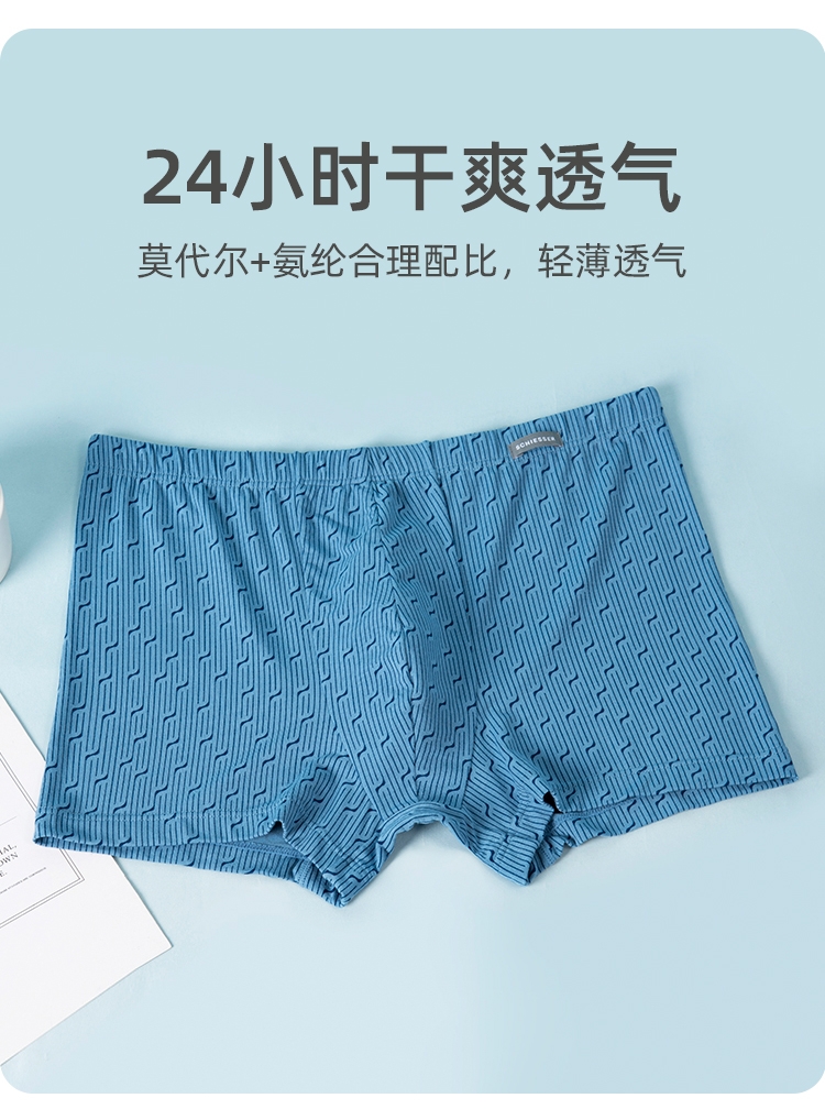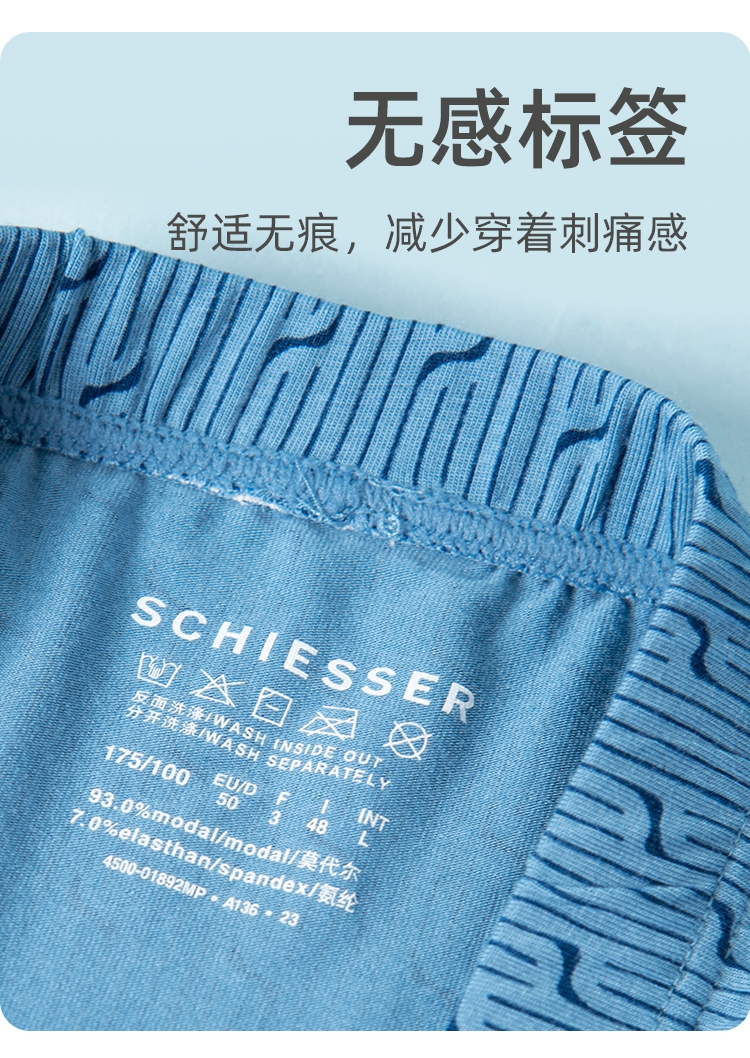 【印花莫代尔】SCHIESSER德国舒雅男士内裤春夏新款莫代尔中腰平角裤印花舒适四角底裤39/21103T