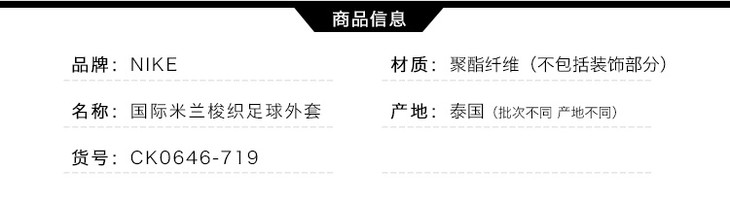 NIKE/耐克 国际米兰倍耐力联名梭织夹克防风衣CK0646719