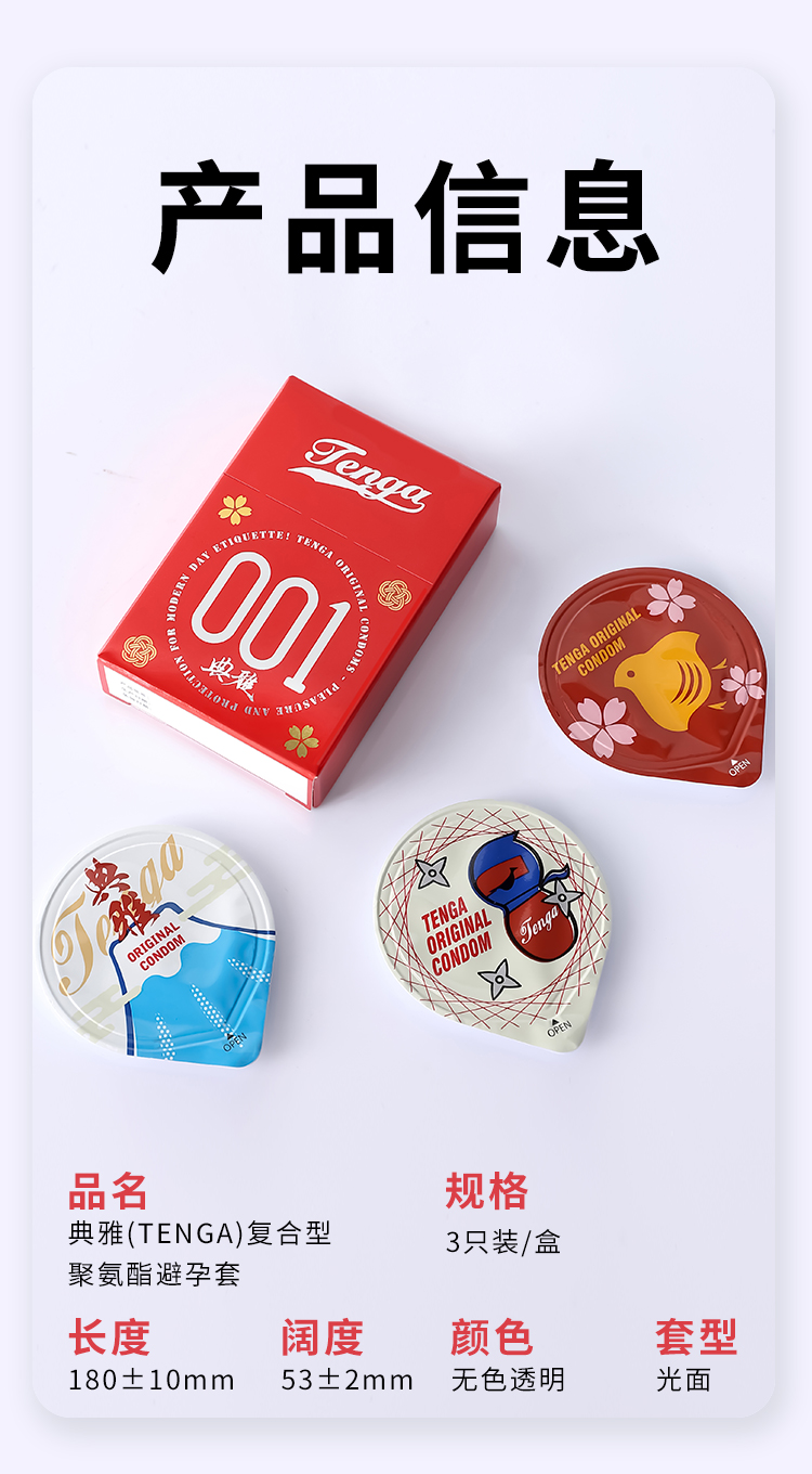 典雅(TENGA)复合型聚氨酯避孕套001光面光面53mm(3只装)超薄001