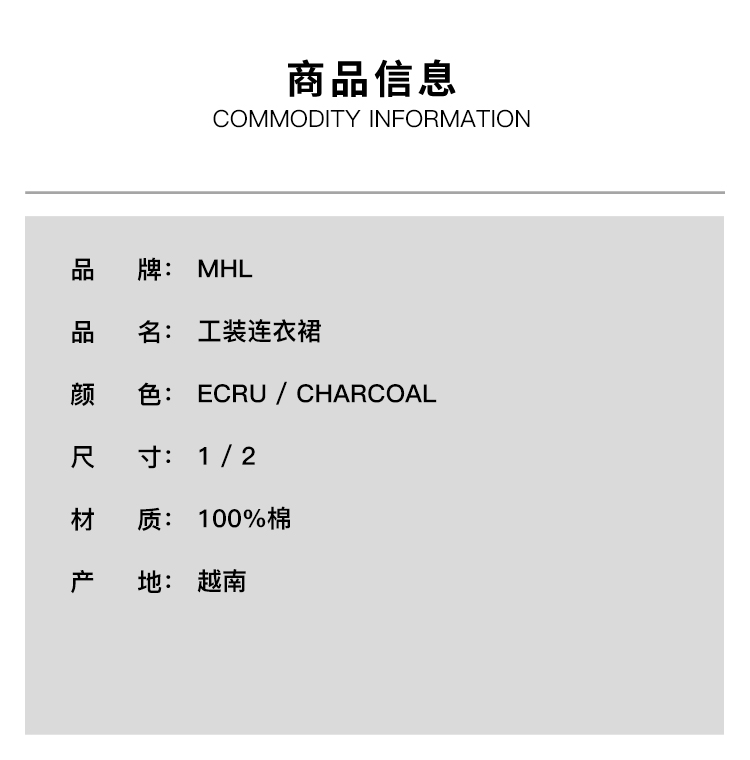 MHL One Piece COTTON CORD SHIRTING 女式工装连衣裙