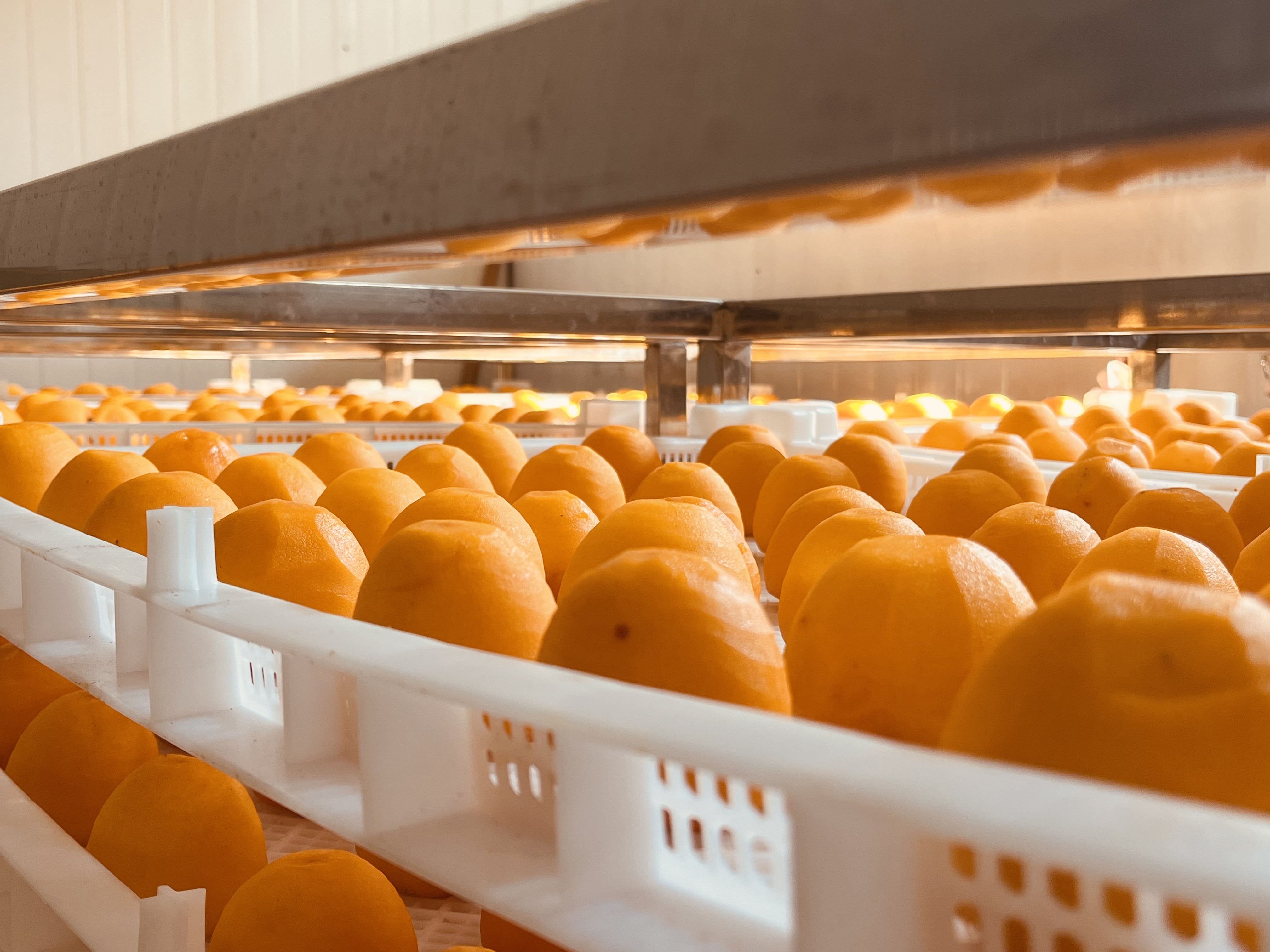 引进韩国进口低压烘干设备,利用独特工艺对二次挑选后的柿子在无菌无尘车间进行脱水加工,脱水过程会加速内部果肉的成熟和软化,脱涩,并使糖分积聚变成糖稀。这种烘干方式节能环保,不受天气影响,可以连续24小时烘干,可以根据烘干需求灵活调节温度与湿度,智能操控。采用多温区分层控温,速度可调、自动控制,烘制的柿子软硬适中,口味香甜、口感软糯。