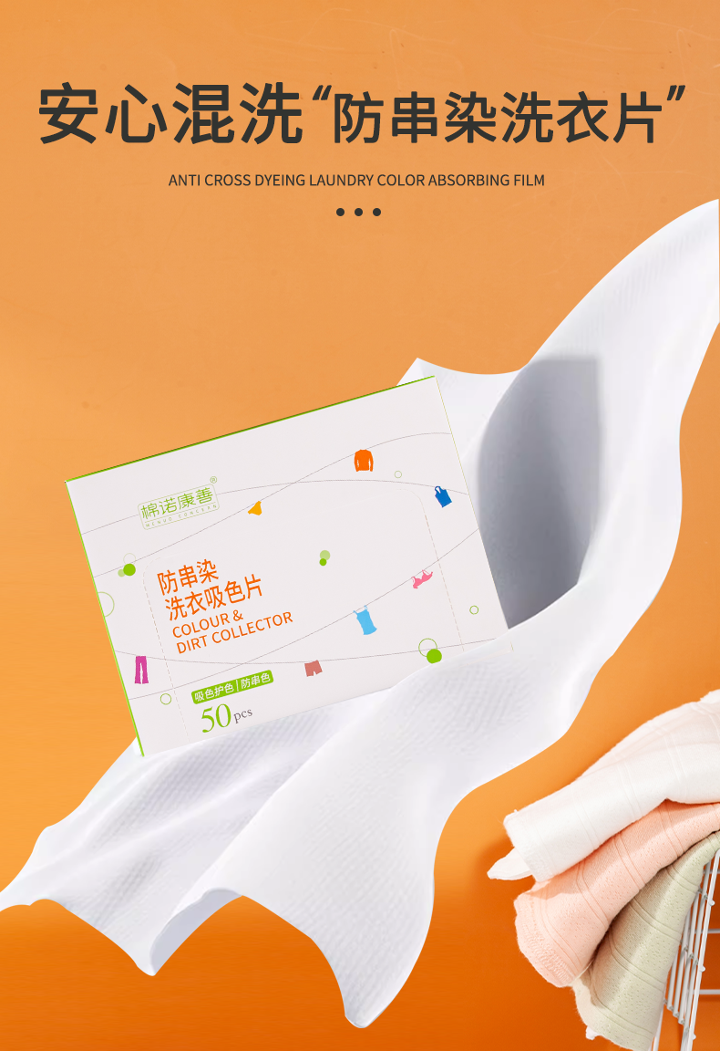 【到手100片】防串色吸色片 衣物机洗防染色片 混洗衣物防染色50片装固色洗衣片