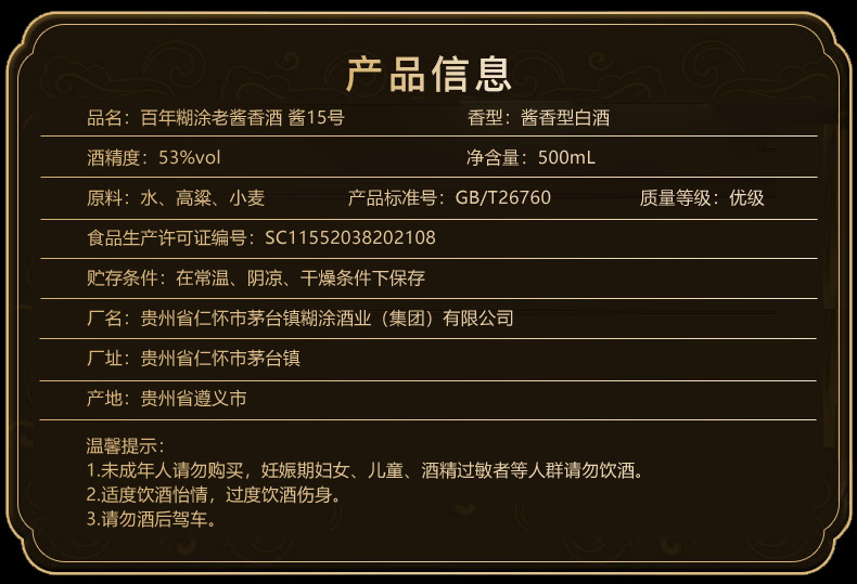 【官方自营正品】百年糊涂老酱香酱15号53度酱香型500ml (咨询有礼)