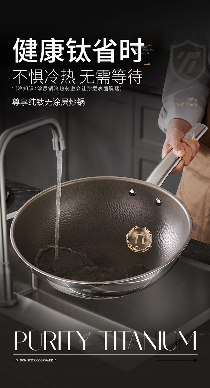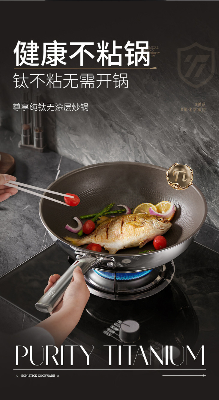 钛本身是属于航空材料 一口锅能用好几年,算下来每天才花几毛钱,比频繁换涂层锅划算多了! 不管是厨房老手还是新手小白,这口纯钛无涂层不粘锅都能闭眼冲!