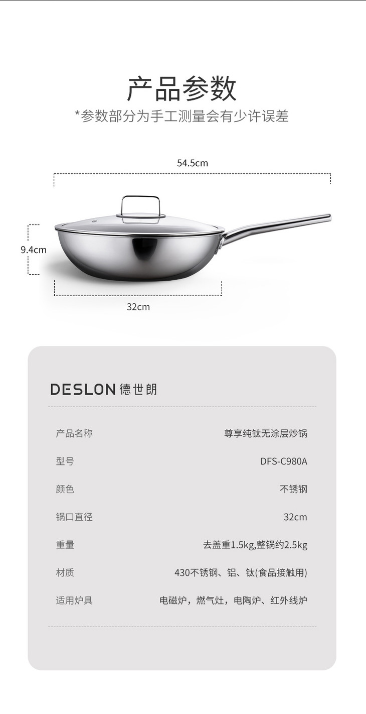 DESLON德世朗DFS-C980A尊享纯钛无涂层炒锅