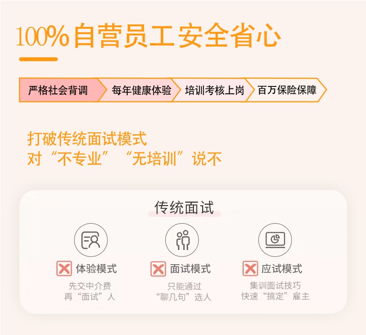 - 专注为中高端家庭提供安全、便捷、优质的家庭服务,针对家庭的每个周期提供全方位的月嫂、育婴师、钟点保姆、养老护理、日常保洁、除尘除螨、家电清洗等一站式高品质家政服务。