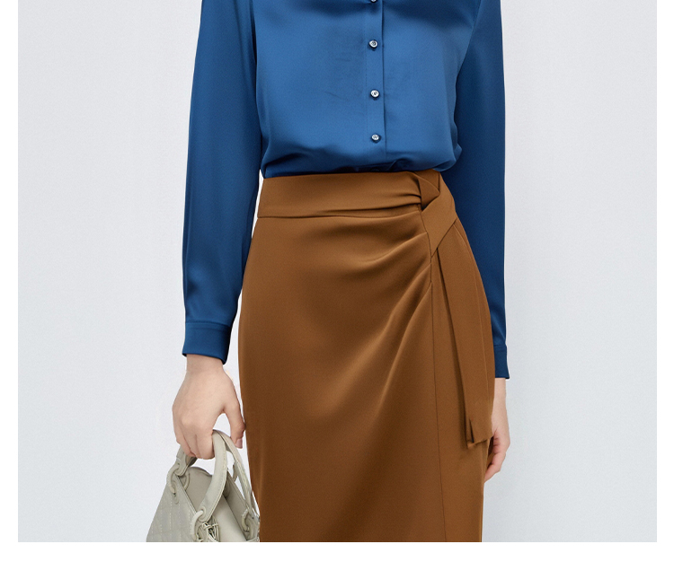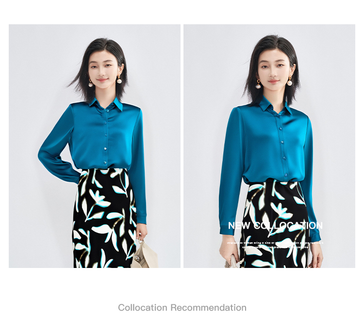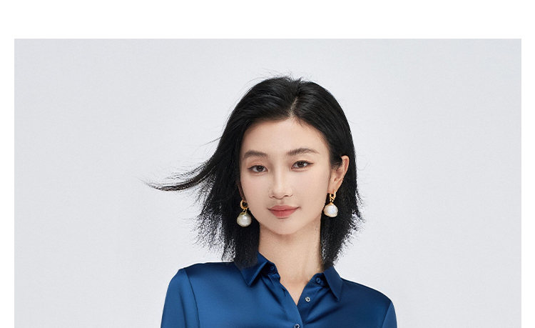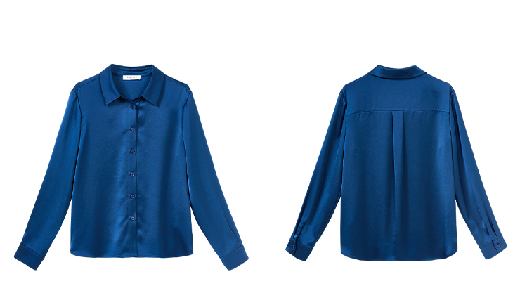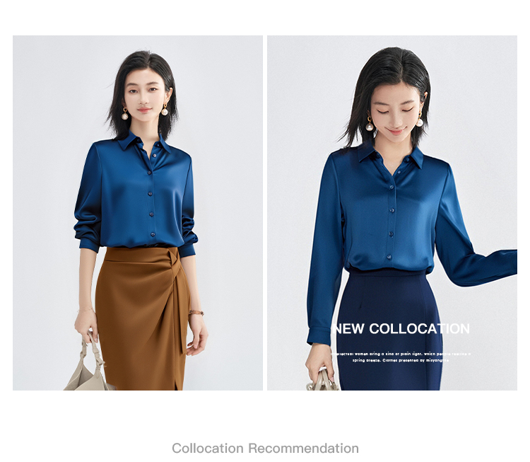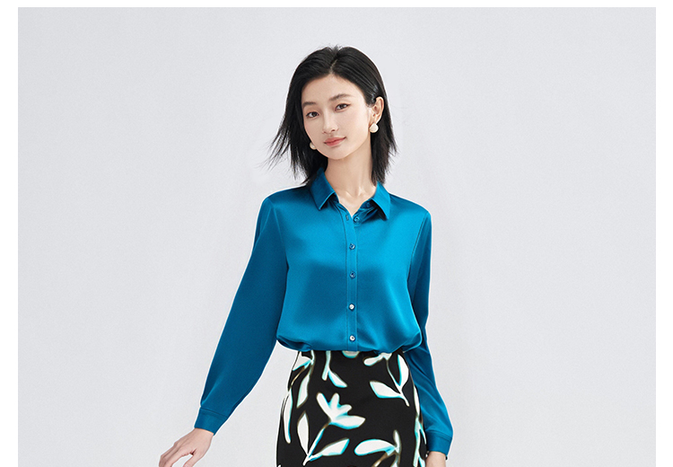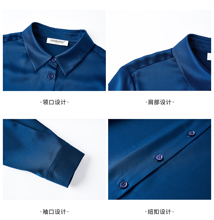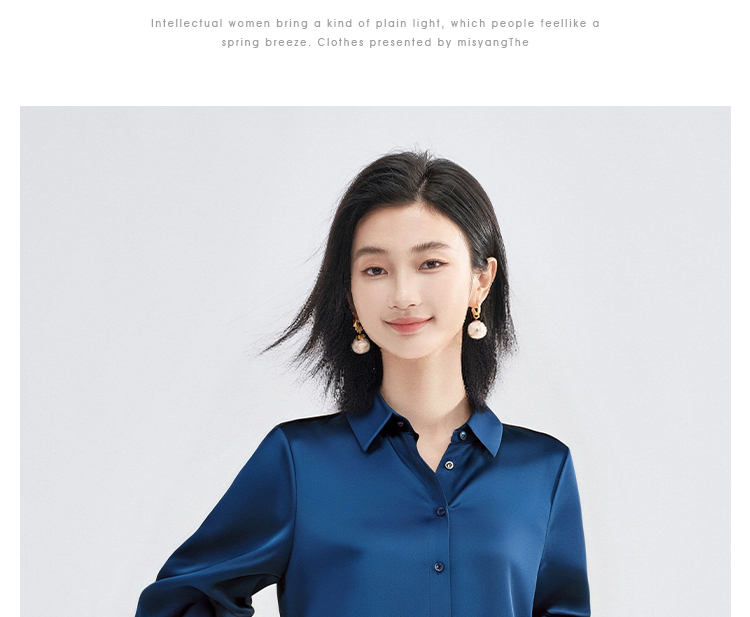 剩M/L/XL/XXL 「靛蓝醋缎」衬衫 “会呼吸” 的光泽感 经典衬衫领与利落排扣 对各种身形都友好包容 米思阳2025新款高级感醋纤衬衫缎面通勤OL宽松直筒上衣女4302