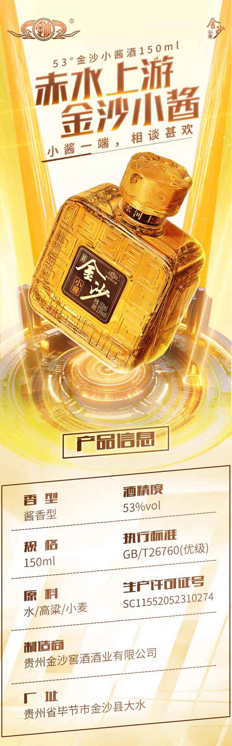 金沙小酱酒 53度 酱香型白酒150mL 多规格任选【包邮直发】