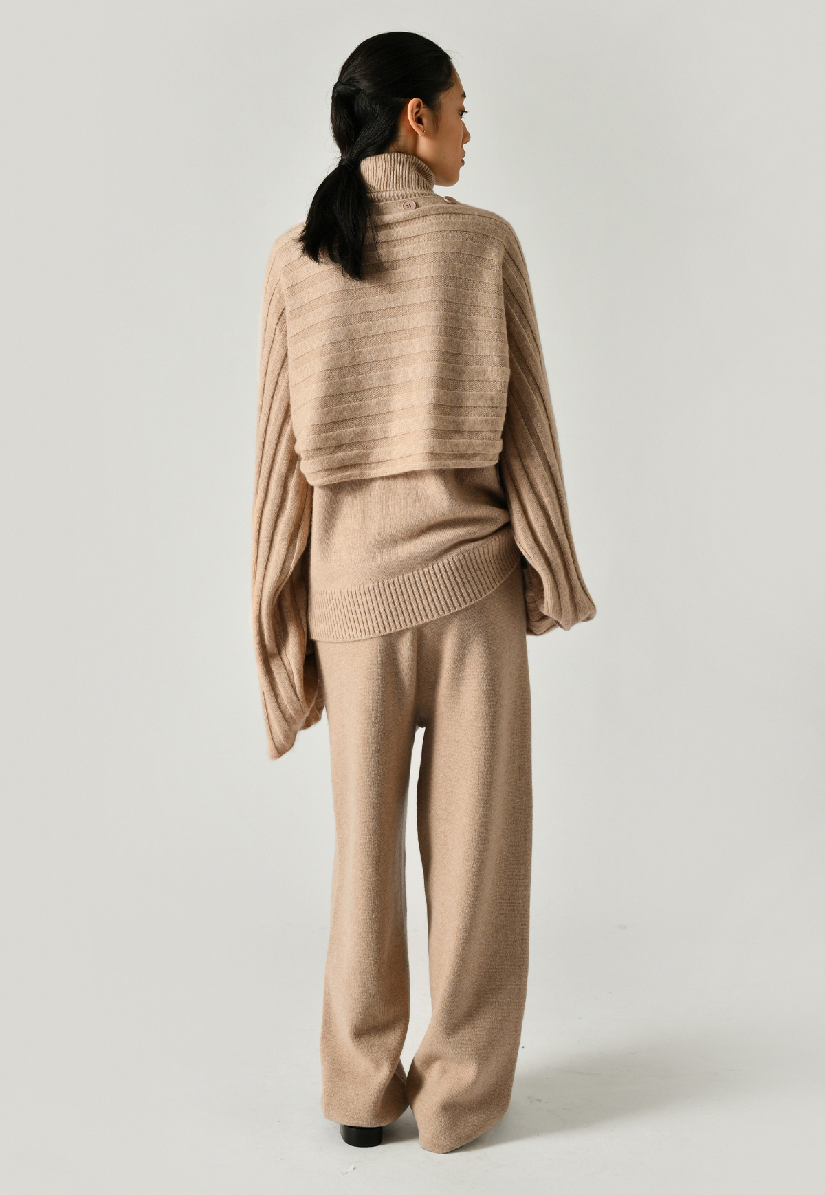 322工房重叠搭造型羊毛混纺高领背心坎肩两件套新款时髦简约套装