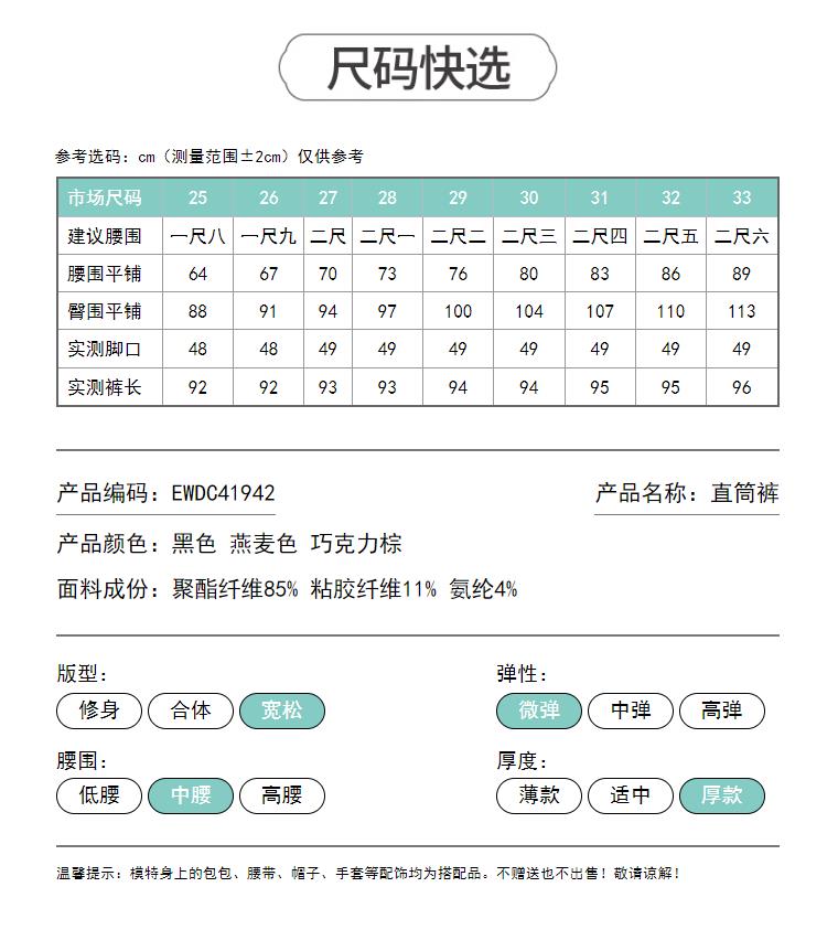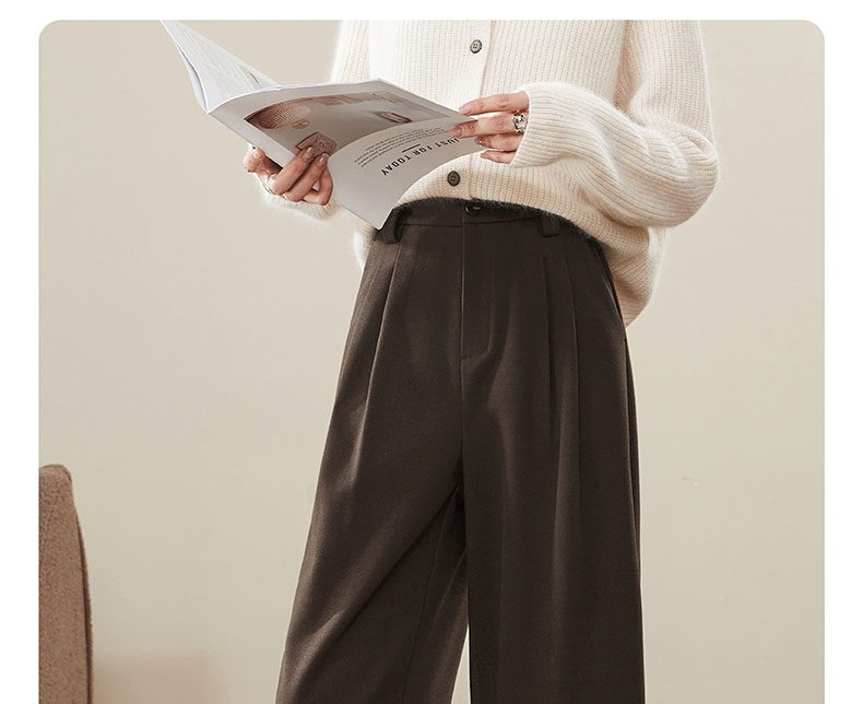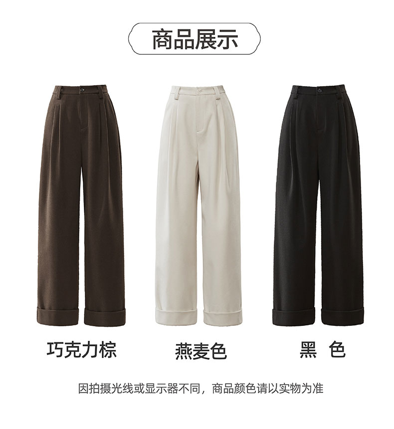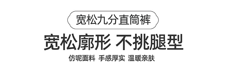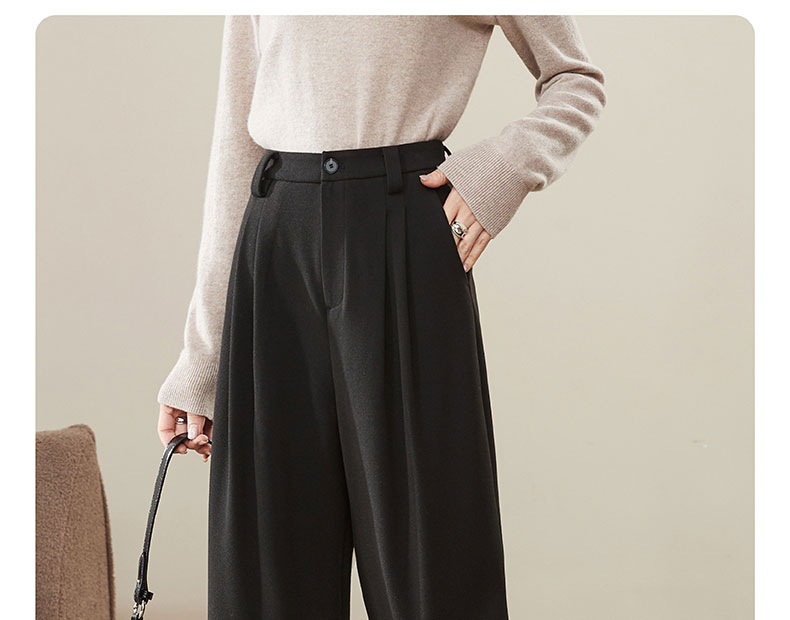【仿毛呢-直筒裤】逸阳秋冬新品高腰垂感显瘦通勤休闲仿毛呢阔腿裤子1942
