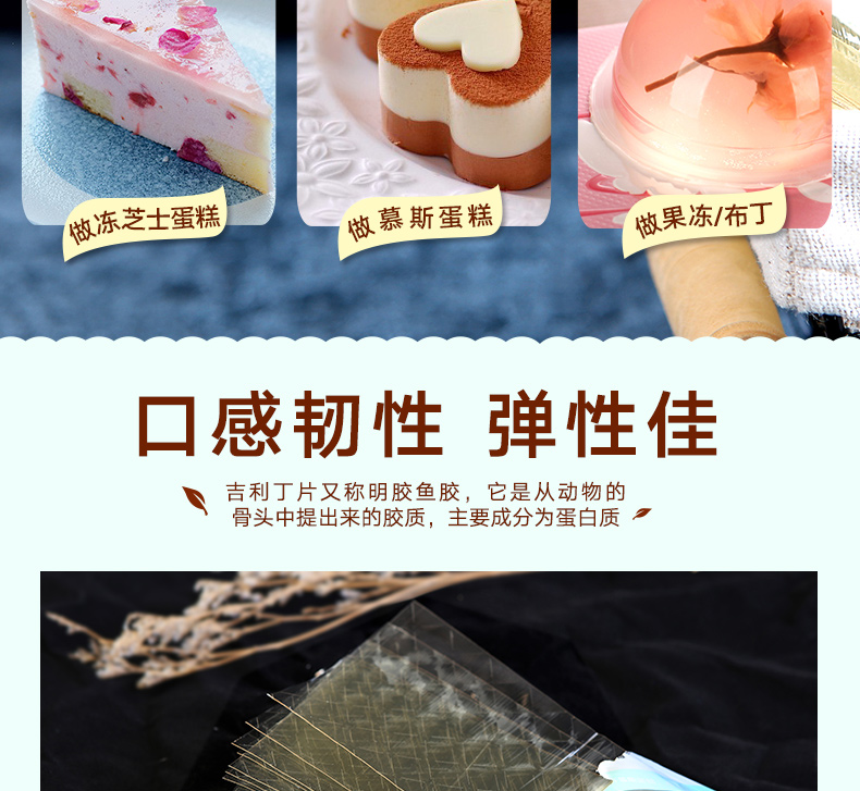 新良吉利丁片50g (5g×10片)鱼胶片明胶片 果冻布丁慕斯蛋糕用