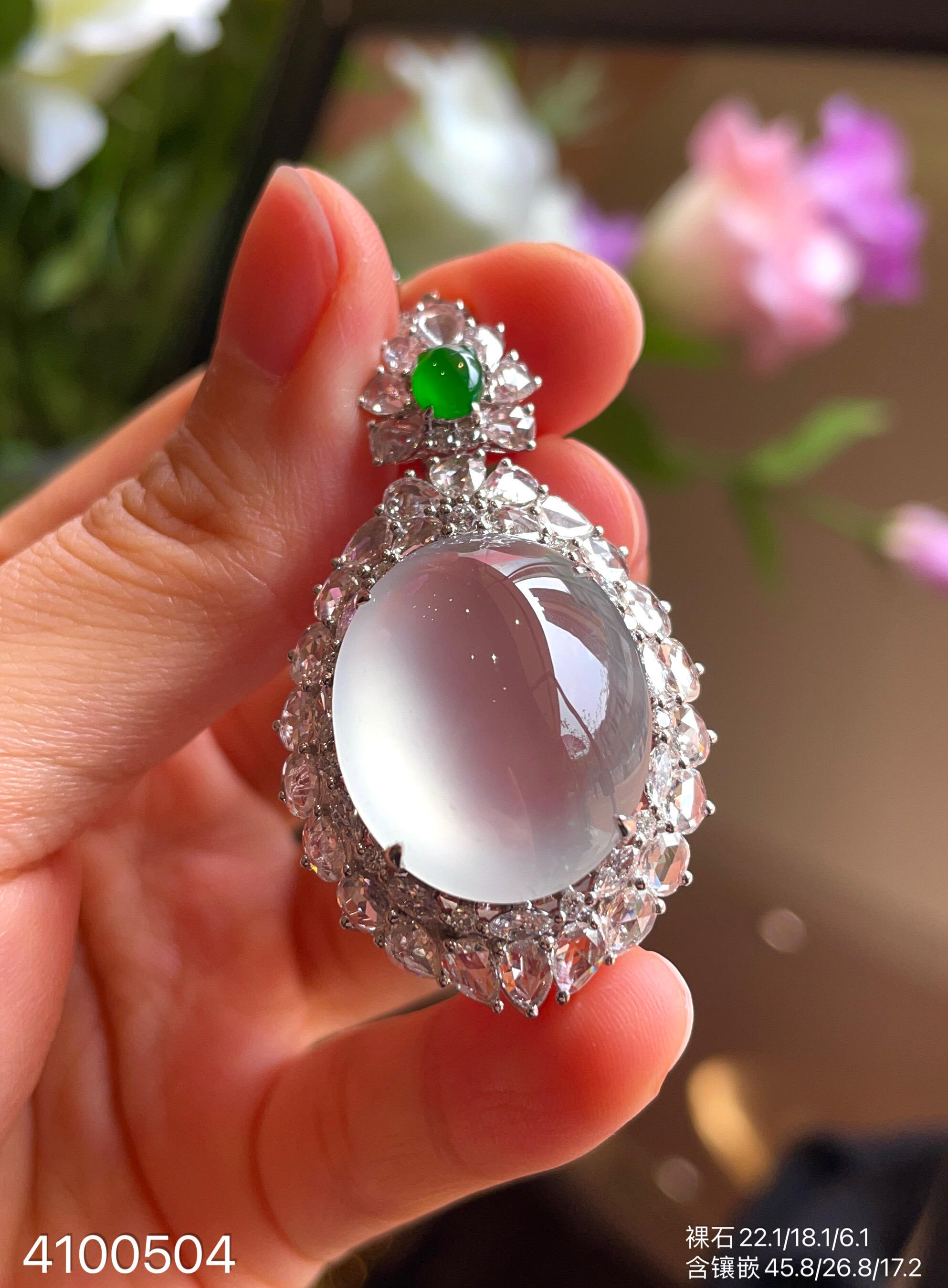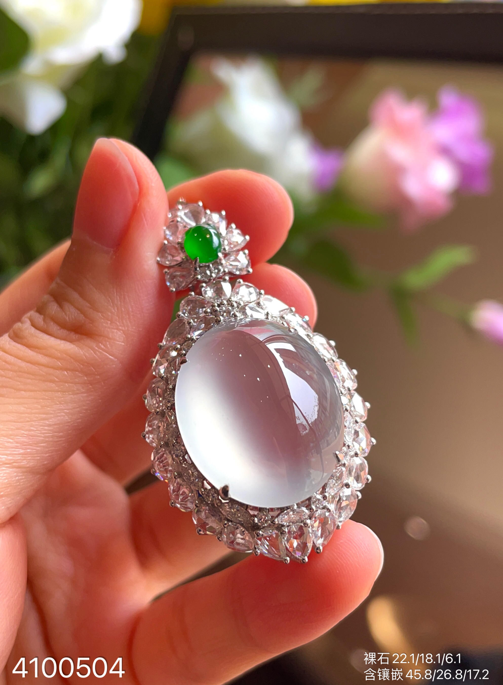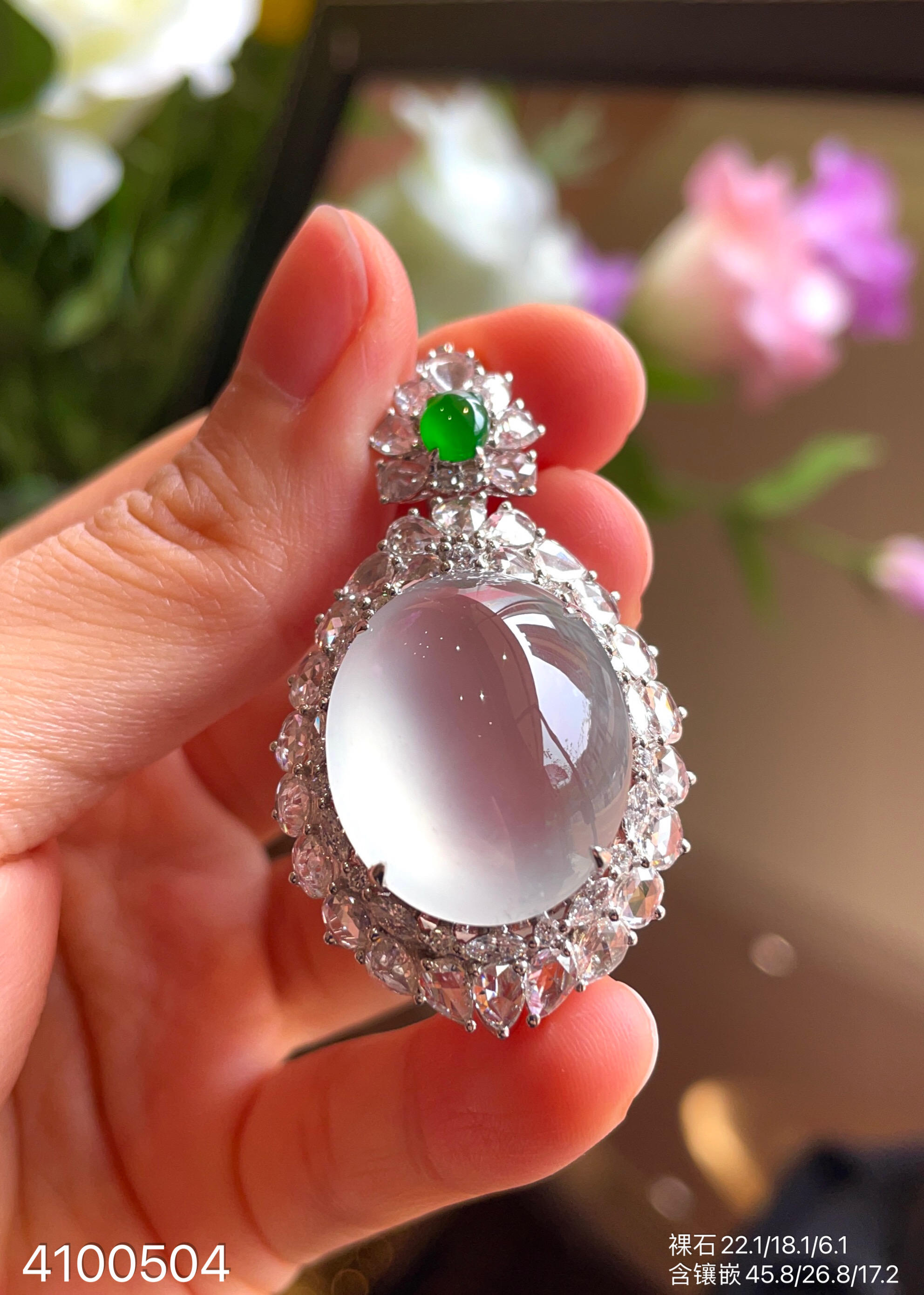 玻璃种蛋面吊坠【4100504】具体价格微信咨询