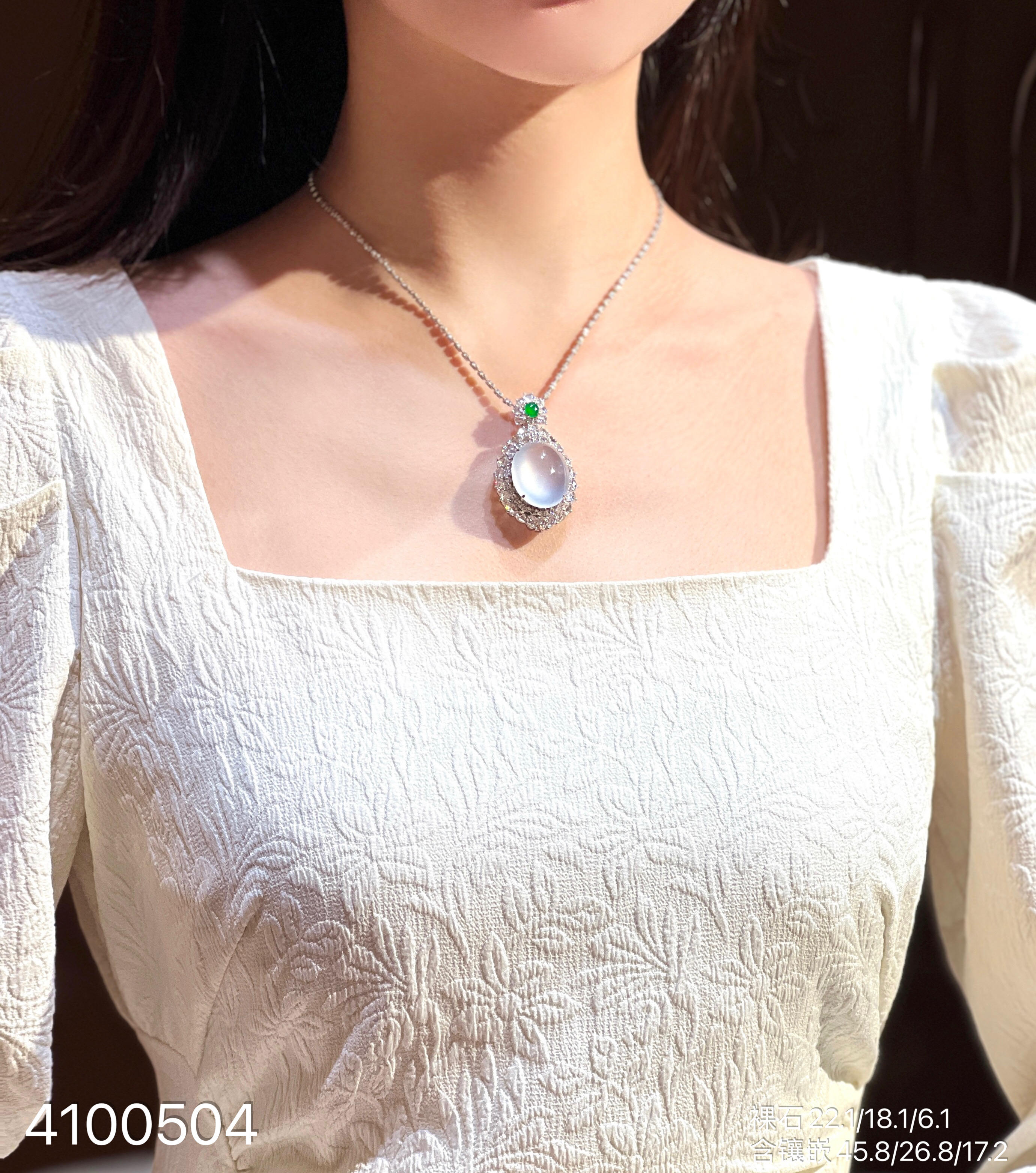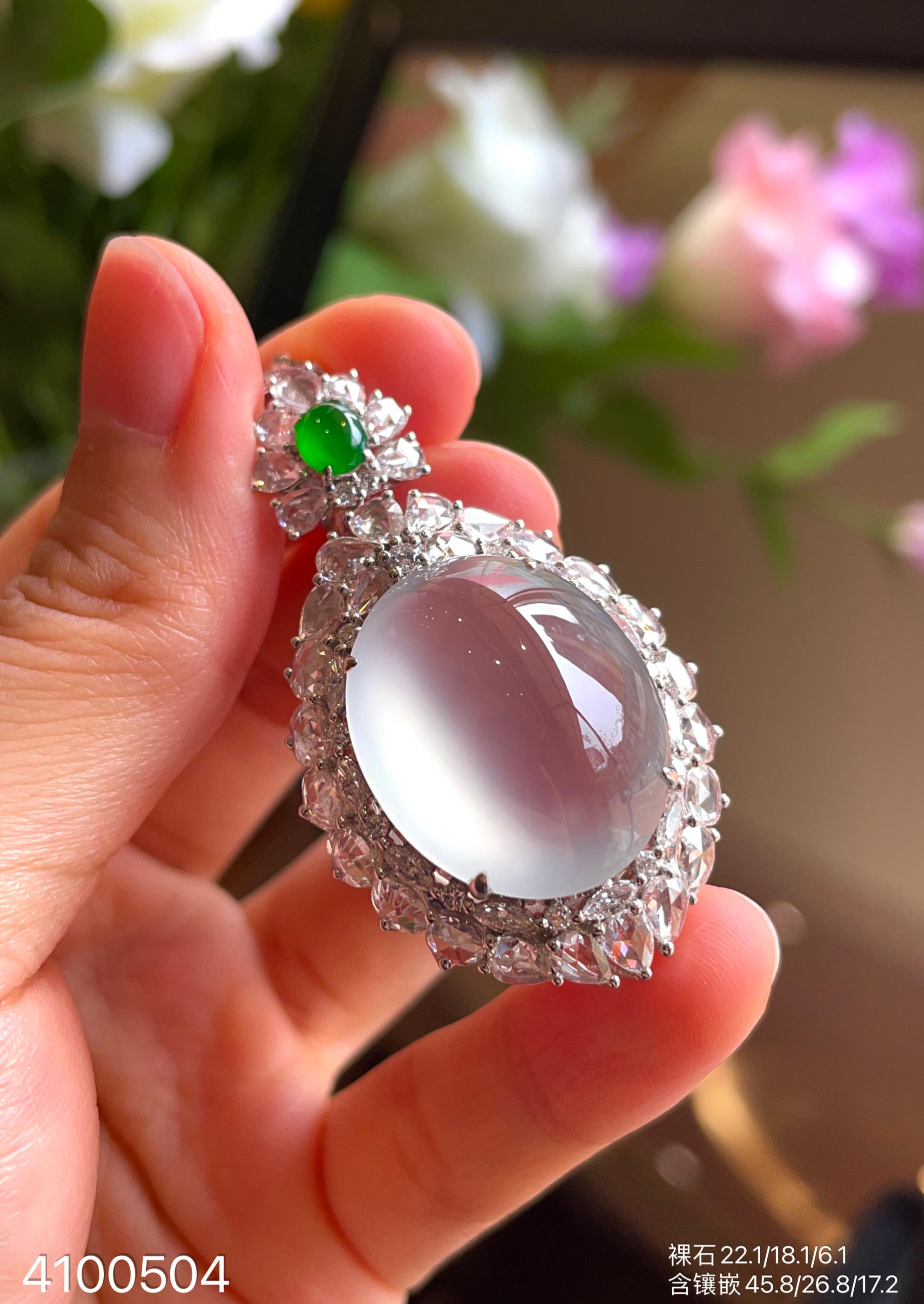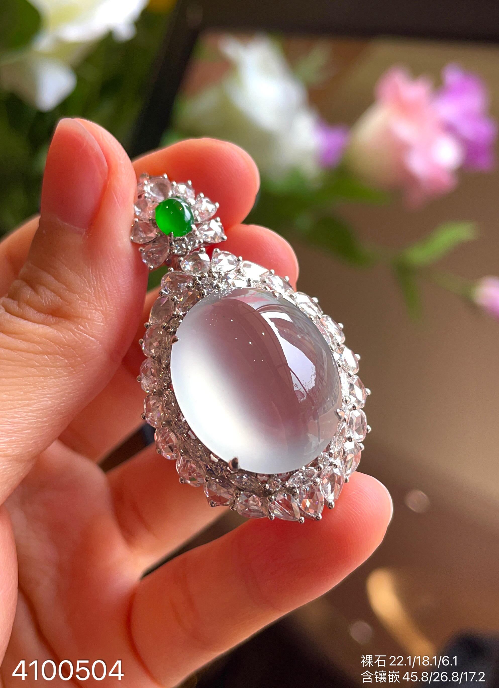 玻璃种蛋面吊坠【4100504】具体价格微信咨询