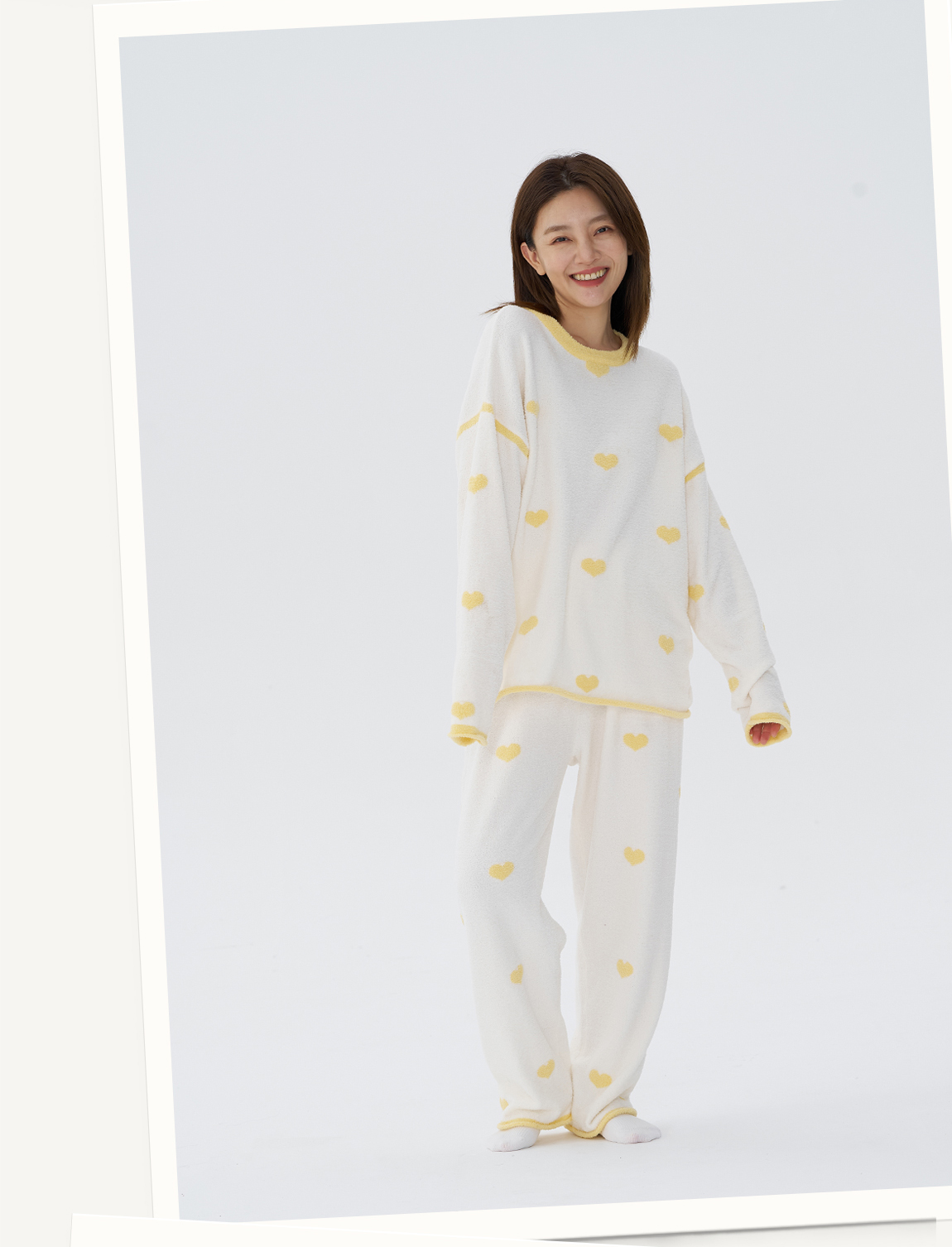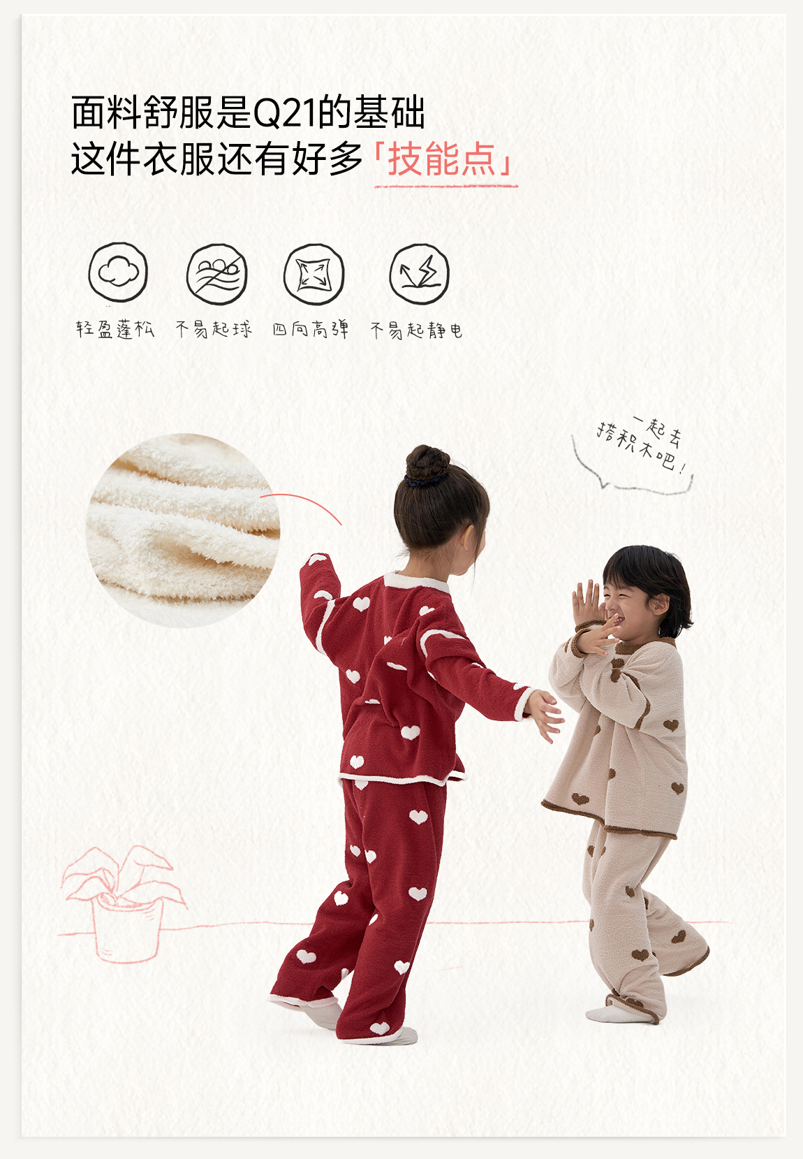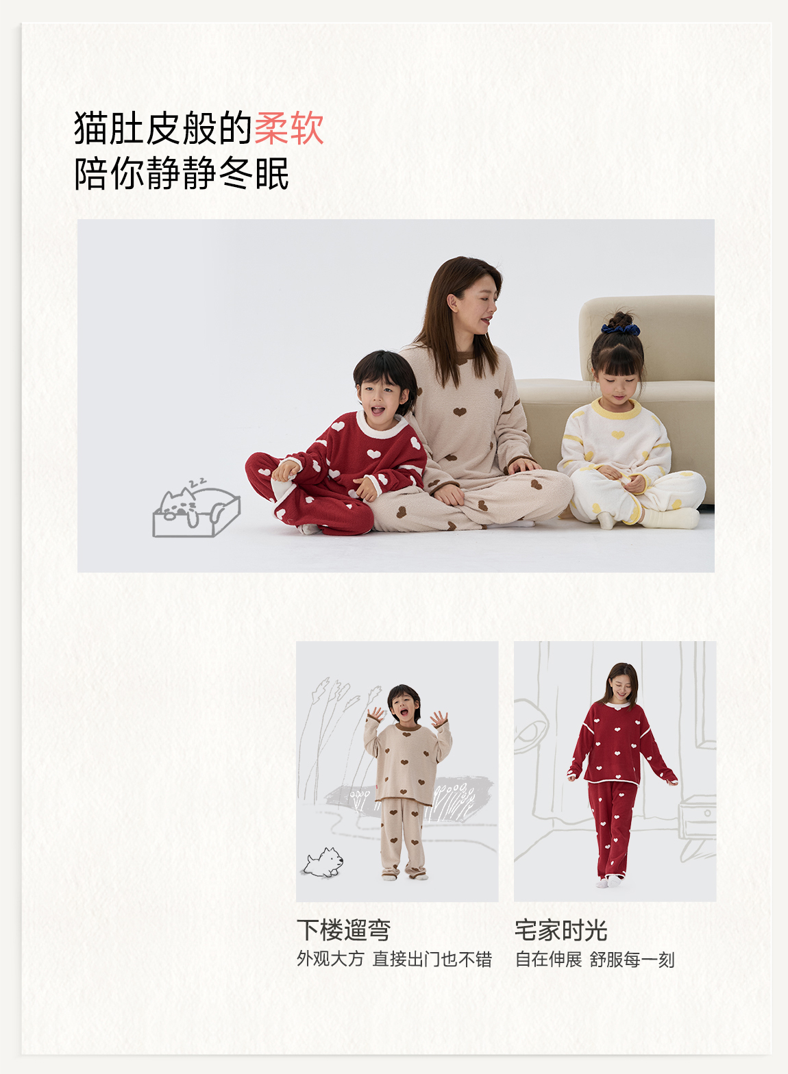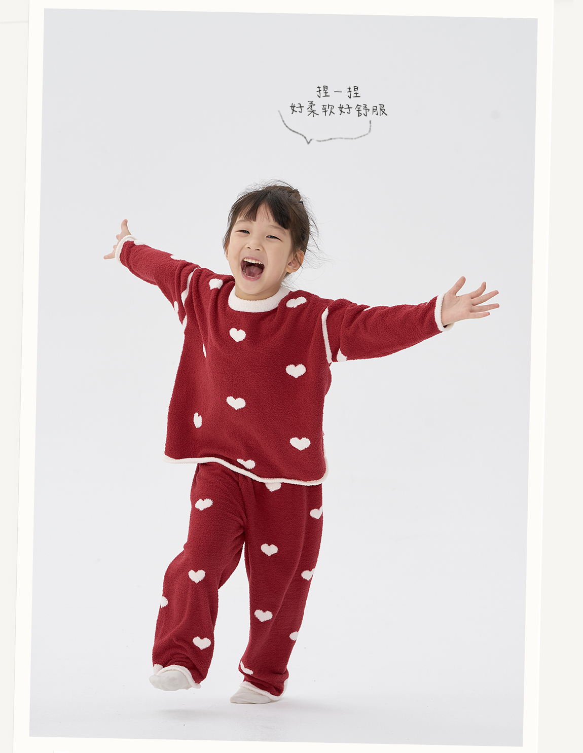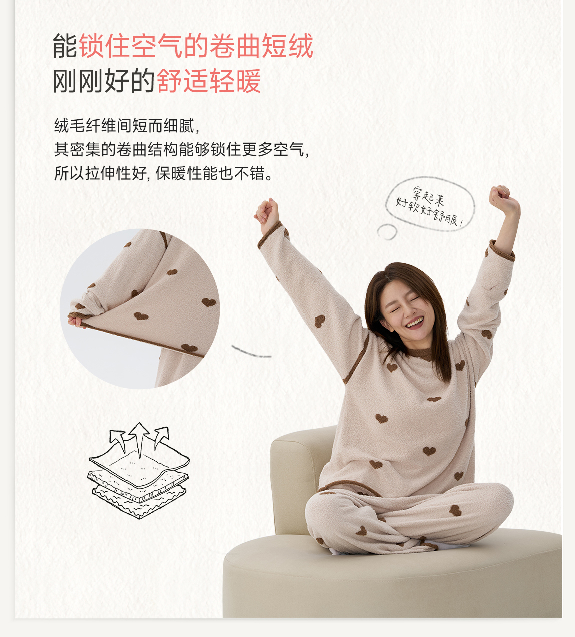 【不掉绒不变形】Q21薄暖爱心半边绒家居服套装3A抑菌
