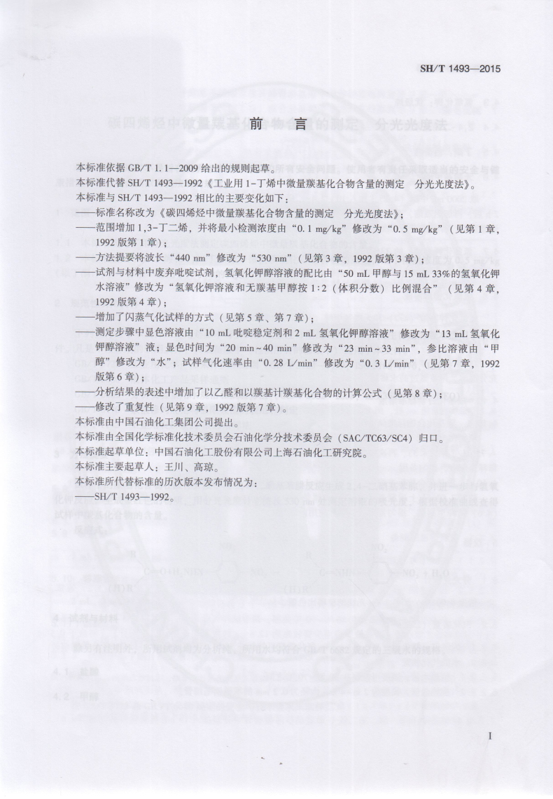 SH/T 1493-2015 碳四烯烃中微量羰基化合物含量的测定分光光度法