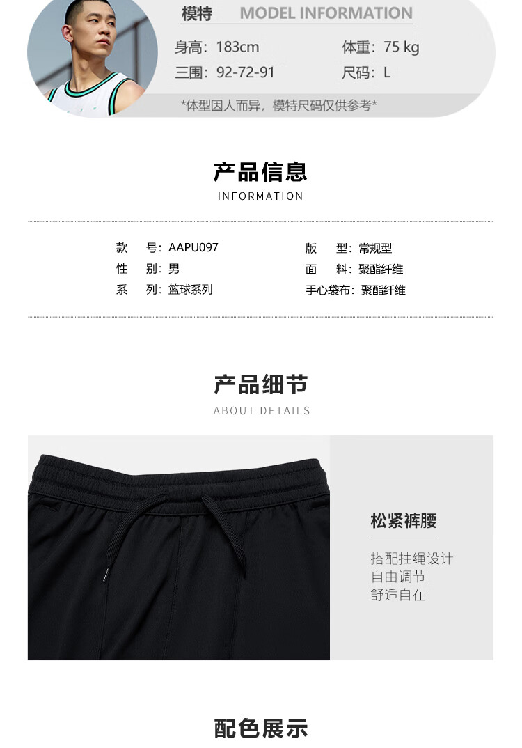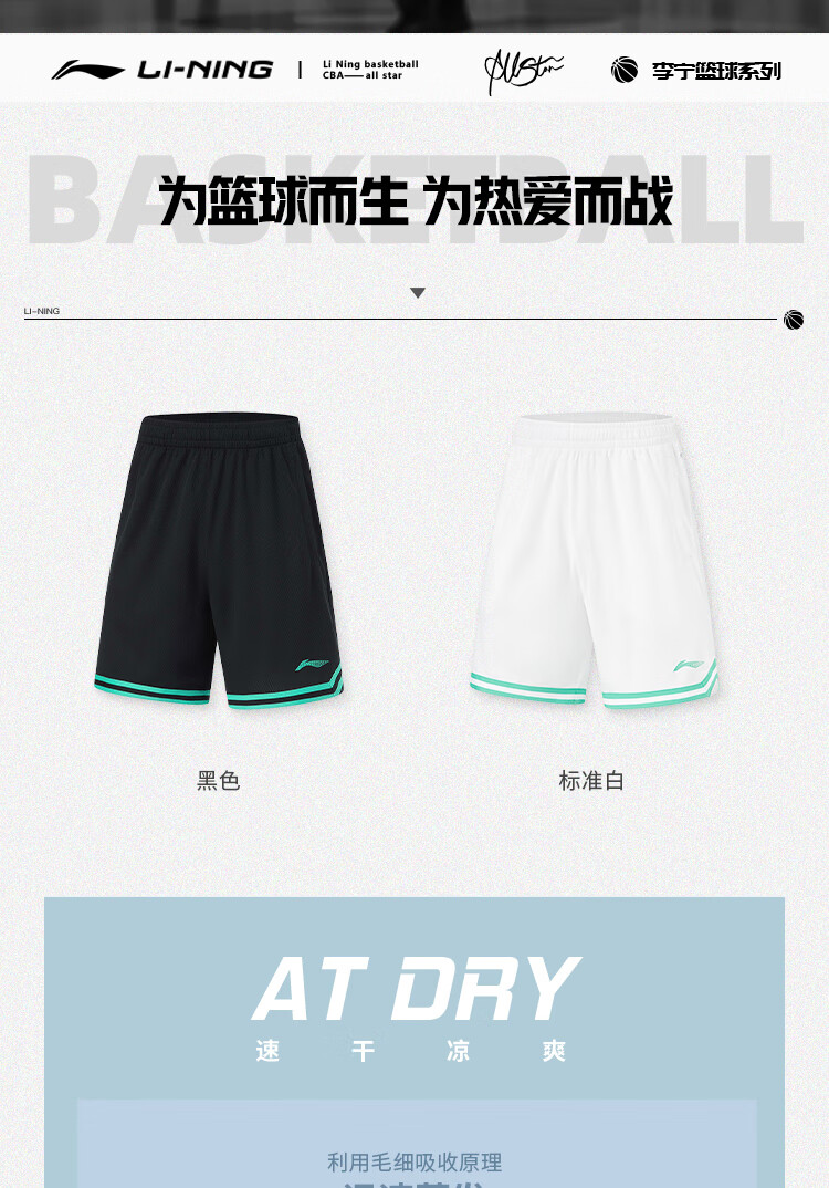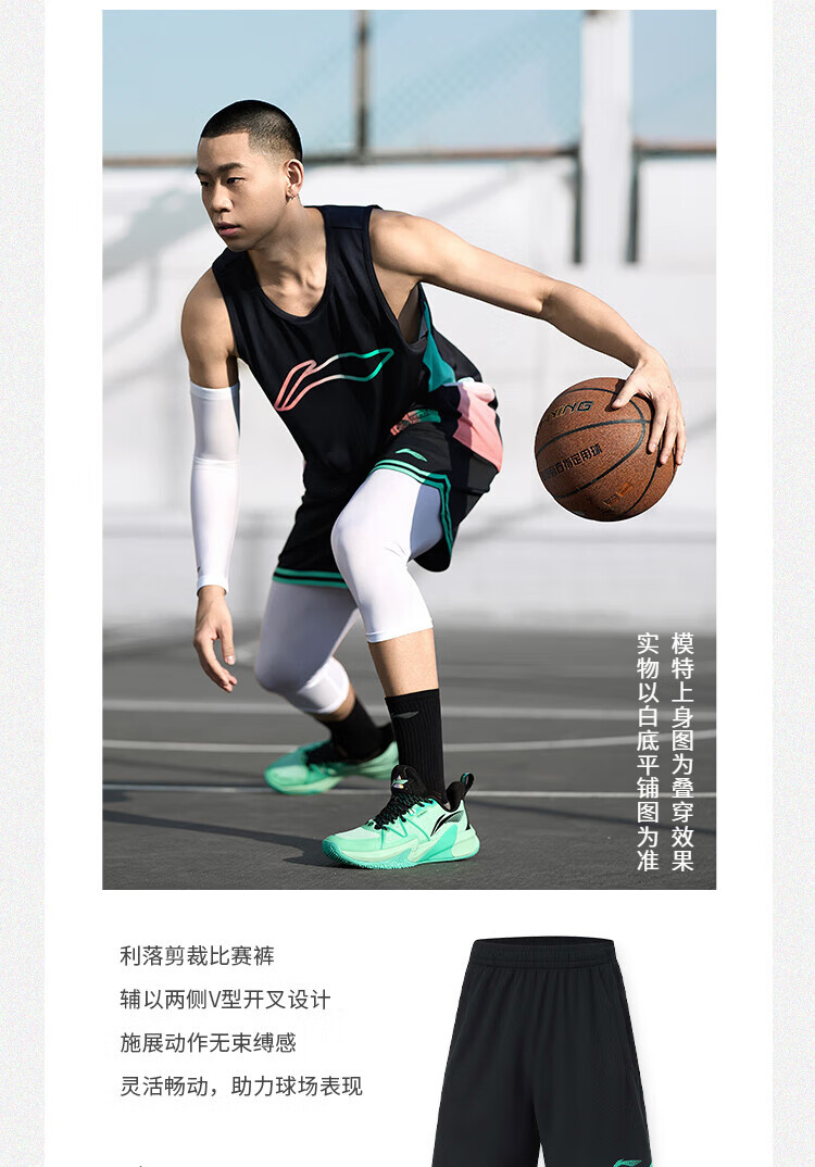 李宁CBA精英装备丨专业运动短裤男子24夏季速干凉爽比赛裤AAPU097