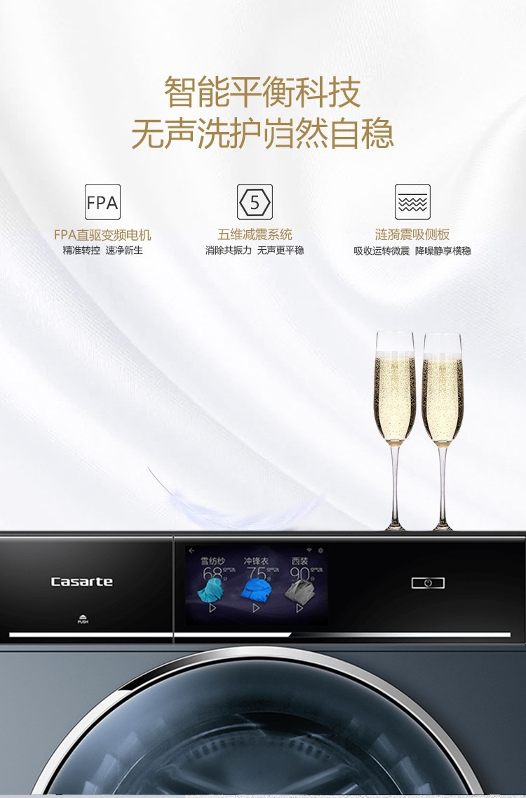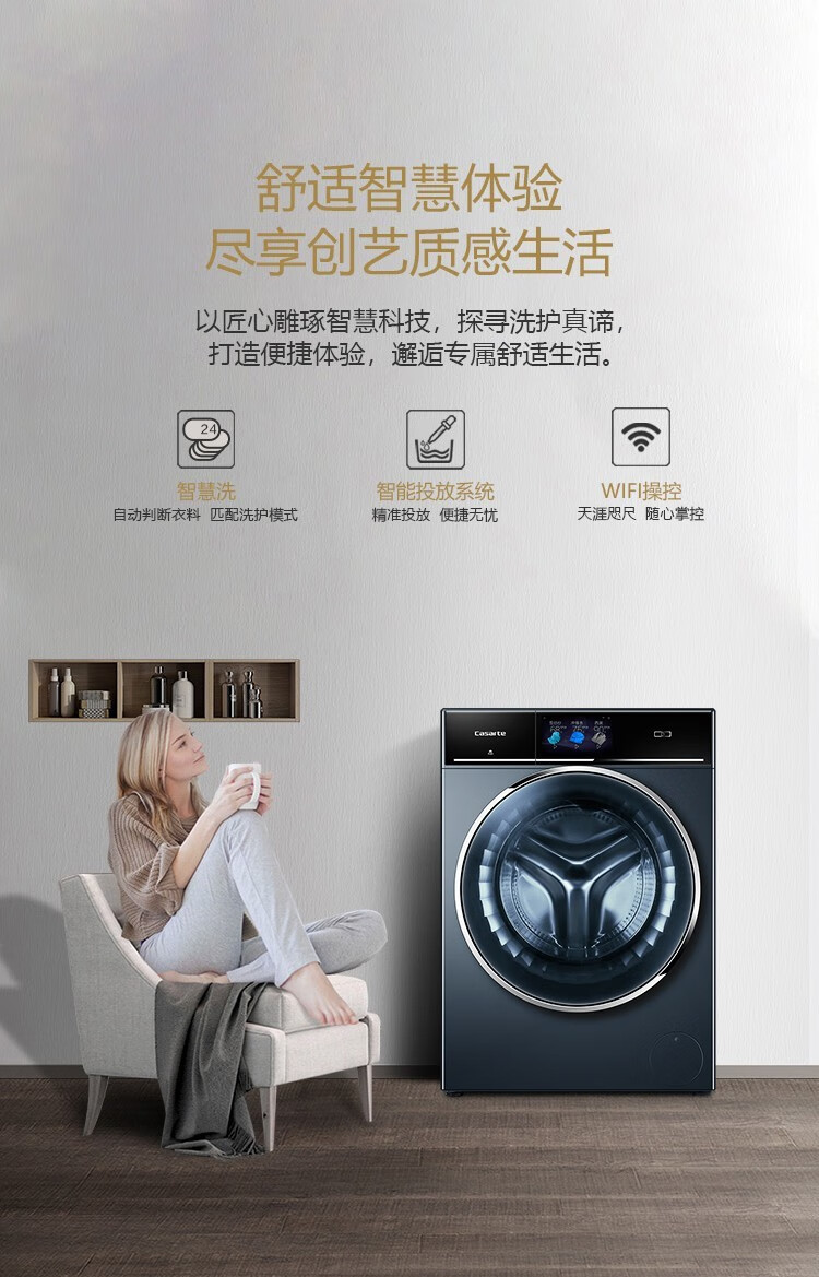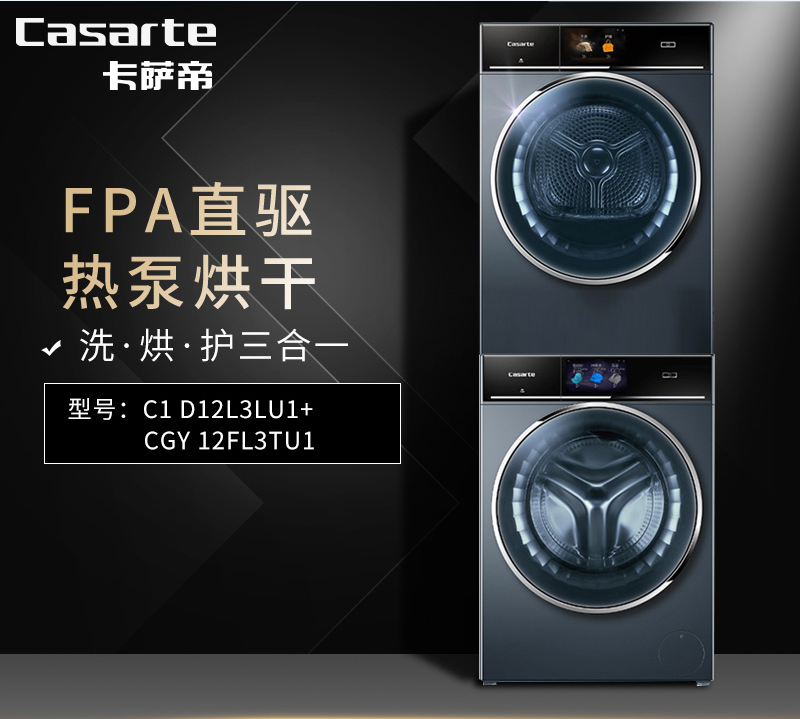 【全新5代洗烘套装】卡萨帝(Casarte)12KG+12KG 锡兰青热泵烘干家用大容量洗烘套装C1 D12L3LU1+CGY 12FL3TU1