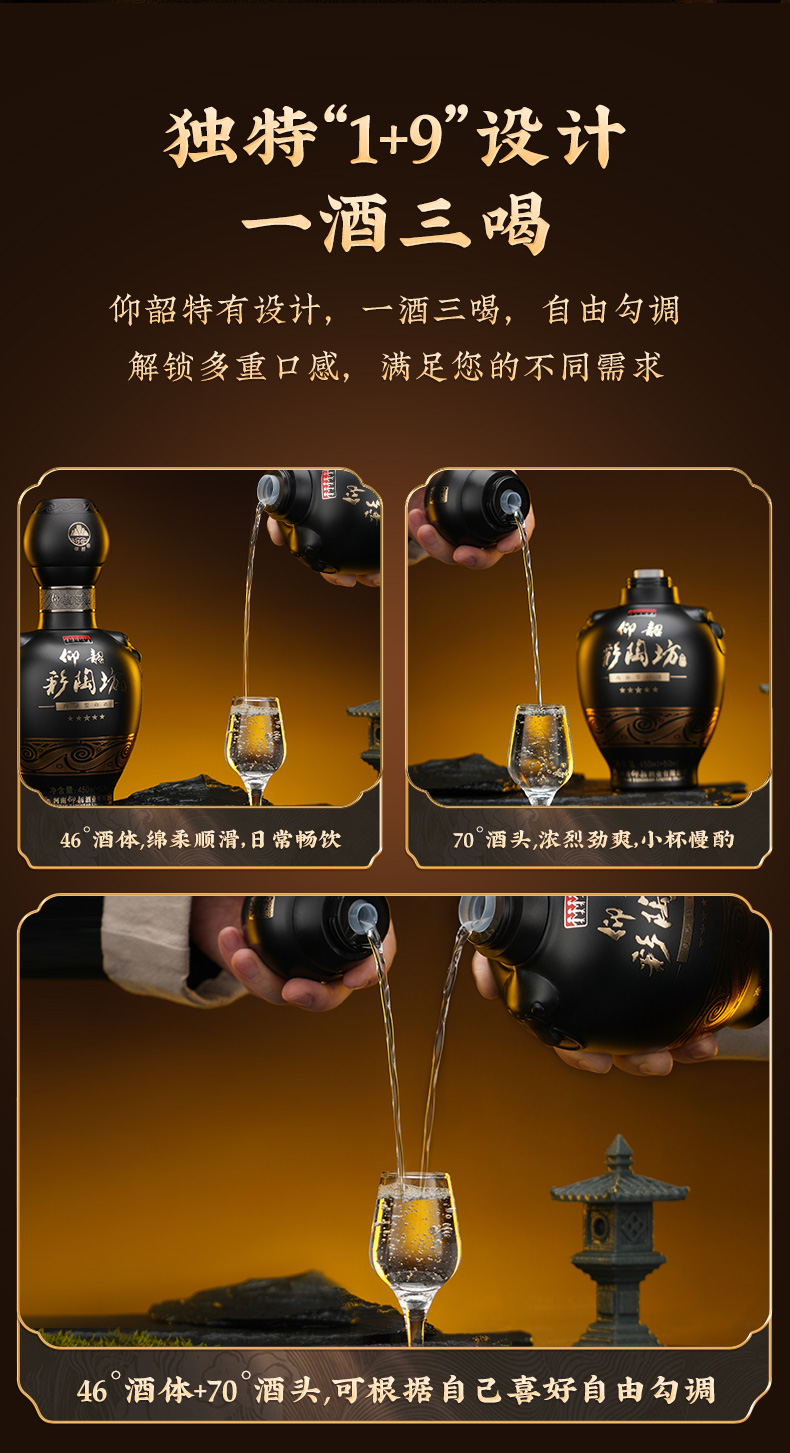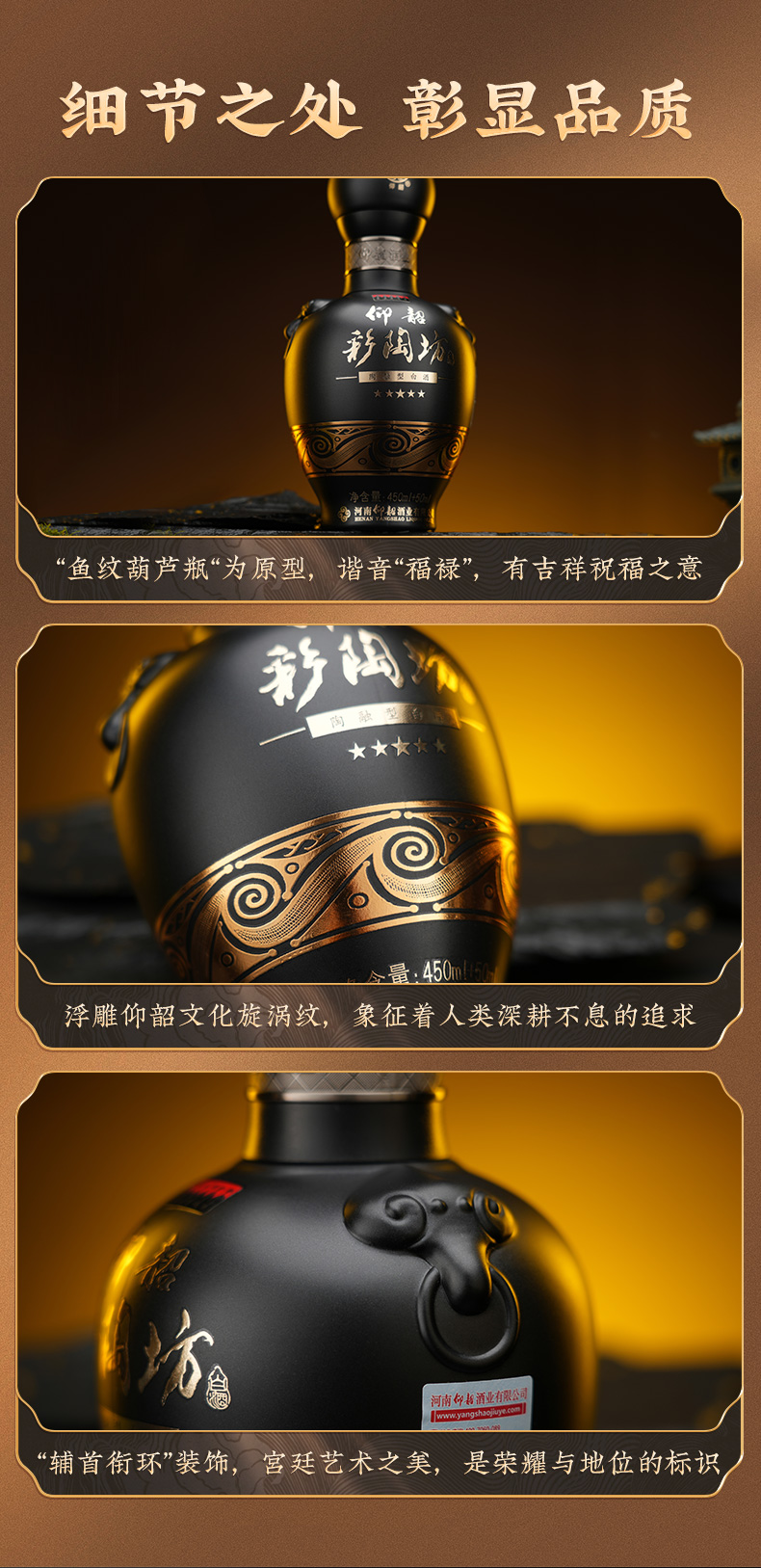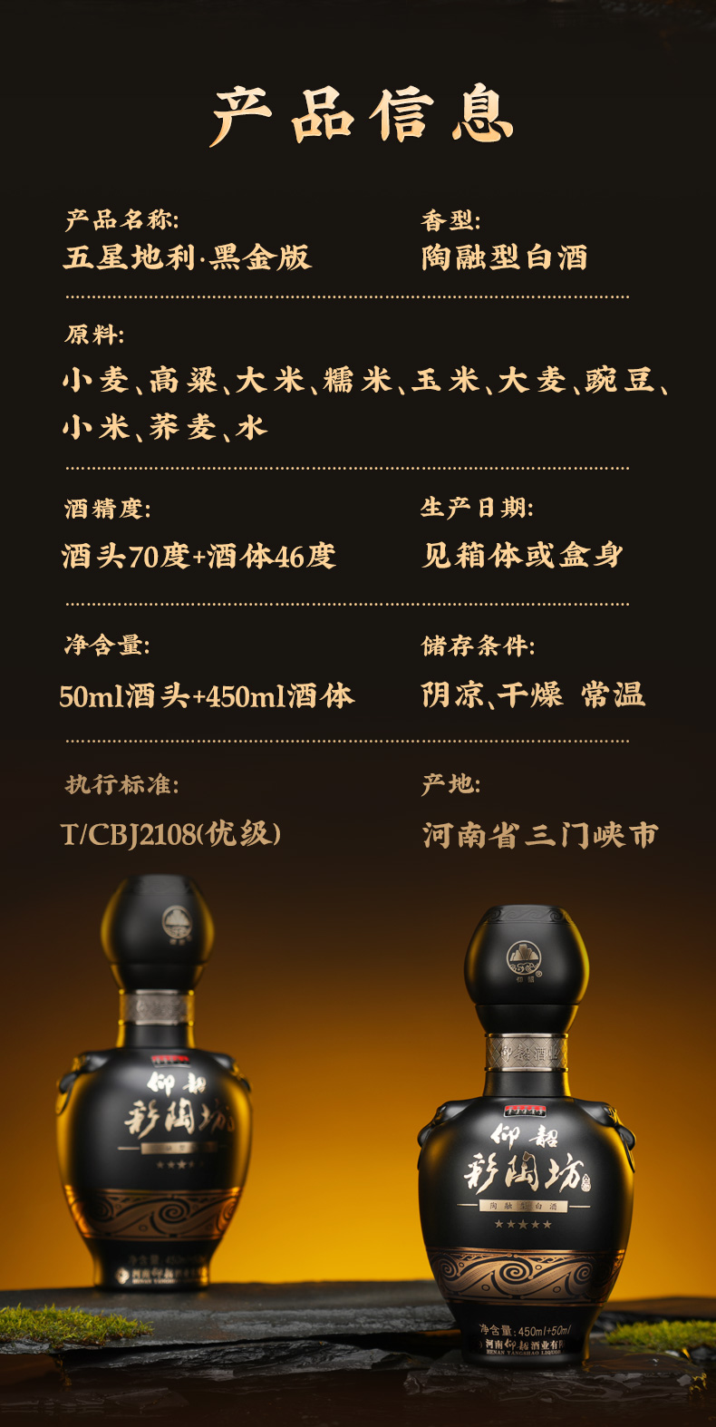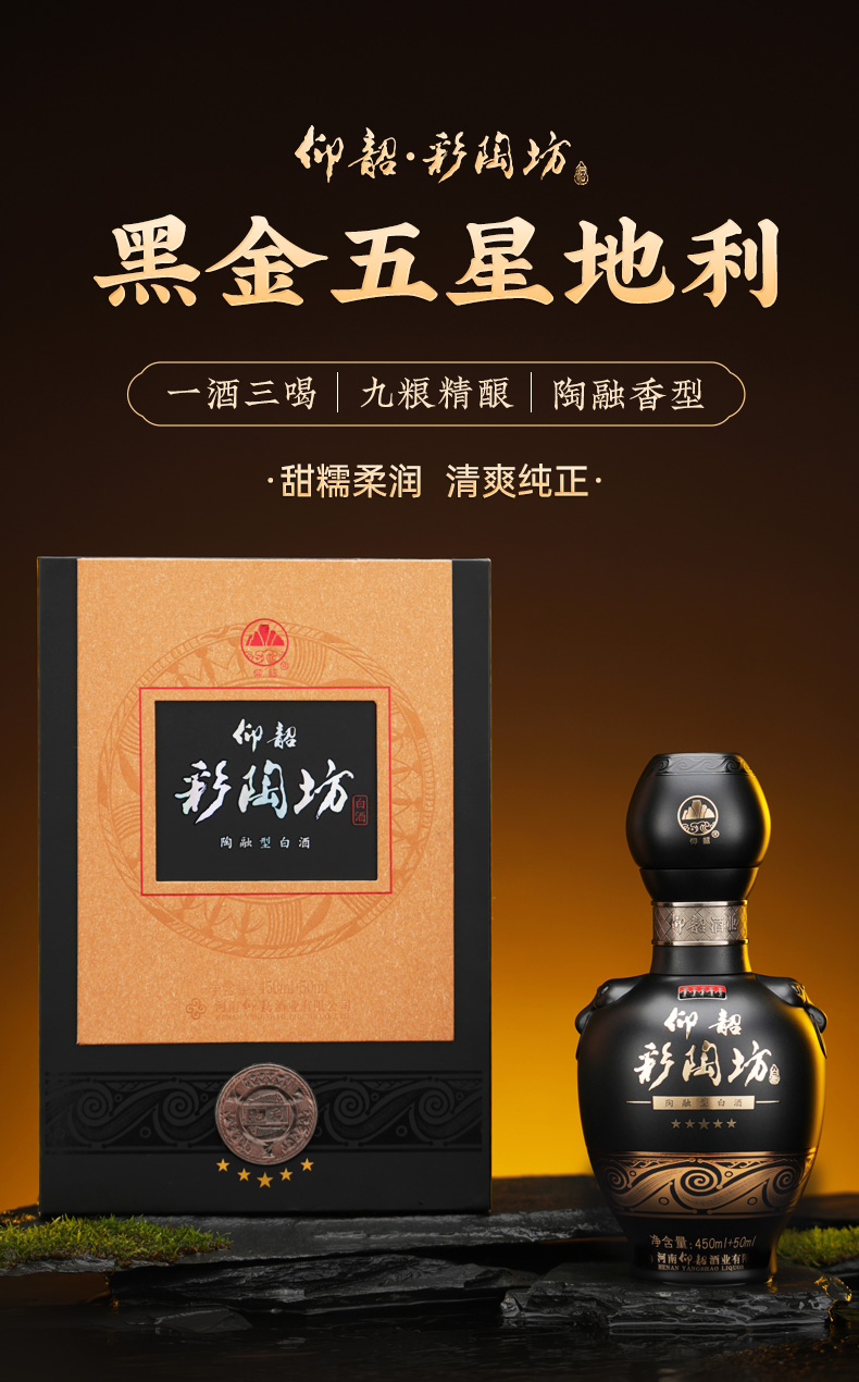 【店铺爆款】仰韶彩陶坊 黑金 五星地利 白酒 陶融型白酒 450+50ml 纯粮酿造