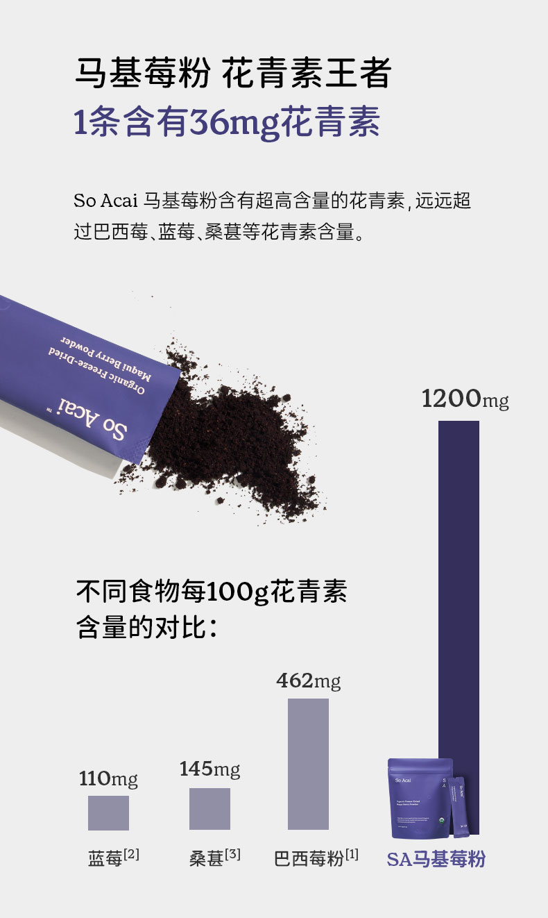 保税直发 So Acai 有机冻干马基莓粉 3gx20袋/盒x3