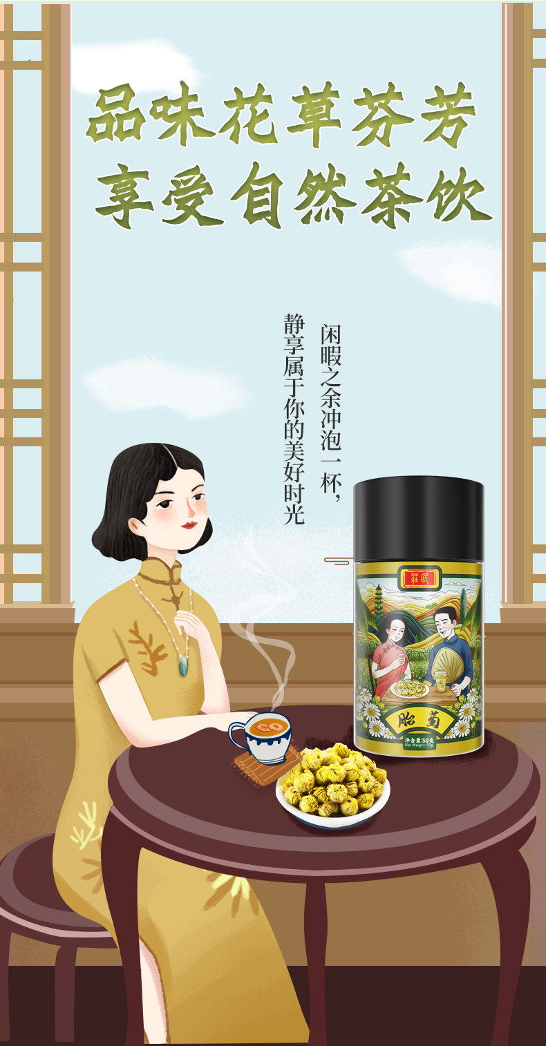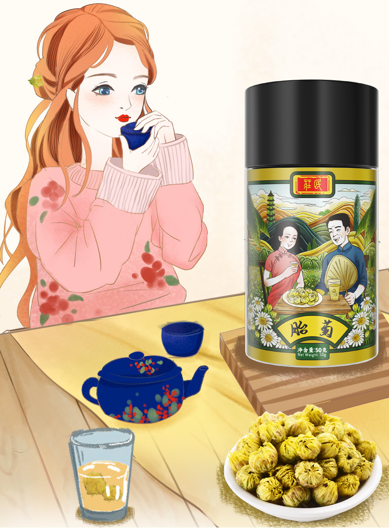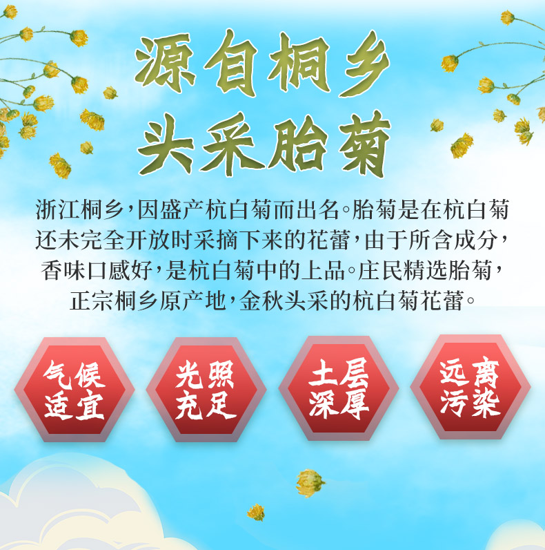 庄民 胎菊 精选大朵含苞 杭白菊花茶 可做菊花决明子茶 男女养生茶叶 50g