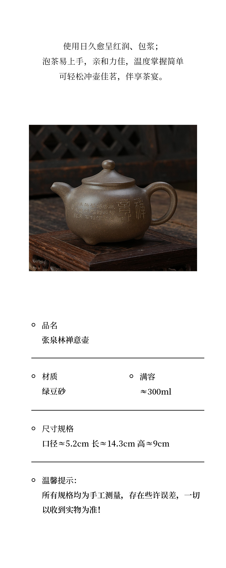 张泉林禅意壶 绿豆砂 宜兴紫砂原矿茶壶紫砂壶功夫茶泡茶壶茶具仿古