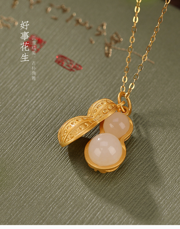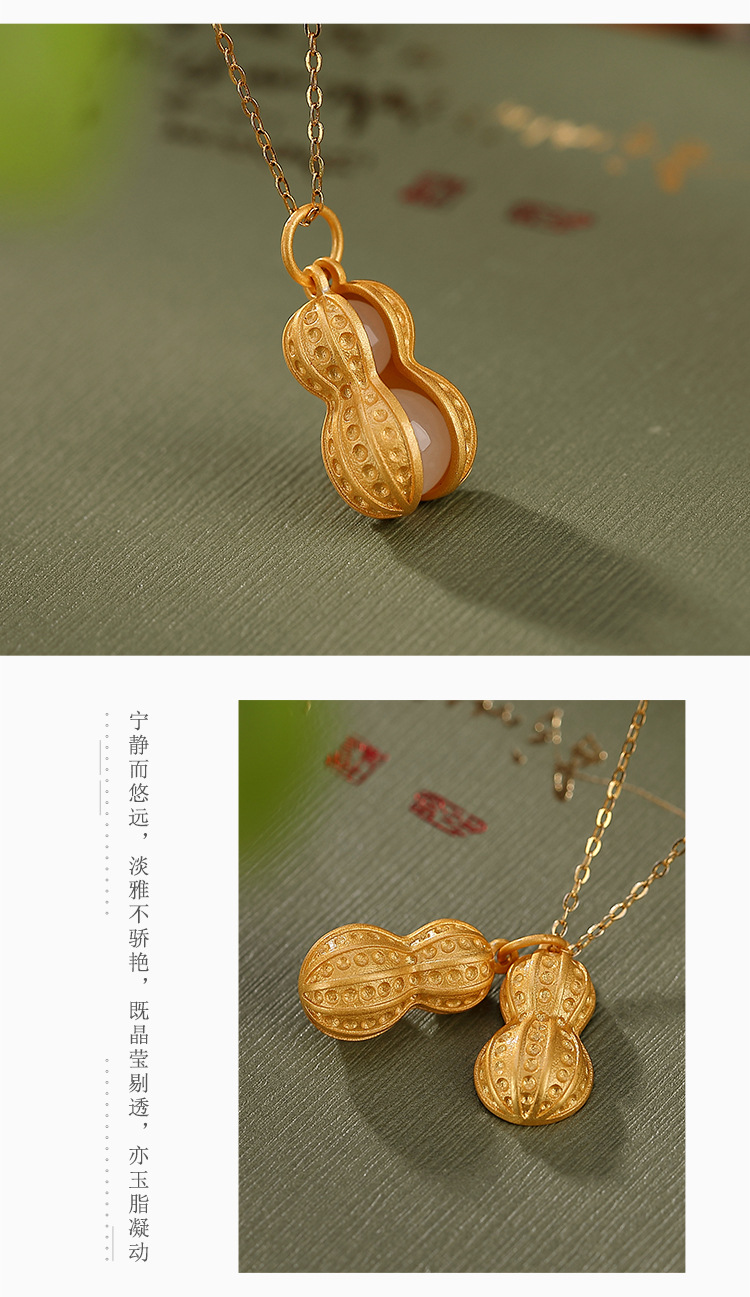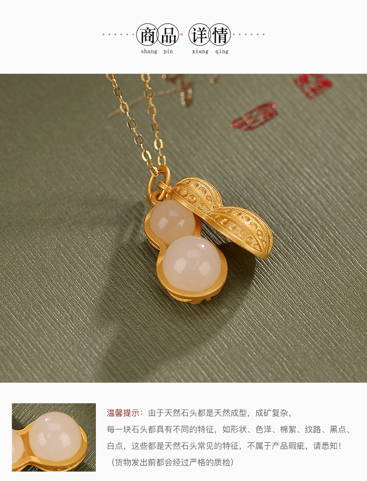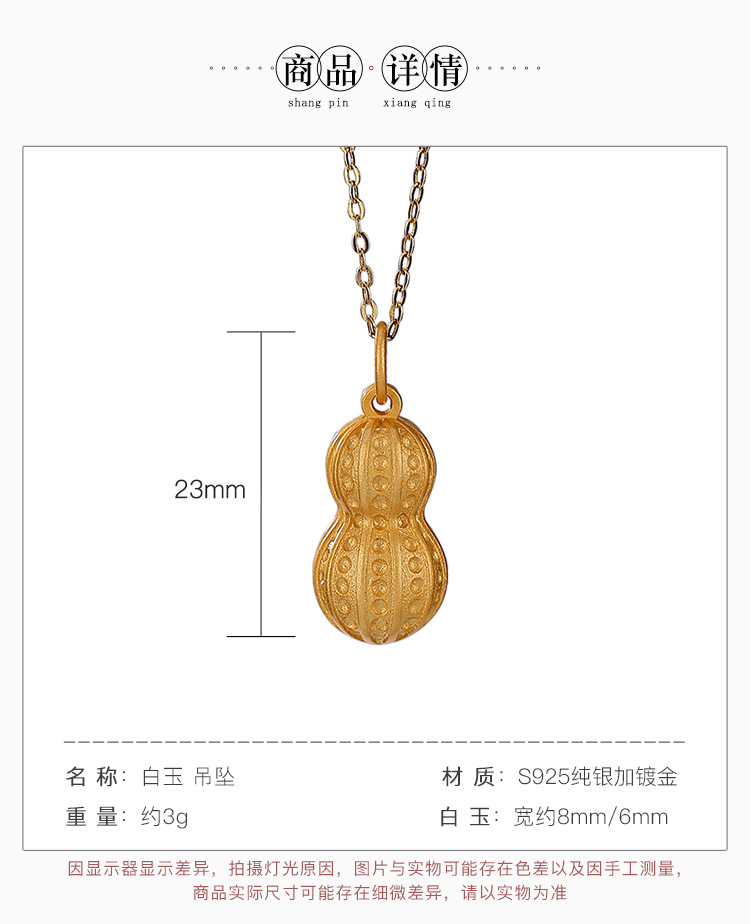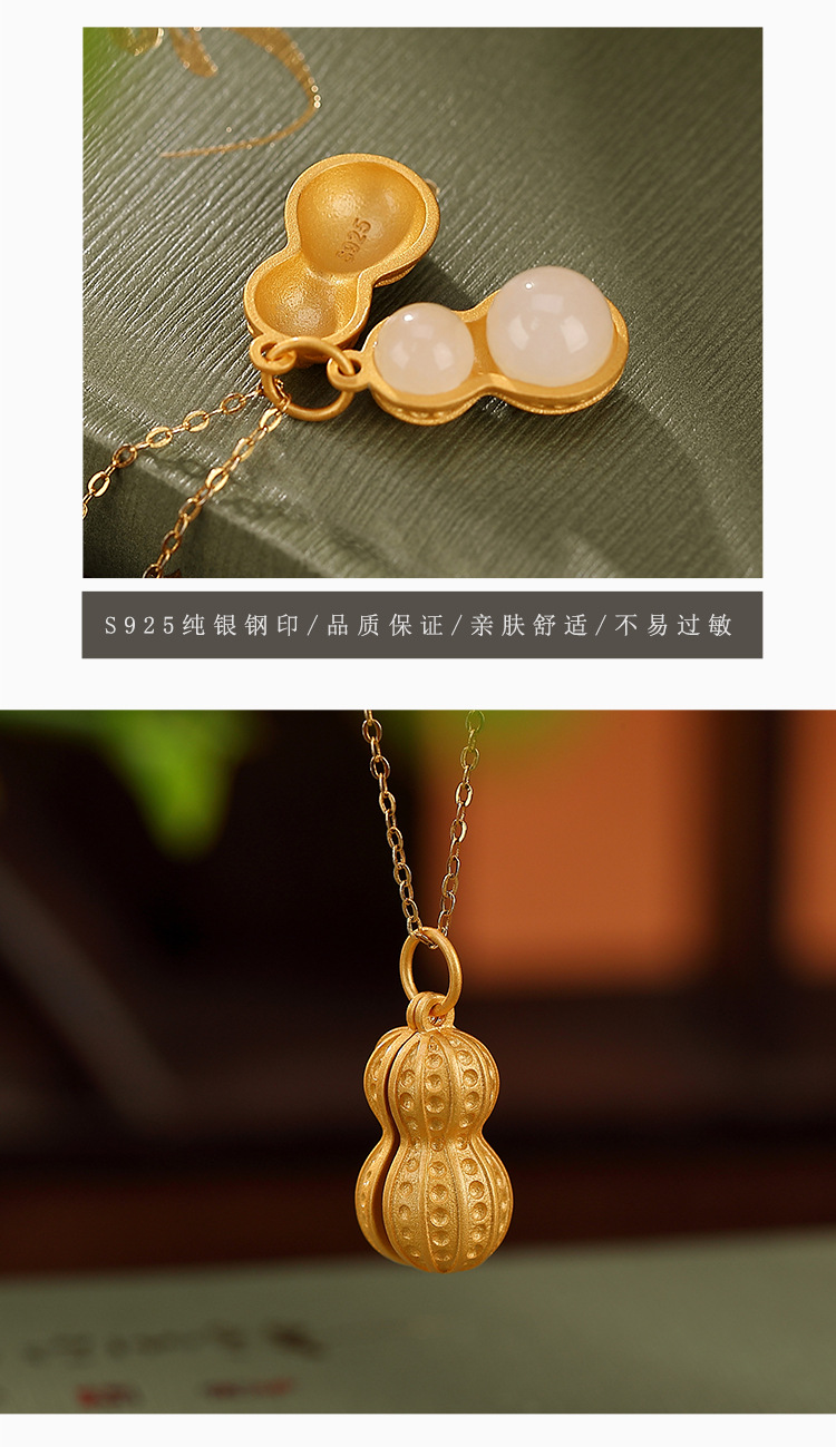 【好事花生】S925银镀金和田白玉吊坠【CW-80465】