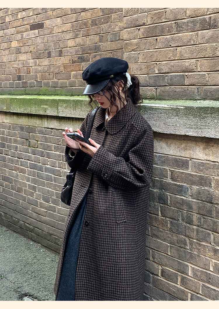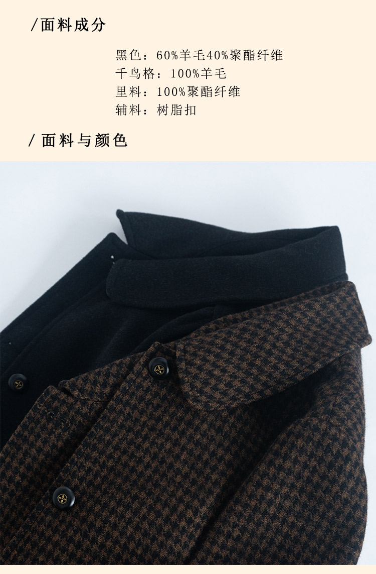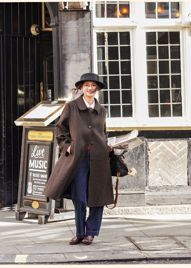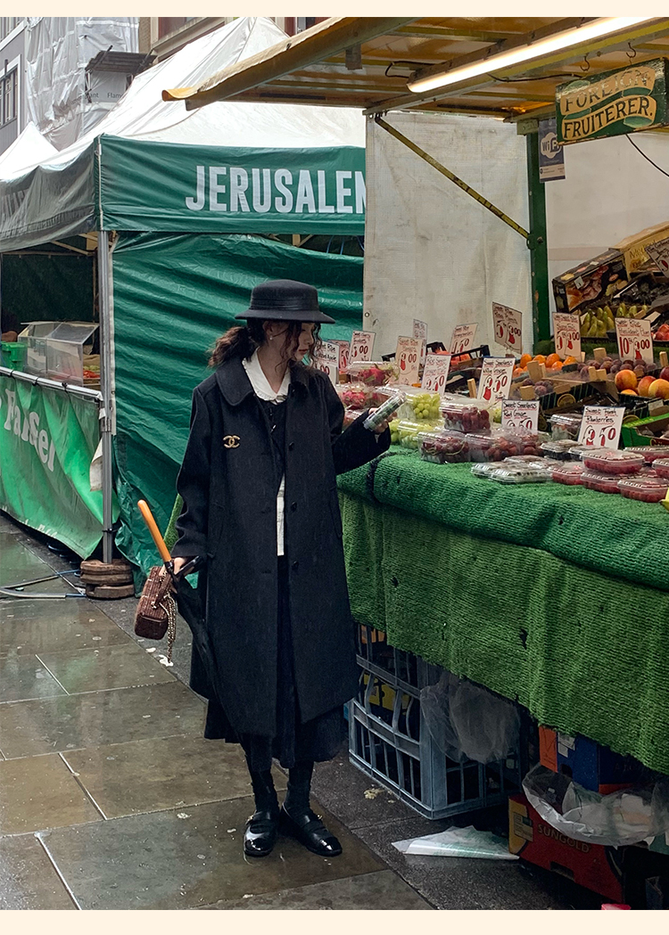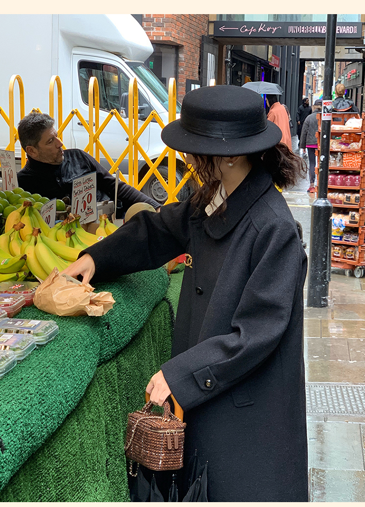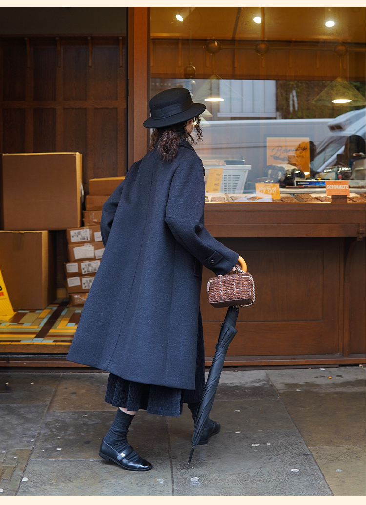 浮生八记/24C119/复古全羊毛娃娃领抽肩章收袖口古董金扣大衣