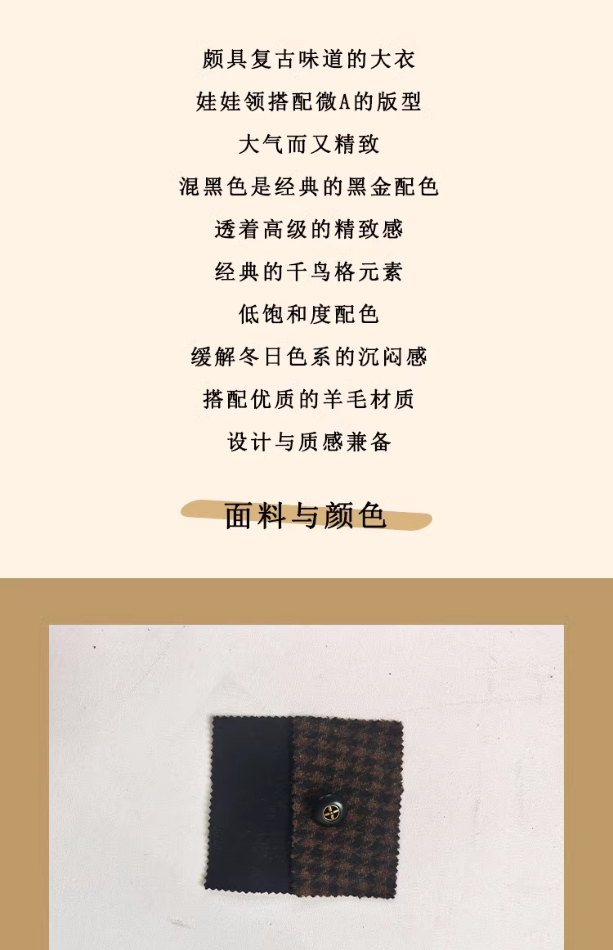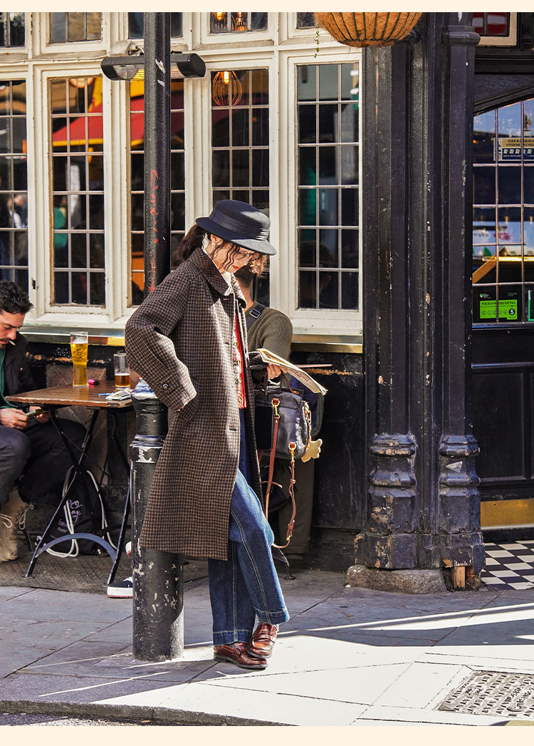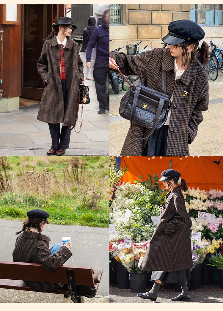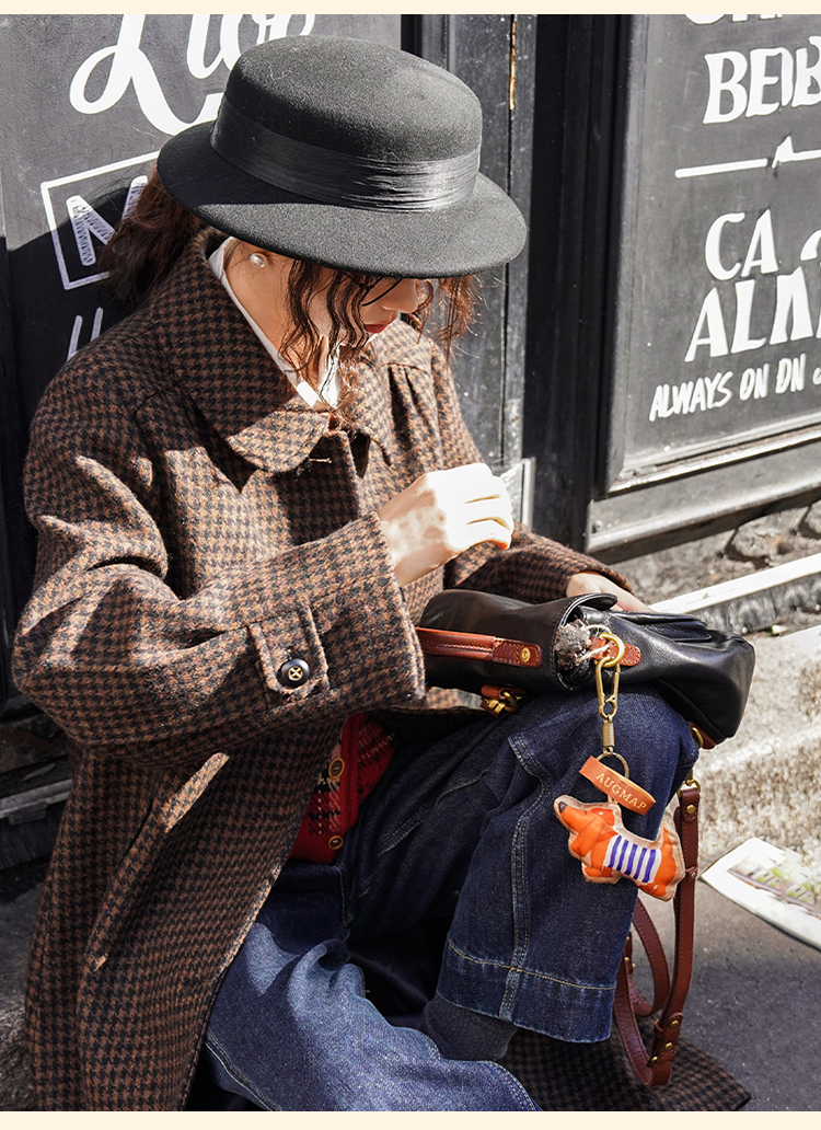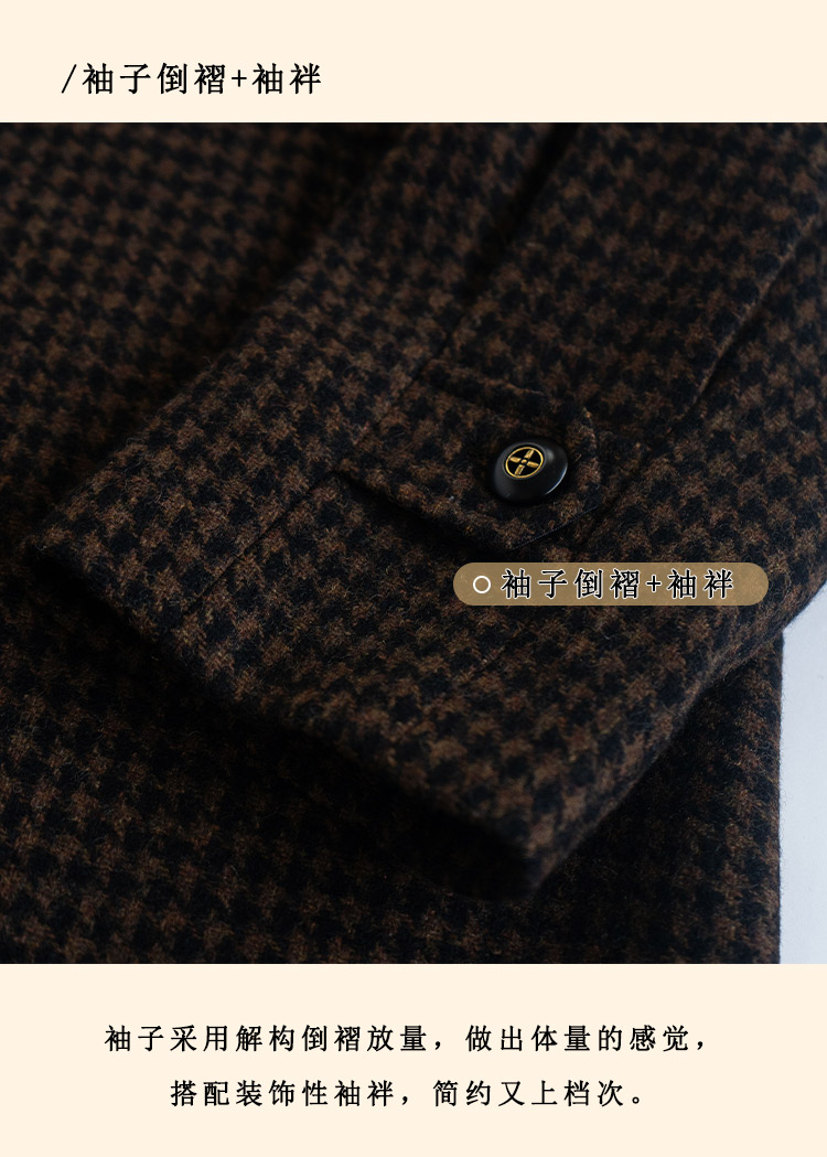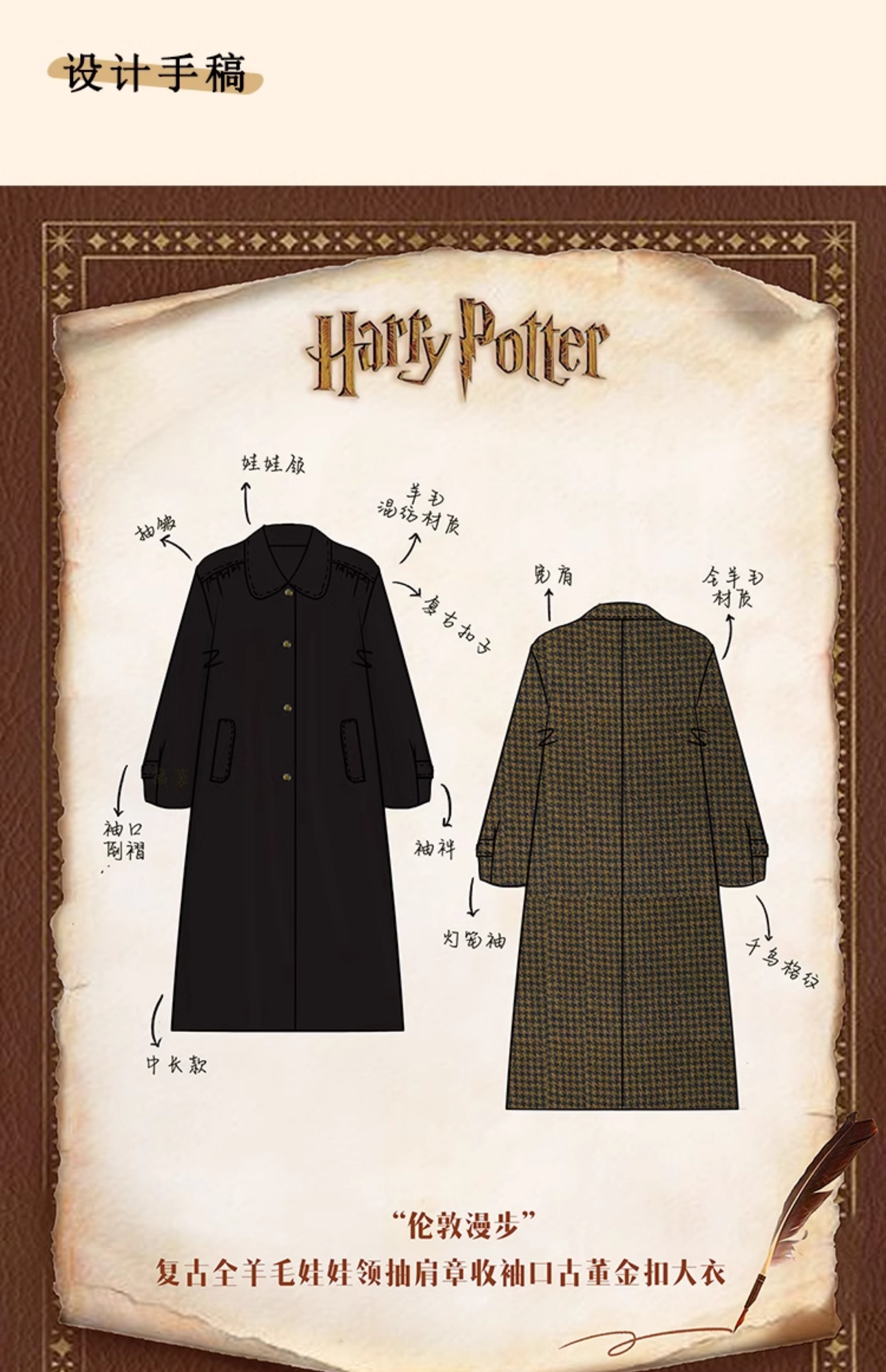 浮生八记/24C119/复古全羊毛娃娃领抽肩章收袖口古董金扣大衣