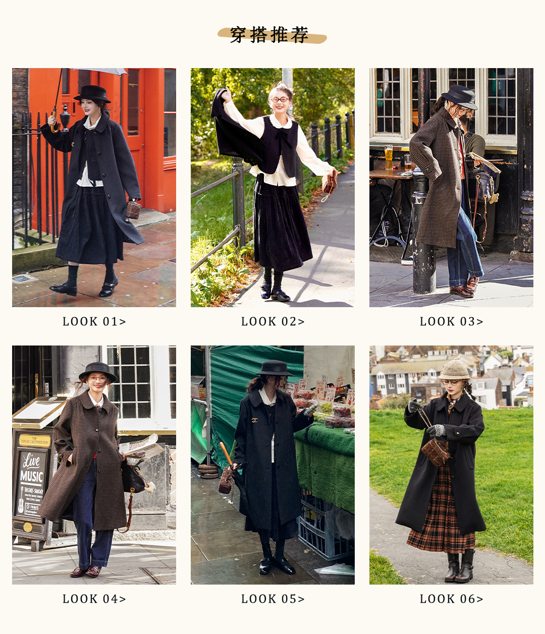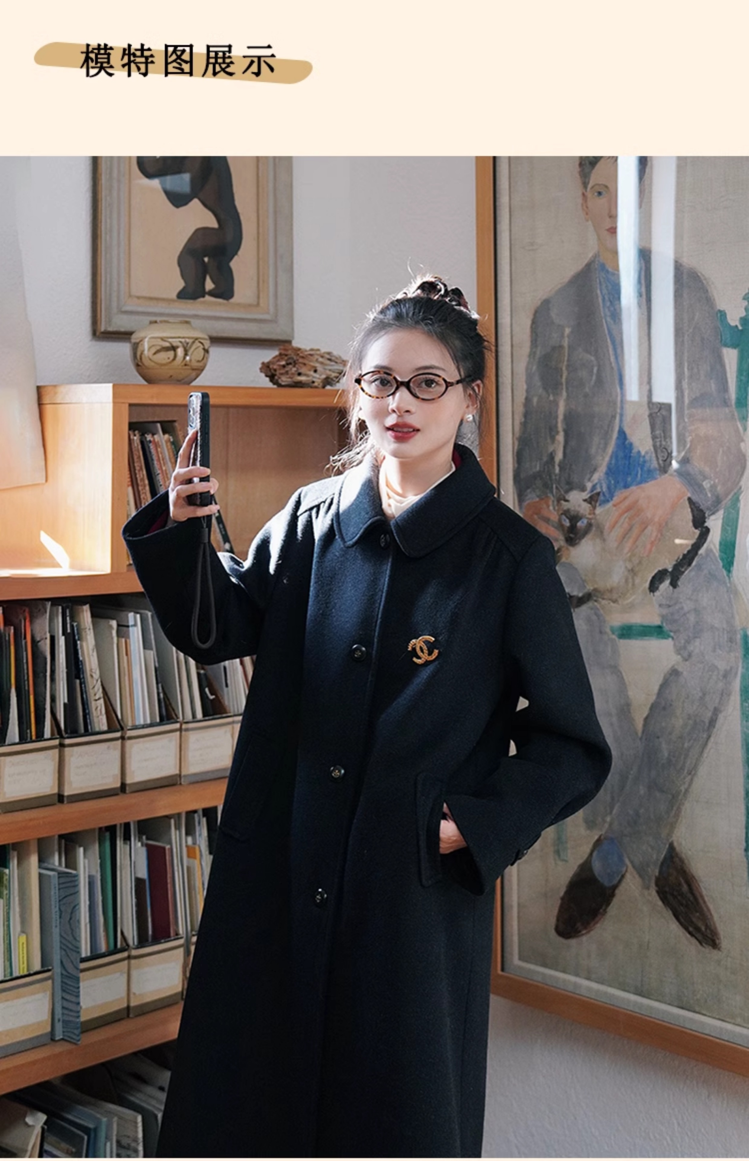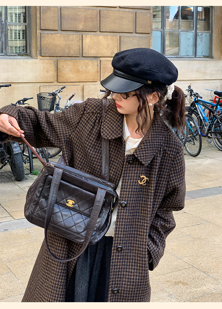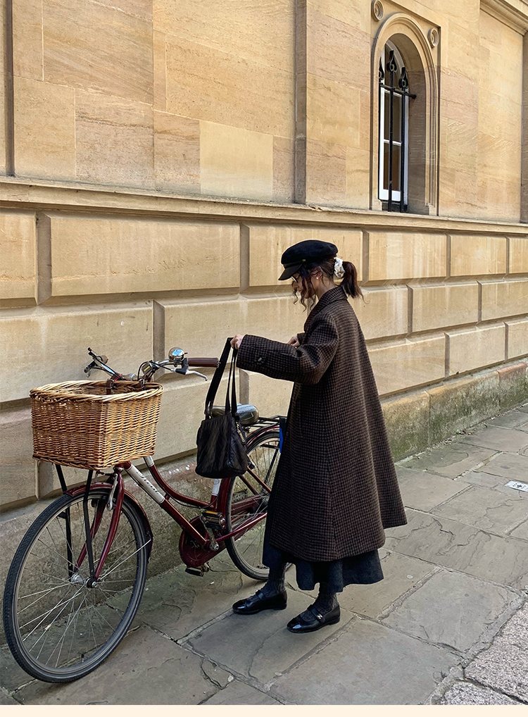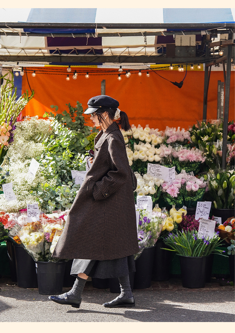浮生八记/24C119/复古全羊毛娃娃领抽肩章收袖口古董金扣大衣